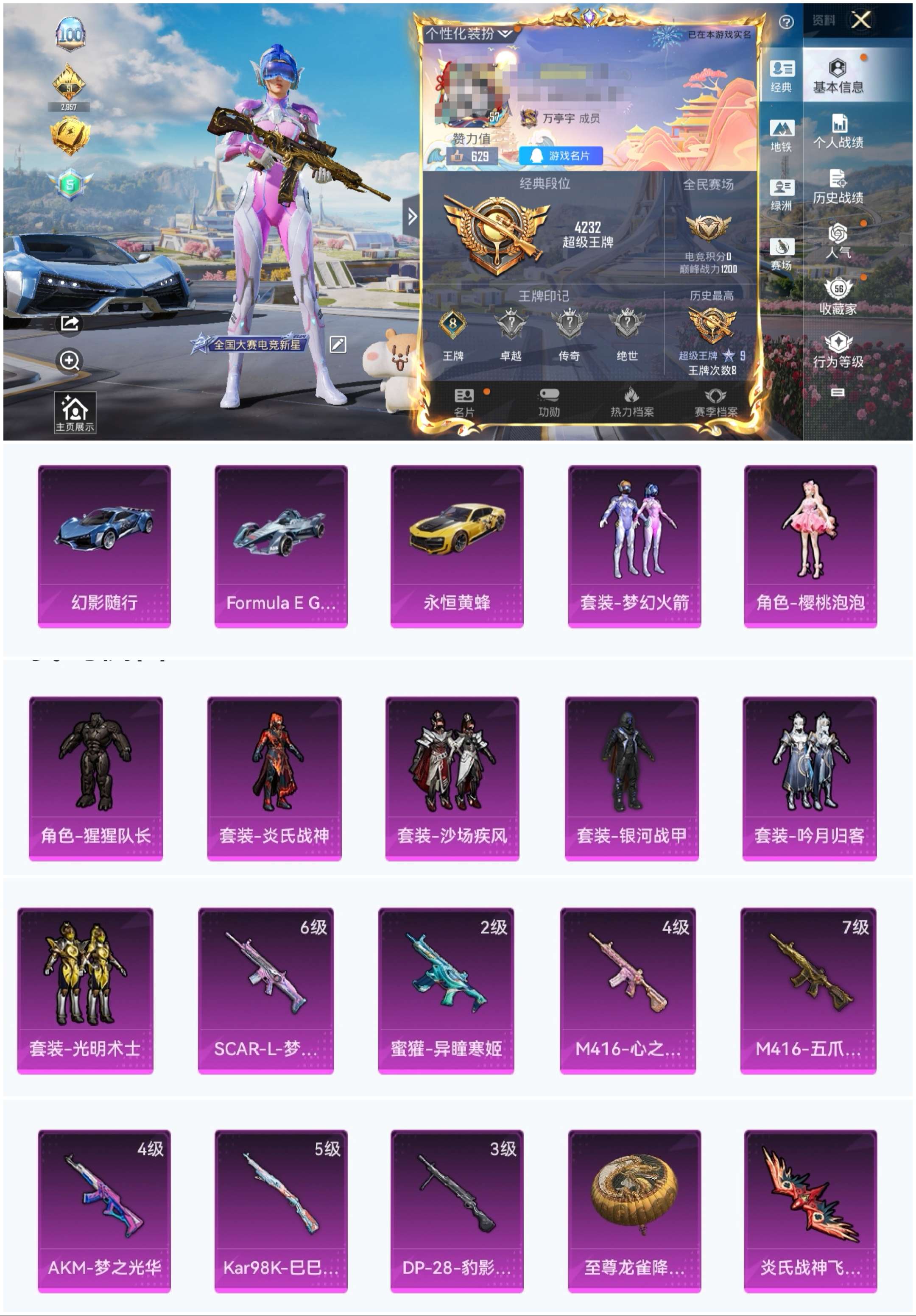 3载具-90套装-149呛皮-hm6175安卓q区-【极品质量号-4载具 8粉装 7特效呛】【可二次 1太阳 0违规】8粉装-7特效呛-48200热力值-8王牌印记-90套装-149呛皮【优质套装】: 梦幻火箭 沙场疾风 猩猩队长 银河战甲 光明术士 樱桃泡泡 炎氏战神 吟月归客【优质载具皮肤】 永恒黄蜂 幻影随行 fmula e gen2巅峰兰【特效呛等级】:m416-心之恋语四级m416-