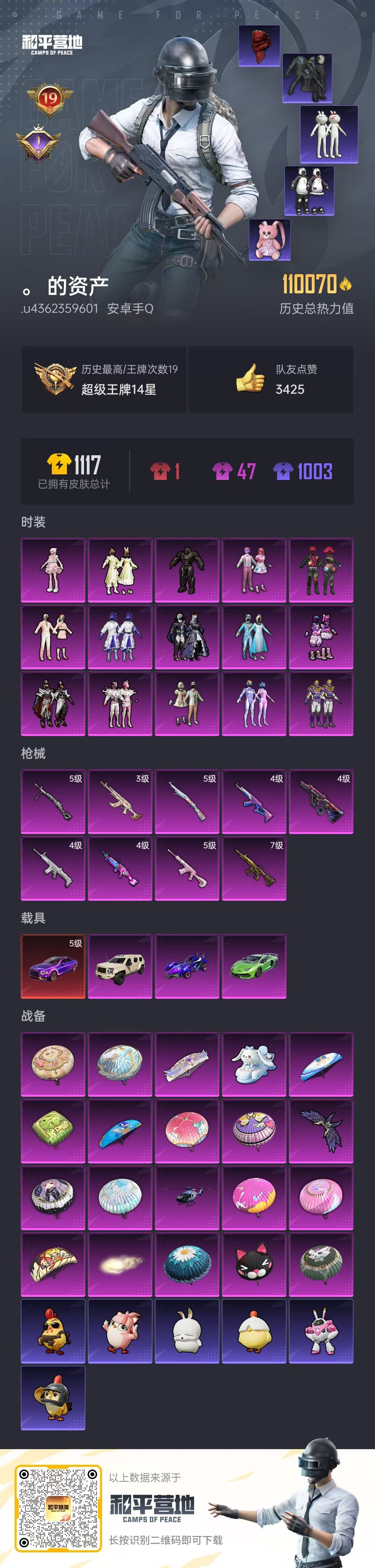 4载具-901套装-299呛皮-精氪主播号 雪国 都市 新101 发光眼罩 红口罩 兔斯基 胖达 粉熊背包 15粉9特4车 5级宾利皇家紫 实名: 可修改 时装数: 901 载具数: 4 呛械数: 299 战备数: 218 热门装扮: 梦幻火箭新101宝贝奶油派天使彩虹糖放客神游万圣娃娃迅捷狂鲨鹰眼刺客爱崽白熊