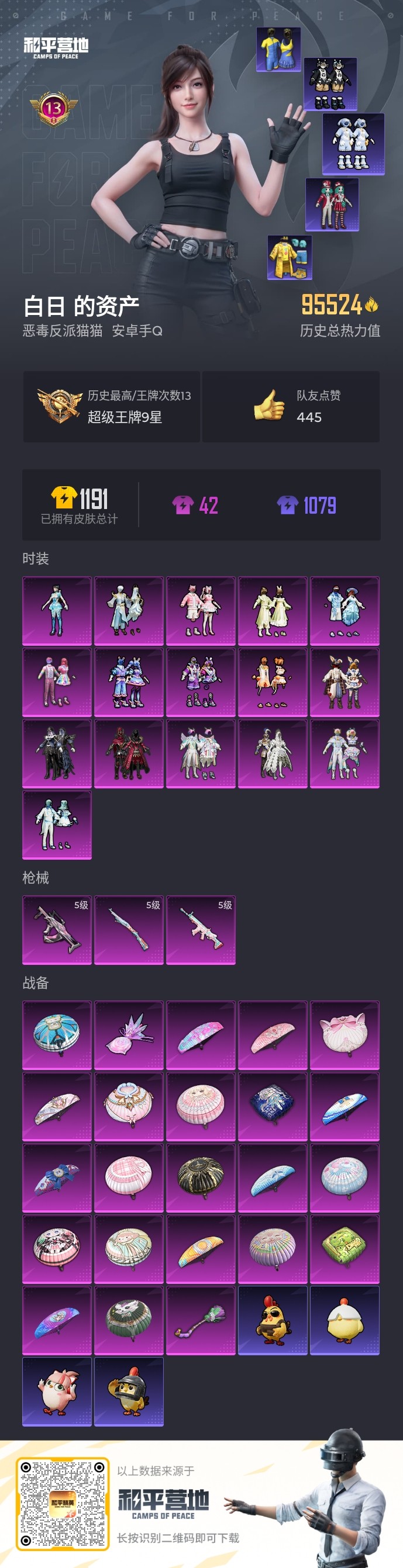 【和平精英】【txhp4737】16粉装,3特效呛,0载具,历史最高段位:超级王牌9星 王牌印记13次 热力值:95524,274套装,295呛械,381装备,200战备;套装:套装-天使彩虹糖,套装-冰霜白皇,套装-童趣迷兔,套装-炙焰红王,套装-彩虹鹿灵,套装-山涧鹿灵,套装-暗翼战神,套装-绚丽摇曳,套装-闪耀律动,套装-橘柚倾心,套装-百合蜜语,套装-彩虹甜喵,套装-海螺星光,套装-闲梦青缨,套装-金丰海韵,角色-异瞳寒姬,套装-特训学院,套装-猎鹰,套装-青年教官,套装-橘黑制服,套装-红色运动,套装-黄色运动,套装-蓝色运动,套装-黄色伏地魔,套装-白色伏地魔,套装-黑色伏地魔,套装-登山爱好者,套装-竞技名士,套装-深蓝色名流,套装-酒红色名流,套装-湖蓝色名流,套装-黄色名流,套装-猛禽,套装-游猎者,套装-野性山猫,套装-长空猛禽,套装-竞技勇士朋克,套装-蓝色守护者,套装-雨林探路者,套装-时尚圣诞,套装-六六大吉,套装-冷焰舞者,套装-灼焰舞者,套装-刚毅裁决者,套装-特战装甲,套装-战地菁英,套装-战地督导,套装-黄色格斗者,套装-灰色格斗者,套装-活力之心,套装-潮流先锋,套装-龙腾端午,套装-燃烧卡路里,套装-5.56爱好者,套装-滨海假日,套装-完美偶像,套装-人气偶像,套装-幻影武者,套装-海滨突袭者,套装-街头潮人,套装-红潮炫舞,套装-蓝彩潮人,套装-千禧之恋,套装-神秘领域,套装-怒火燎原,套装-决胜时刻,套装-魅力单车,套装-绮丽涂鸦,套装-坚韧舞者,套装-竞技达人朋克,套装-朋克治安官,套装-夜莺强袭者,套装-野性战心,套装-破晓战魂,套装-都市魅力,套装-荣耀,套装-热血青春,套装-沙漠兵团,套装-丛林猎人,套装-ss2特训,套装-派对绅士,套装-雪山精英,套装-酷潮明星,套装-极地朋克,套装-幻世战舞者,套装-甜蜜菠萝,套装-清新柠檬,套装-半糖蓝莓,套装-午夜朋克,套装-夏日倾情,套装-缤纷果语,套装-滨海厨神,套装-龙魂突击队,套装-特种空勤,套装-和平特警,套装-风暴特警,套装-冰川特警,套装-雷霆特警,套装-元素星魂,套装-极速红龙,套装-格斗先锋,套装-麻辣教官,套装-ss3特训,套装-攀登者,套装-梦魇先生,套装-万圣娃娃,套装-恶魔宝贝,套装-黑夜传说,套装-粉红小猪,套装-破蛋小黄鸡,套装-疯狂小兔子,套装-深蓝冒险家,套装-迷域探索者,套装-阳光火鸡,套装-ss5特训,套装-圣诞大吉,套装-金鼠迎春,套装-北国孤狼,套装-ss6特训,套装-奇迹天团,套装-跃动心情,套装-ss7特训,套装-黑色刀锋,套装-核芯基因,套装-精神漫游,套装-银河圣歌,套装-鹤鸣,套装-霓虹街区,套装-暗夜契约,套装-纯白誓言,套装-ss10特训,套装-ss8特训,套装-智慧之神,套装-萌黄之夏,套装-人鱼之吻,套装-夏日音浪,套装-风华少年志,套装-探宝勇士,套装-驯鹿叮当,套装-牛气满满,套装-白糯汤圆,套装-ss11特训,套装-潮流游乐家,套装-战术大师,套装-ss12特训,套装-牛气冲天,套装-ss18特训,套装-银白舞王,套装-耀粉歌者,套装-暗影爵士,套装-暗黑裁决,套装-科技之星,套装-飞行日记,套装-竞技角斗士,套装-梦起落英,套装-曼妙人鱼,套装-热情海星,套装-纯真浪花,套装-微雨春柳,套装-暖风夏荷,套装-ss17特训,套装-瑞龙福将,套装-团圆交子,套装-极乐追光,套装-福星高照,套装-虎虎生威吉莉,套装-异彩先驱,套装-霓虹极客,套装-空投萌叽,套装-ss19特训,套装-沁蓝冰爽,套装-浓情蜜辣,套装-极速竞梦,套装-飞驰魅影,套装-音速流光,套装-紫翼圣骑,套装-茉莉之诺,套装-风铃甜诗,套装-炫蓝之夏,套装-ss20特训,套装-奶芙汪汪,套装-恶魔喵喵,套装-猎梦纪元,套装-甜心亚梦,套装-虚音幻奏,套装-ss21特训,套装-暖心熊熊,套装-萌趣咩咩,套装-娇憨猪猪,套装-荷畔雨呱,套装-灵幻魔术师,套装-灵动马戏师,套装-酸甜橘柚,套装-樱桃黑巧,套装-玉兔迎春,套装-ss22特训,套装-和煦暖阳,套装-田园牧歌,套装-轻风白浪,套装-星夜迷魅,套装-照水倚天,套装-绚烂繁星,套装-光之冒险,套装-绯格组合,套装-ss23特训,套装-星谷精灵,套装-莱茵河畔,套装-白兰地假日,套装-甜梦熊熊,套装-神气柴柴,套装-懵萌河马,套装-灵蜜圈圈,套装-妙红点点,套装-幻彩翩翩,套装-王牌教练,套装-柠萌假日,套装-青玉碎影,套装-ss24特训,套装-闪耀新星,套装-龟仙人,套装-涂山之恋,套装-ss25特训,套装-金戈铁马,套装-惊鸿侠骨,套装-锦衣飞扬,套装-云霞荷露,套装-香桃花海,套装-深海梦境,套装-龙的传人,套装-冰河战士,套装-ss26特训,套装-快闪甜心,套装-春光漫游,套装-空岛之星,套装-无暇誓言,角色-星际旅行,套装-云魄琉璃,套装-贝斯之夜,套装-焰鹰斗篷,套装-幽夜迷踪,套装-幻羽潜行,套装-ss27特训,套装-老实芭蕉,套装-ss28特训,套装-铁血战翼,角色-极地流光,角色-粉雾星云,角色-白光莹,角色-冰公主,套装-海盐绵绵冰,套装-蝶变,套装-湖畔霞光,套装-小熊娃娃,套装-ss29特训,套装-雏菊兔兔,角色-狂花道·雅典娜,套装-萝兰蝴蝶,角色-摩登魅猫,套装-星途旅人,套装-ss30特训,套装-青团波波,套装-棉花软糖,套装-糖糖葫芦,套装-ss31特训,套装-ss33特训,套装-巳巳如意,套装-ss32特训,角色-灵公主,套装-炫彩糖果,套装-ss35特训,套装-午间小调,套装-秘语星愿,套装-风迹短诗,套装-ss36特训;呛皮:m16a4-蓝色火焰,m16a4-生命誓言,m16a4-红色方程式,m16a4-凝视深渊,m16a4-甜心亚梦,m16a4-幻世战舞者,m16a4-莲影清波,m16a4-冰河战士,m16a4-千金淑猫,m16a4-乌木金纹,aug-耀粉歌者,aug-灵符少年,aug-幻梦音符,aug-天降萌叽,aug-冰晶雪宝,aug-乌木金纹,m416-蓝色火焰,m416-绯红