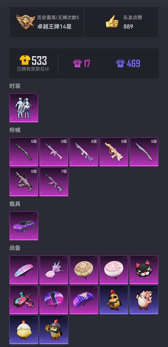 1载具-112套装-168呛皮-【满级akm炫紫旋律7特效呛1载具1粉装浪漫天命潮萌小黄鸭迅捷狂鲨大橘为重 秒换绑不用等】 安卓q区-50187热力值-5印记-112套装-168呛皮 【1载具】 特斯拉3紫色【1粉装】 幻彩电音【7特效呛】 akm-炫紫旋律7级 kar98k-巳巳如意5级 mk14-甜梦熊击5级 aug-暖羊咩咩5级 m416-电玩时刻5级 groza-镜光银凌5级