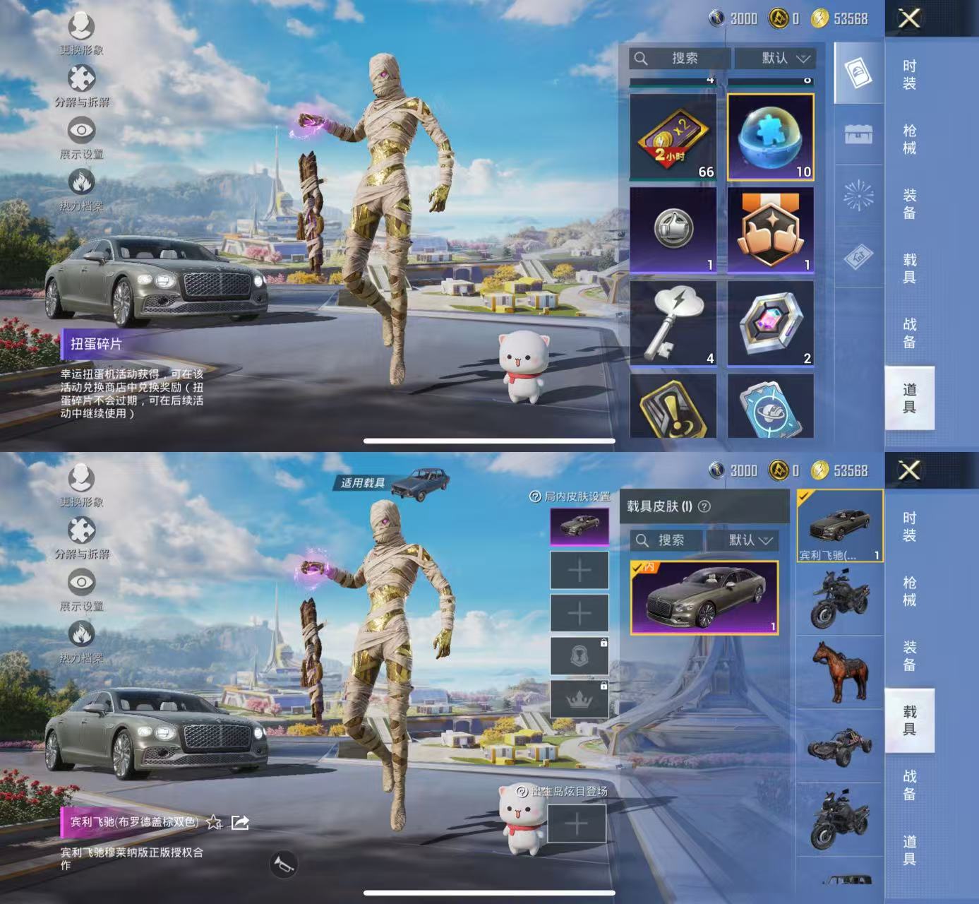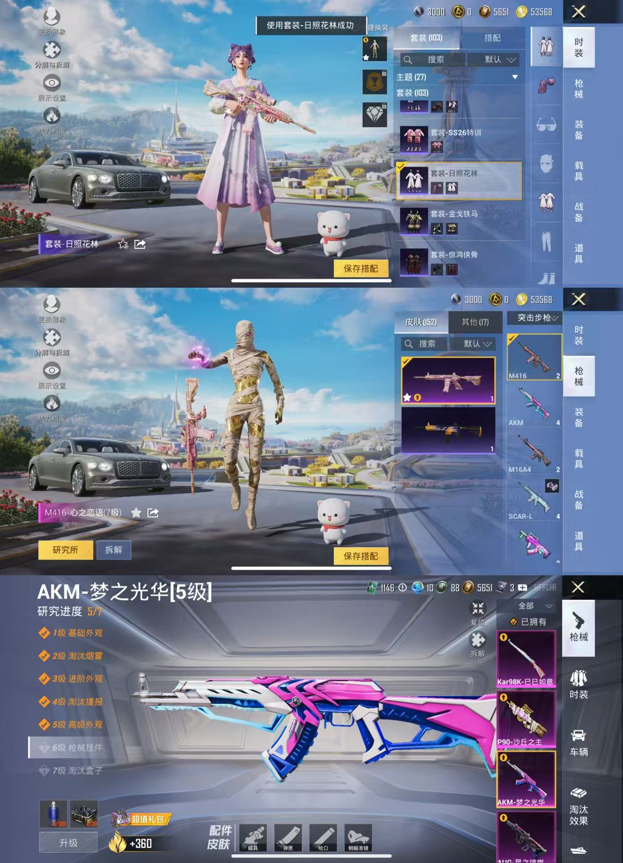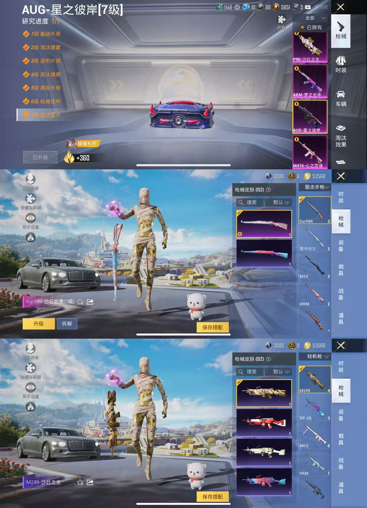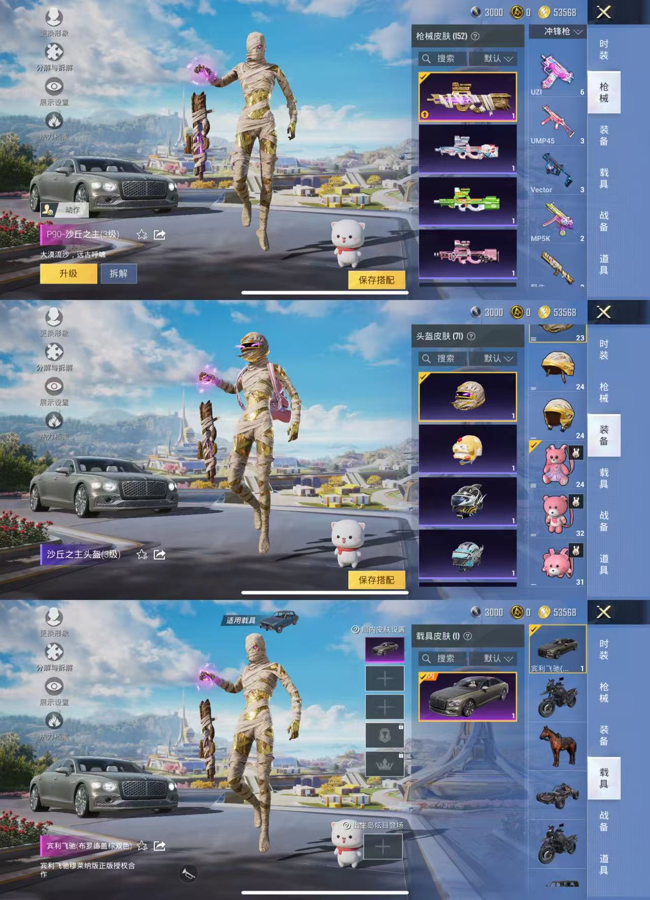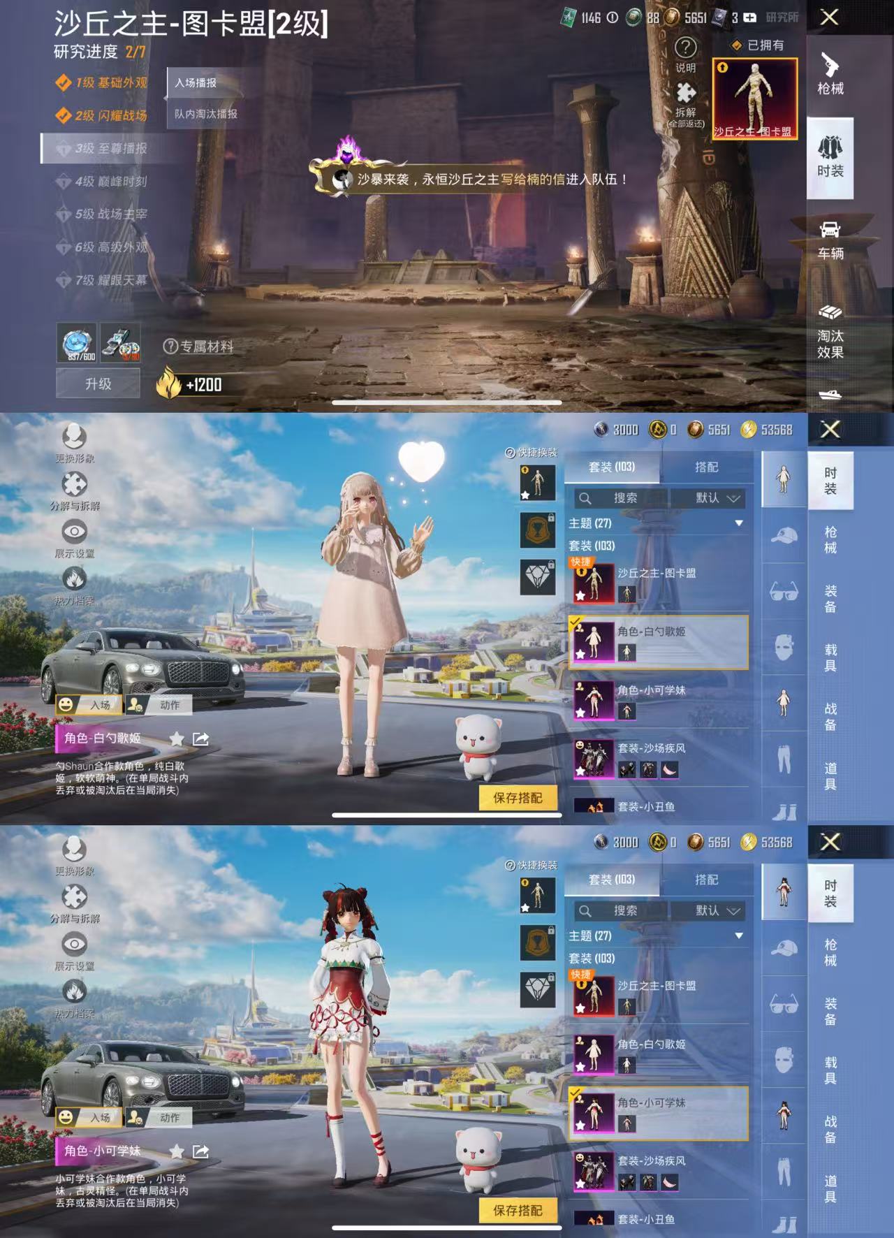 1载具-103套装-150呛皮-【1红4粉装5特效呛1载具图卡盟2级战神框】 苹果q区-52682热力值-18印记-历史最高段位:无敌战神-103套装-150呛皮 【1红装】 沙丘之主-图卡盟2级【1载具】 宾利飞驰布罗德盖棕双色【4粉装】 沙场疾风 角色-白勺歌姬 星穹咏叹调 角色-小可学妹【5特效呛】 p90-沙丘之主3级 kar98k-巳巳如意2级 aug-星之彼岸7级 m416-心