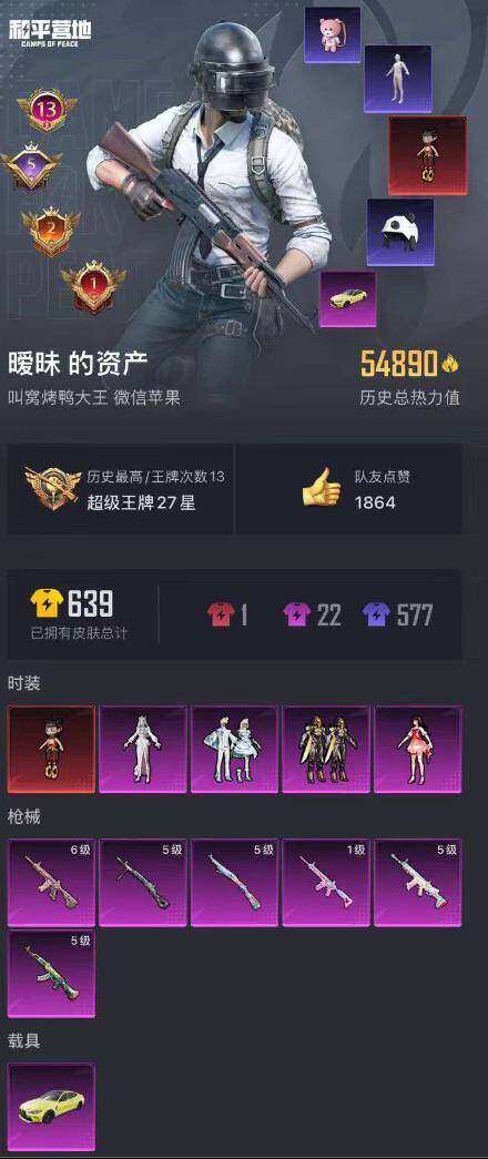 [14505948]苹果【极品红装号/一套绝世印记/13王牌印记/魔童闹海-哪吒一级/冥河战士/小丑鱼/暗影哥特/萌熊伴侣背包/1神装-4粉装-6特效呛-1载具-4粉色飞行器】 微信55070热力值-13王牌印记-135套装-170呛皮 【红色神装等级】:魔童闹海-哪吒一级 【红色角色神装】:魔童闹海-哪吒 【热门品类】:套装-浪漫天命,套装-冥河战士,套装-深海小丑鱼,套装-小丑鱼,套装-龟仙人,套装-暗影哥特,套装-粉红小猪 【粉色载具】:宝马m4(圣保罗黄) 【粉色套装】:角色-歌者泠鸢,套装-创世·救赎,粉装-雪月幻音,角色-冷漠罗丽 【粉色呛皮等级】:akm-绿萝繁花五级,scar-l-锦绣绵绵五级,m416-心之恋语六级,m416-电玩时刻一级,kar98k-巳巳如意五级,dp-28-豹影疾电五级 【粉色呛皮】:akm-绿萝繁花,scar-l-锦绣绵绵,m416-心之恋语,m416-电玩时刻,kar98k-巳巳如意,dp-28-豹影疾电 【粉色飞行器】:天之羽翼飞行器,飞天猪飞行器 【粉色降落伞】:千面幻镜降落伞,歌者泠鸢降落伞,莲影清波降落伞,精灵梦叶罗丽降落伞,荧海星豚降落伞,魔童闹海 哪吒降落伞 【稀有套装】:套装-龟仙人,套装-荒原牛仔,套装-糖糖葫芦,套装-青团波波,套装-棉花软糖,角色-都市丽猫,角色-摩登魅猫,套装-燕燕于飞,套装-鱼渊荷华,玩偶服-小狗蛇点点,套装-粉恋花,套装-紫幽梦,套装-蓝冰羽,角色-瑰梦爱神,套装-云朵鹅,套装-雪绒豹,角色-时希公主,套装-朱霞炽焰,套装-凌霄紫焰 【稀有呛皮】:akm-影袭,akm-破晓战魂,akm-缤纷海域,akm-龙的传人,akm-玄冥寒域,m16a4-冥河战士,m16a4-千金淑猫,scar-l-炫彩节奏,scar-l-红色方程式,scar-l-黄金龙骨,scar-l-小狗蛇点点,m416-糯团青竹,m416-红色方程式,m416-蓝色火焰,m416-萌萌史莱姆,groza-影袭,groza-懵萌河马,aug-天降萌叽,aug-闲梦青缨,m762-天降萌叽,m762-彩虹符号,m762-云朵鹅,mk47-妙红点点,g36c-懵萌河马,g36c-星穹咏叹调,ac-val-快闪甜心,蜜獾-天降萌叽,arx-凌霄紫焰,uzi-啾咪啾咪,uzi-天降萌叽,uzi-影袭,uzi-红