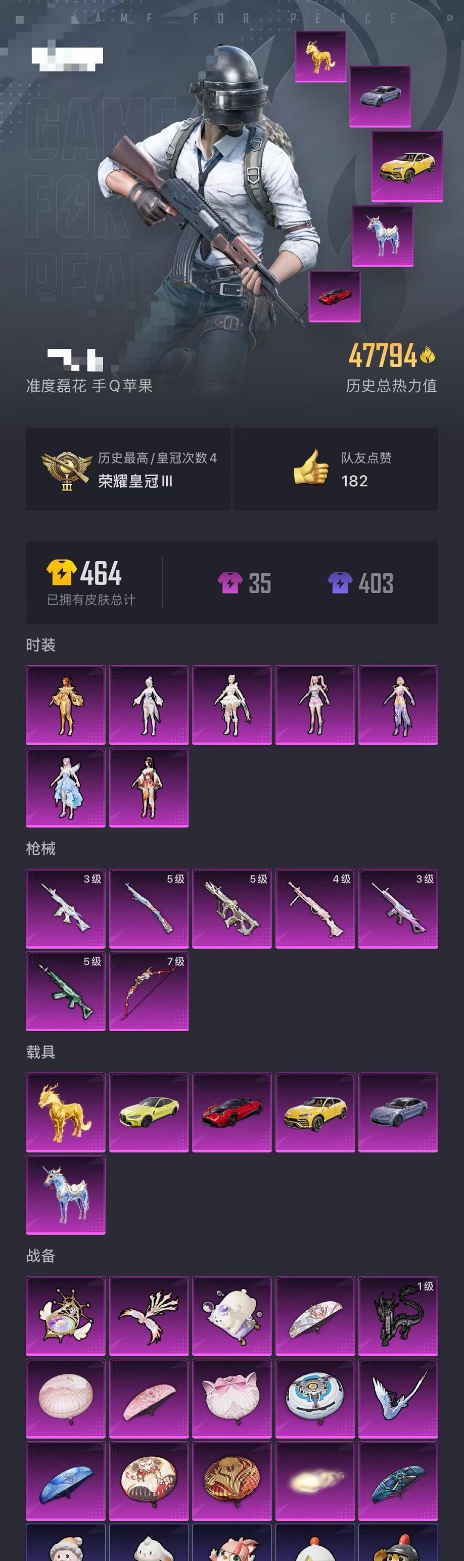 【金马 7粉装7特效呛6载具 可秒换绑】 苹果q区-47794热力值84套装-132呛皮 【6载具】 兰博suv黄色 仰望u7先锋版阿盖尔紫 星梦玉骢 帕加尼imola光影红 宝马m4圣保罗黄 护世瑞兽【7粉装】 角色-星梦奇缘 角色-金域紫灵 时空协奏·心弦 角色-狂花道·不知火舞 角色-千金淑猫 角色-女娲灵识 角色-羲和光序【7特效呛】 m762-青锋波束5级 爆炸猎弓