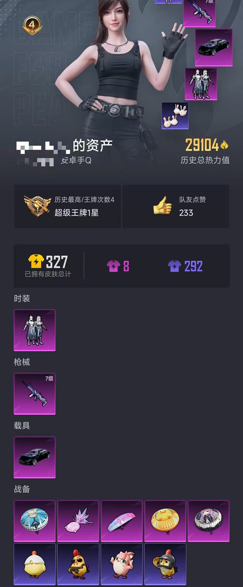 【玛莎拉蒂q蓝色 1粉装1特效呛1载具 可秒换绑】 安卓q区-29104热力值-4印记-66套装-96呛皮 【1载具】 玛莎拉蒂q蓝色【1粉装】 吟月归客【1特效呛】 scar-l-青春物语7级【27热门】 m416-蓝色火焰 q-银碳小老虎 长空猛禽 虚音幻奏 甜心亚梦 甜蜜熊情侣 牛气冲天 兔兔白日梦 浪漫天命 破蛋小黄鸡 醒狮腾龙 团圆交子 瑞龙福将 冰川格斗者 ss25特训 ss