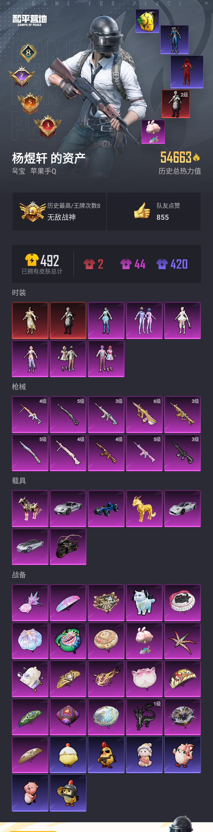 【和平精英】【lyhp16493】ss34无敌战神 3绝世 2红装6粉装10特效呛8载具含1僚机 2级敖渊 新101 千金淑猫 战队服 墨龙m4 金蛇死噶 灵猫m4 巧克力ak 圣斗士aug 保时捷 金麒麟 送1300扭蛋碎片 6粉装,10特效呛,7载具,历史最高段位:无敌战神 王牌印记8次 热力值:54873,71套装,128呛械,196装备,72战备;套装:墨龙九天-敖渊,金蛇镇世-烛九,套装-宝贝奶油派,套装-天使彩虹糖,套装-梦幻火箭,角色-金域紫灵,角色-异瞳寒姬,角色-千金淑猫,套装-黎明保卫者,套装-沙漠毒蛇,套装-怒火燎原,套装-森林游猎者,套装-龙魂突击队,套装-粉红小猪,套装-疯狂小兔子,套装-4am战队服,套装-战术大师,套装-曼妙人鱼,套装-热情海星,套装-纯真浪花,套装-王牌教练,套装-ss28特训,角色-8号机,角色-mark.06,套装-街头风暴,套装-蝶变,套装-创世·追猎,套装-小熊娃娃,套装-ss29特训,套装-雏菊兔兔,套装-萝兰蝴蝶,套装-异域银装,角色-摩登魅猫,角色-都市丽猫,套装-ss30特训,套装-青团波波,套装-棉花软糖,角色-光矢逐梦,角色-夜瞳黯灵,套装-糖糖葫芦,套装-诡诞巡游,套装-ss31特训,套装-鱼渊荷华,套装-燕燕于飞,套装-智谋强哥,套装-紫幽梦,套装-粉恋花,套装-ss33特训,套装-云朵鹅,套装-巳巳如意,套装-ss32特训,套装-彩虹兔,套装-蓝冰羽,套装-顶瓜瓜,套装-雪绒豹,套装-混沌火种,套装-星渊小夜曲,套装-炫彩糖果,套装-星影赞美诗,玩偶服-美羊羊,套装-ss34特训,套装-擎苍青焰,套装-朱霞炽焰,套装-凌霄紫焰,套装-薄荷星砂,套装-ss35特训,套装-午间小调,套装-秘语星愿,套装-风迹短诗,套装-粉黛兰香,套装-萌鸡速递;呛皮:3级scar-l-金蛇镇世,scar-l-炫彩节奏,scar-l-星途旅人,scar-l-海盐豹豹,q-纯真浪花,6级aug-圣斗士星矢,aug-天降萌叽,aug-异域银装,aug-金蛇镇世,m762-甜心宝贝,m762-天降萌叽,m762-雏菊兔兔,m762-云朵鹅,m16a4-冰河战士,m16a4-千金淑猫,famas-墨龙九天,famas-霓彩脉冲,famas-乌木金纹,蜜獾-天降萌叽,蜜獾-糖糖葫芦,蜜獾-风迹短诗,蜜獾-乌木金纹,4级akm-甜心宝贝,akm-奇异狩猎者,akm-灵猫魔法师,akm-霓彩脉冲,3级m416-墨龙九天,5级m416-电玩时刻,3级m416-灵猫魔法师,arx-凌霄紫焰,g36c-星穹咏叹调,mk47-风迹短诗,amr-墨龙九天,5级kar98k-巳巳如意,kar98k-诡娃娃,kar98k-梦幻火箭,kar98k-顶峰精英,svd-云朵鹅,莫辛纳甘-乌木金纹,莫辛纳甘-风迹短诗,win94-乌木金纹,awm-纯真浪花,m200-爆裂游戏,m200-乌木金纹,mk20-h-星途旅人,mk20-h-糖糖葫芦,mk20-h-乌木金纹,mk12-金蛇镇世,mk12-风迹短诗,mini14-梦幻火箭,mini14-香桃花海,mini14-雏菊兔兔,mini14-绯穹魔姬,slr-墨龙九天,slr-霓彩脉冲,mk14-冰河战士,mk14-紫幽梦,mk14-紫晶流影,vss-香桃花海,vect-燕燕于飞,uzi-冰河战士,uzi-啾咪啾咪,uzi-月影灵韵,uzi-炫彩糖果,p90-巳巳如意,p90-金蛇镇世,aks-74u-鸡智如我,aks-74u-乌木金纹,野牛-雏菊兔兔,野牛-燕燕于飞,ump45-生命誓言,ump45-糖糖葫芦,js9-凌霄紫焰,汤姆逊-奇异狩猎者,汤姆逊-纯真浪花,汤姆逊-灵猫魔法师,spas-12-燕燕于飞,spas-12-云朵鹅,spas-12-乌木金纹,aa12-g-纯真浪花,s686-千金淑猫,s686-巳巳如意,dbs-彩虹符号,dbs-幻彩电音,dbs-风迹短诗,dbs-乌木金纹,s1897-潮汐统领,s1897-精灵梦叶罗丽,s1897-紫幽梦,s1897-糯团青竹,pkm-紫幽梦,4级dp-28-千金淑猫,5级dp-28-豹影疾电,dp-28-甜心宝贝,m249-彩虹符号,m249-糯团青竹,4级mg-36-沧焰双生,mg-36-凌霄紫焰,p92-紫幽梦,p92-凌霄紫焰,蝎式手呛-千金淑猫,蝎式手呛-燕燕于飞,电击呛-喜羊羊与灰太狼,短管霰弹-星穹咏叹调,沙墨之鹦-云朵鹅,p18c-糖糖葫芦,r1895-雏菊兔兔,撬棍-甜心宝贝,撬棍-双重狂想,撬棍-灵猫魔法师,平底锅-纯梦嫁纱,平底锅-纯真浪花,平底锅-雏菊兔兔,平底锅-魔法神域,平底锅-糖糖葫芦,平底锅-紫幽梦,平底锅-圣斗士星矢,平底锅-属我最6,平底锅-凌霄紫焰,大砍刀-云朵鹅,破片手留单-星途旅人,破片手留单-海盐豹豹,破片手留单-拽到爆炸,破片手留单-巳巳如意,十子怒-燕燕于飞,十子怒-异域银装,铝热弹-炫彩糖果,突击盾牌-初号机 觉醒ver.;载具:星河领航磐石银,保时捷918 sper液态银,帕加尼imola艺术银,疾风龙骑,合金龙骨(蓝),护世瑞兽,黑曜夜骑;僚机:僚机-萌兔起飞;降落伞:甜心宝贝降落伞,潮汐统领降落伞,墨龙九天降落伞,忍者神龟降落伞,初号机 觉醒ver.降落伞,金丰海韵降落伞,千金淑猫降落伞,绯穹魔姬降落伞,金蛇镇世降落伞,双重狂想降落伞,星穹咏叹调降落伞,荧海星豚降落伞,灵猫魔法师降落伞,炫彩糖果降落伞,蓝海之火降落伞,化学天才降落伞,浪客战士降落伞,香桃花海降落伞,冰河战士降落伞,纯真浪花降落伞,ss28王牌降落伞,雏菊兔兔降落伞,ss29王牌降落伞,异域银装降落伞,干得pel亮降落伞,糖糖葫芦降落伞,ss30王牌降落伞,燕燕于飞降落伞,ss31王牌降落伞,紫幽梦降落伞,ss32王牌降落伞,云朵鹅降落伞,ss33王牌降落伞,凌霄紫焰降落伞,ss34王牌降落伞,风迹短诗降落伞,竞逐热浪降落伞,紫菱降落伞,普通降落伞;滑翔尾迹:酣梦熊熊飞行器,祥瑞起舞飞行器,万象金身飞行器,灵猫魔法师飞行器,炫彩糖果飞行器,龙翔九天飞行器,异域银装飞行器,顶峰精英尾迹,破刃行动尾迹,鸡智如我飞行器; 详情看图