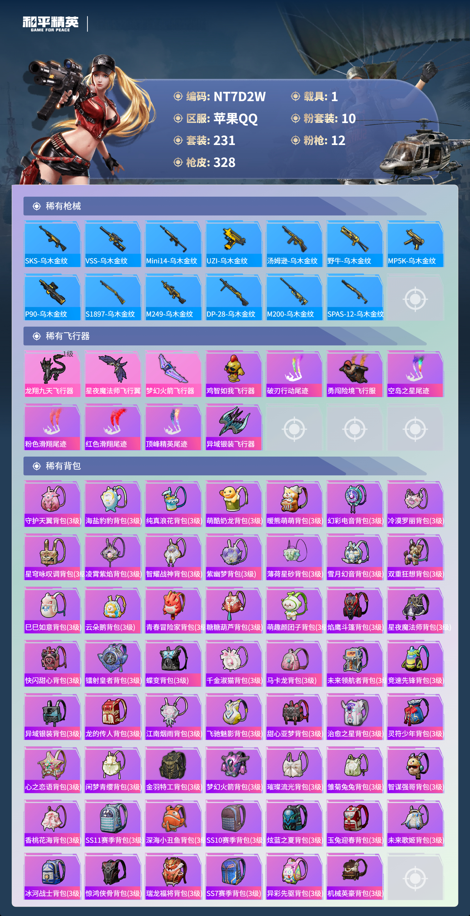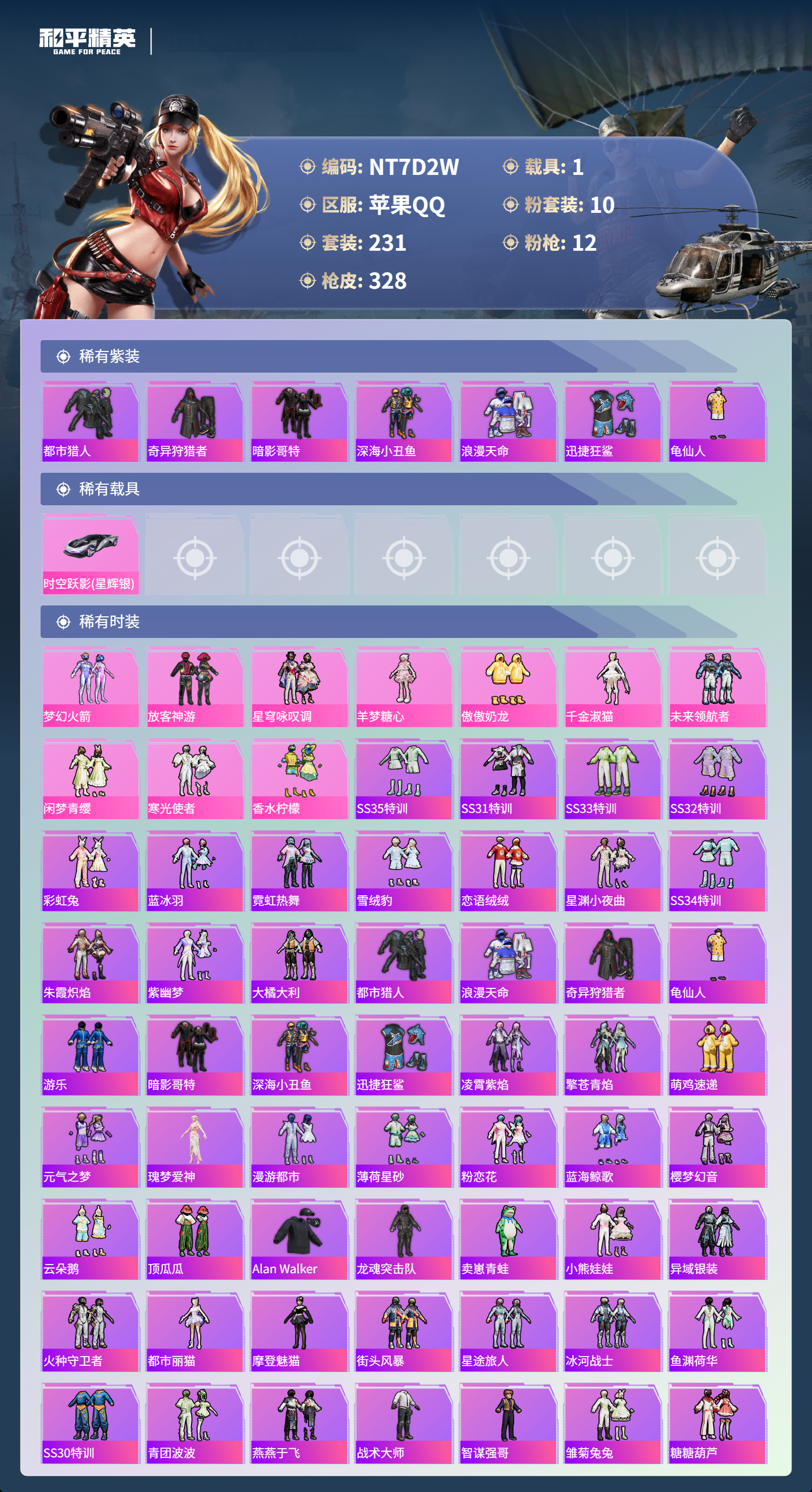 1载具-231套装-328呛皮-高印记 地铁满天赋 银刃勇者大衣 金羽全套 黄金龙骨m4 都市 新101 发光眼罩 黑色t血 满级暖熊萌萌 满级瓶中星球