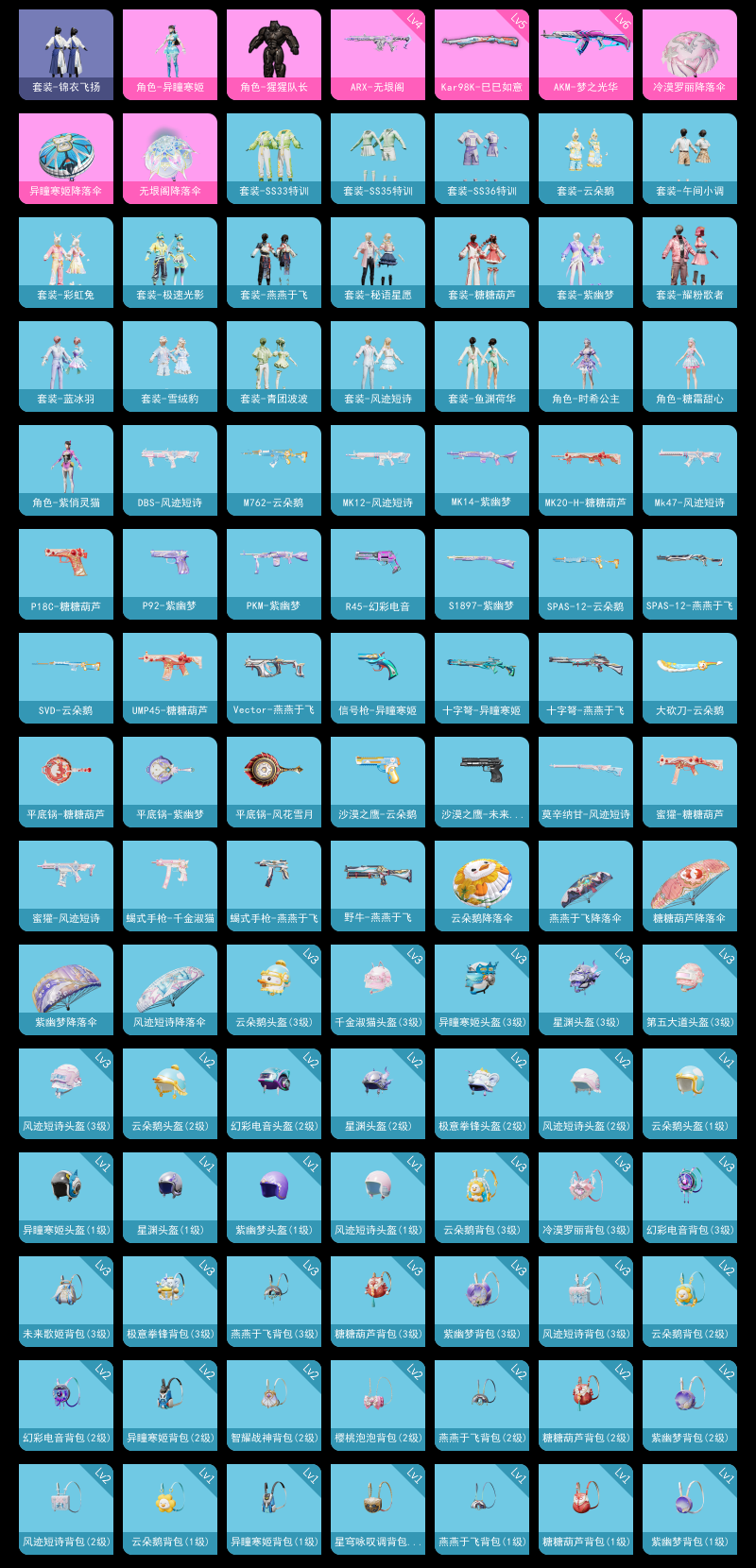【和平精英】【lyhp17783】2粉5特 6级ak梦幻火箭 5级妹控 2粉装,5特效呛,0载具,历史最高段位:绝世王牌14星 王牌印记1次 热力值:19983,37套装,63呛械,71装备,26战备;套装:角色-猩猩队长,角色-异瞳寒姬,套装-黄色运动,套装-竞技名士,套装-长空猛禽,套装-海岛探路者,套装-旭日情侣,套装-疯狂小兔子,套装-战术大师,套装-耀粉歌者,套装-绯格组合,套装-锦衣飞扬,套装-街头风暴,角色-紫俏灵猫,角色-糖霜甜心,套装-青团波波,套装-糖糖葫芦,套装-ss31特训,套装-鱼渊荷华,套装-燕燕于飞,套装-紫幽梦,套装-ss33特训,套装-云朵鹅,套装-ss32特训,套装-彩虹兔,套装-蓝冰羽,套装-顶瓜瓜,套装-雪绒豹,套装-极速光影,角色-时希公主,套装-炫彩糖果,套装-ss34特训,套装-ss35特训,套装-午间小调,套装-秘语星愿,套装-风迹短诗,套装-ss36特训;呛皮:蜜獾-糖糖葫芦,蜜獾-鸡智如我,蜜獾-风迹短诗,蜜獾-乌木金纹,4级arx-无垠阁,scar-l-夜灯,aug-异域银装,aug-冰晶雪宝,mk47-风迹短诗,6级akm-梦之光华,m762-云朵鹅,m16a4-幻世战舞者,famas-乌木金纹,m200-乌木金纹,莫辛纳甘-风迹短诗,svd-云朵鹅,5级kar98k-巳巳如意,win94-乌木金纹,mk20-h-糖糖葫芦,mk20-h-狂鲨锋刃,mk20-h-乌木金纹,mk12-风迹短诗,mk12-乌木金纹,5级mk14-甜梦熊击,mk14-紫幽梦,sks-炫彩节奏,野牛-燕燕于飞,ump45-夜灯,ump45-生命誓言,ump45-糖糖葫芦,uzi-天降萌叽,uzi-炫彩糖果,vect-燕燕于飞,汤姆逊-天降萌叽,s1897-紫幽梦,s1897-糯团青竹,spas-12-燕燕于飞,spas-12-狂鲨锋刃,spas-12-云朵鹅,spas-12-乌木金纹,s12k-夜灯,dbs-风迹短诗,mg3-幻世战舞者,mg3-惊鸿侠骨,3级dp-28-豹影疾电,pkm-紫幽梦,沙墨之鹦-未来领航者,沙墨之鹦-云朵鹅,信号呛-异瞳寒姬,r45-幻彩电音,蝎式手呛-千金淑猫,蝎式手呛-燕燕于飞,p92-紫幽梦,p18c-糖糖葫芦,平底锅-风花雪月,平底锅-惊鸿侠骨,平底锅-糖糖葫芦,平底锅-紫幽梦,大砍刀-云朵鹅,十子怒-异瞳寒姬,十子怒-燕燕于飞,十子怒-异域银装,铝热弹-炫彩糖果;降落伞:炫彩糖果飞行器,异域银装飞行器; 详情看图