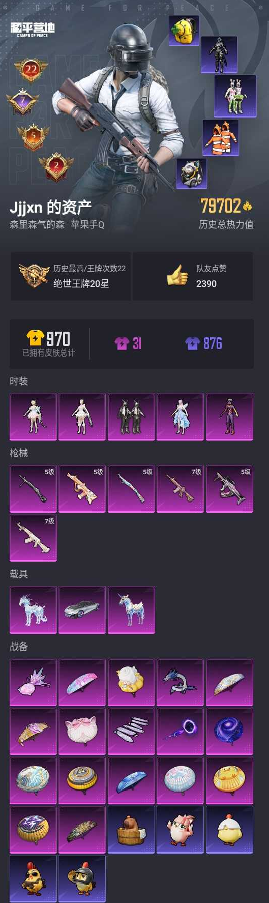 【和平精英】【lyhp17767】22印记2绝世 5粉6特效呛3载 觉醒螳螂 晶梦幻蝶 千金淑猫 星梦奇缘 多呛型 满级m4心语 满级akm白芍歌姬 星空马 雪麒麟 时空领航 猫包 5粉装,6特效呛,3载具,历史最高段位:绝世王牌20星 王牌印记22次 热力值:79702,211套装,243呛械,311装备,173战备;套装:套装-数码大师,角色-星梦奇缘,角色-初号机 觉醒ver.,角色-千金淑猫,角色-晶梦幻蝶,套装-特训学院,套装-猎鹰,套装-青年教官,套装-橘黑制服,套装-红色运动,套装-黄色运动,套装-蓝色运动,套装-黄色伏地魔,套装-白色伏地魔,套装-黑色伏地魔,套装-竞技名士,套装-深蓝色名流,套装-酒红色名流,套装-湖蓝色名流,套装-黄色名流,套装-猛禽,套装-游猎者,套装-长空猛禽,套装-竞技勇士朋克,套装-海岛探路者,套装-六六大吉,套装-冷焰舞者,套装-灼焰舞者,套装-刚毅裁决者,套装-特战装甲,套装-战地菁英,套装-战地督导,套装-特殊使命,套装-青春校园,套装-黄色格斗者,套装-灰色格斗者,套装-甜蜜告白,套装-春日漫步,套装-燃烧卡路里,套装-滨海假日,套装-暗黑骑手,套装-沙漠毒蛇,套装-冰冻风暴,套装-完美偶像,套装-人气偶像,套装-幻影武者,套装-街头潮人,套装-暗金炫舞,套装-蓝彩潮人,套装-千禧之恋,套装-决胜时刻,套装-魅力单车,套装-绮丽涂鸦,套装-雪山征服者,套装-坚韧舞者,套装-竞技达人朋克,套装-夜莺强袭者,套装-破晓战魂,套装-森林游猎者,套装-都市魅力,套装-热血青春,套装-潮流炫酷,套装-丛林猎人,套装-ss2特训,套装-雪山精英,套装-酷潮明星,套装-传奇侦探,套装-极地朋克,套装-幻世战舞者,套装-甜蜜菠萝,套装-清新柠檬,套装-金耀舞者,套装-蓝调潮人,套装-呆萌铁蟹,套装-夏日倾情,套装-甜蜜熊情侣,套装-缤纷果语,套装-滨海厨神,套装-龙魂突击队,套装-冰川特警,套装-元素星魂,套装-极速红龙,套装-格斗先锋,套装-冷血极客,套装-海上生明月,套装-麻辣教官,套装-ss3特训,套装-小丑鱼,套装-粉红小猪,套装-破蛋小黄鸡,套装-疯狂小兔子,套装-机械英豪,套装-机械征服者,套装-ss5特训,套装-圣诞大吉,套装-冰原使者,套装-凛冬战士,套装-好奇恐龙,套装-浴火魔神,套装-金鼠迎春,套装-军械专家,套装-北国孤狼,套装-ss6特训,套装-跃动心情,套装-ss7特训,套装-黑色刀锋,套装-核芯基因,套装-精神漫游,套装-霓虹街区,套装-ss10特训,套装-ss8特训,套装-白熊同盟,套装-萌黄之夏,套装-夏日音浪,套装-ss9特训,套装-顽皮玉兔,套装-荷鲁斯之眼,套装-探宝勇士,套装-牛气满满,套装-ss11特训,套装-原初圣火,套装-逆风勇士,套装-萌趣颜团子,套装-特种颜团子,套装-战术大师,套装-ss12特训,套装-牛气冲天,套装-ss18特训,套装-耀粉歌者,套装-飞行日记,套装-ss13特训,套装-曼妙人鱼,套装-热情海星,套装-纯真浪花,套装-ss14特训,套装-吉莉礼服,套装-星梦畅游,套装-ss15特训,套装-ss16特训,套装-ss17特训,套装-福星高照,套装-空投萌叽,套装-ss19特训,套装-炫蓝之夏,套装-ss20特训,套装-ss21特训,套装-萌趣咩咩,套装-娇憨猪猪,套装-玉兔迎春,套装-ss22特训,套装-光之冒险,套装-绯格组合,套装-摩登艾咪,套装-王牌教练,套装-柠萌假日,套装-ss25特训,套装-香桃花海,套装-龙的传人,套装-冰河战士,套装-ss27特训,套装-恋语绒绒,套装-ss28特训,套装-铁血战翼,套装暗影刺翼,角色-极地流光,角色-粉雾星云,角色-情公主,角色-mark.06,套装-街头风暴,套装-海盐绵绵冰,角色-极冰使者,套装-蝶变,套装-湖畔霞光,套装-粉日山川,套装-小熊娃娃,套装-ss29特训,套装-虚空漩涡,套装-雏菊兔兔,套装-萝兰蝴蝶,角色-无面战甲,套装-先驱飞行员,套装-异域银装,套装-星途旅人,角色-临安公主,套装-ss30特训,套装-青团波波,套装-棉花软糖,套装-糖糖葫芦,套装-ss31特训,套装-鱼渊荷华,套装-燕燕于飞,套装-智谋强哥,套装-晶辉守护,套装-ss33特训,套装-巳巳如意,套装-ss32特训,套装-混沌火种,套装-大橘大利,角色-鲛海歌灵,套装-霓虹热舞,套装-炫彩糖果,玩偶服-喜羊羊,套装-元气之梦,套装-ss34特训,套装-擎苍青焰,套装-朱霞炽焰,套装-凌霄紫焰,套装-薄荷星砂,套装-ss35特训,套装-粉黛兰香,套装-萌鸡速递;呛皮:g36c-金风玉露,g36c-乌木金纹,m762-绯红前夜,m762-牛气冲天,m762-雏菊兔兔,m762-乌木金纹,q-原初圣火,q-彩虹符号,q-纯真浪花,q-乌木金纹,7级akm-白勺歌姬,akm-灼热熔岩,akm-百万伏特,akm-破晓战魂,akm-天启纪元,akm-霓虹街区,akm-夜灯,akm-涂鸦街区,akm-彩虹符号,akm-萌趣颜团子,akm-虎虎生威,akm-霓彩脉冲,akm-乌木金纹,scar-l-红色方程式,scar-l-黄金龙骨,scar-l-炫彩节奏,scar-l-彩虹符号,scar-l-玉兔迎春,scar-l-星途旅人,scar-l-海盐豹豹,scar-l-乌木金纹,5级groza-镜光银凌,groza-生命誓言,groza-黑色刀锋,groza-彩虹符号,groza-海盐豹豹,groza-无面战甲,groza-乌木金纹,5级aug-暖羊咩咩,aug-甜蜜菠萝,aug-耀粉歌者,aug-天降萌叽,aug-异域银装,aug-绝对恒星,aug-紫晶流影,aug-乌木金纹,m16a4-蓝色火焰,m16a4-红色方程式,m16a4-魔法学院,m16a4-夜灯,m16a4-机械英豪,m16a4-幻世战舞者,m16a4-冰河战士,m16a4-千金淑猫,m16a4-乌木金纹,mk47-百万伏特,mk47-洛神天依,mk47-乌木金纹,7级m416-心之恋语,m416-夜灯,m416-蓝色火焰,m416-红色方程式,m416-糯团青竹,m416-乌木金纹,蜜獾-娇憨猪猪,蜜獾-天降萌叽,蜜獾-精灵梦叶罗丽,蜜獾-糖糖葫芦,蜜獾-乌木金纹,ac-val-天降萌叽,arx-凌霄紫焰,famas-霓彩脉冲,5级kar98k-巳巳如意,kar98k-红色方程式,kar98k-王子的夏天,kar98k-彩虹符号,kar98k-