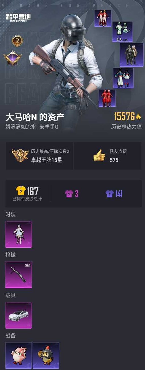 【和平精英】【lyhp17765】1粉1特效呛1载 特斯拉 1粉装,1特效呛,1载具,历史最高段位:卓越王牌15星 王牌印记2次 热力值:15576,56套装,45呛械,32装备,21战备;套装:角色-冰魄,套装-特训学院,套装-猎鹰,套装-青年教官,套装-橘黑制服,套装-红色运动,套装-黄色运动,套装-蓝色运动,套装-黄色伏地魔,套装-白色伏地魔,套装-黑色伏地魔,套装-竞技名士,套装-深蓝色名流,套装-酒红色名流,套装-湖蓝色名流,套装-猛禽,套装-长空猛禽,套装-蓝色守护者,套装-冷焰舞者,套装-灼焰舞者,套装-完美偶像,套装-人气偶像,套装-幻影武者,套装-街头潮人,套装-魅力单车,套装-绮丽涂鸦,套装-竞技达人朋克,套装-都市漫游者,套装-格斗先锋,套装-破蛋小黄鸡,套装-ss10特训,套装-ss8特训,套装-萌黄之夏,套装-夏日音浪,套装-ss9特训,套装-牛气满满,套装-ss11特训,套装-ss12特训,套装-ss18特训,套装-耀粉歌者,套装-飞行日记,套装-ss13特训,套装-ss14特训,套装-电音精灵,套装-福星高照,套装-虎虎生威吉莉,套装-空投萌叽,套装-ss19特训,套装-炫蓝之夏,套装-ss22特训,套装-云魄琉璃,套装-元气之梦,套装-ss34特训,套装-薄荷星砂,套装-ss35特训,套装-ss36特训;呛皮:aug-耀粉歌者,aug-紫晶流影,akm-破晓战魂,akm-彩虹符号,akm-霓彩脉冲,groza-乌木金纹,q-乌木金纹,scar-l-红色方程式,蜜獾-天降萌叽,m16a4-红色方程式,g36c-乌木金纹,m416-红色方程式,kar98k-彩虹符号,kar98k-炫彩节奏,kar98k-乌木金纹,m24-乌木金纹,awm-乌木金纹,amr-鸡智如我,slr-霓彩脉冲,sks-夜灯,vss-乌木金纹,mini14-鸡智如我,mk14-薄荷星砂,uzi-红色方程式,uzi-炫彩节奏,汤姆逊-天降萌叽,汤姆逊-乌木金纹,ump45-蓝色火焰,ump45-生命誓言,vect-生命誓言,vect-彩虹符号,野牛-乌木金纹,aks-74u-乌木金纹,s12k-夜灯,s12k-幻世战舞者,s12k-霓彩脉冲,s686-红色方程式,spas-12-狂鲨锋刃,5级dp-28-豹影疾电,m249-破晓战魂,m249-绯穹魔姬,m249-乌木金纹,mg3-幻世战舞者,平底锅-光之冒险,十子怒-异域银装;载具:特斯拉model 3珍珠白; 详情看图