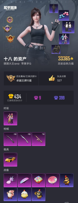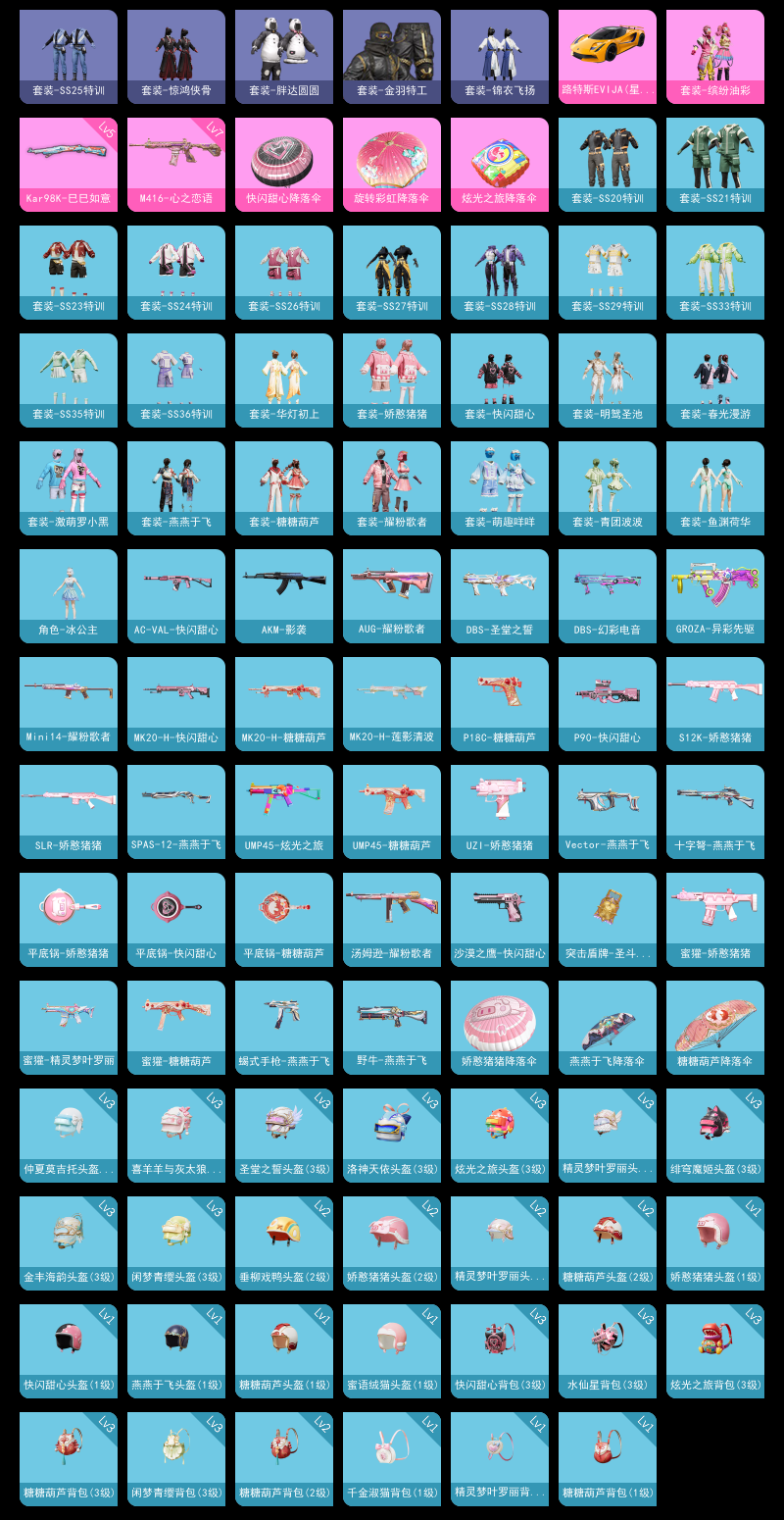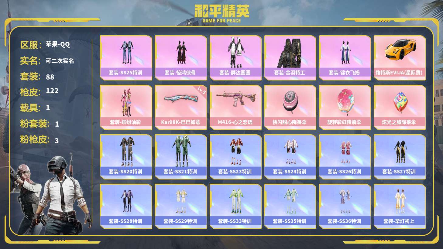 【和平精英】【lyhp17753】1粉3特1载 猪妹 心之恋语 胖达圆圆 1粉装,3特效呛,1载具,历史最高段位:卓越王牌15星 王牌印记10次 热力值:33365,88套装,122呛械,138装备,69战备;套装:套装-缤纷油彩,套装-特训学院,套装-猎鹰,套装-青年教官,套装-红色运动,套装-黄色运动,套装-白色伏地魔,套装-黑色伏地魔,套装-竞技名士,套装-猛禽,套装-长空猛禽,套装-旭日情侣,套装-特战装甲,套装-蓝彩潮人,套装-竞技达人朋克,套装-金羽特工,套装-森林游猎者,套装-幻世战舞者,套装-青涩时光,套装-缤纷果语,套装-龙魂突击队,套装-冰川特警,套装-元素星魂,套装-胖达圆圆,套装-麻辣教官,套装-破蛋小黄鸡,套装-疯狂小兔子,套装-鹤鸣,套装-霓虹街区,套装-激萌罗小黑,套装-萌黄之夏,套装-探宝勇士,套装-牛气满满,套装-白糯汤圆,套装-战术大师,套装-牛气冲天,套装-耀粉歌者,套装-吉莉礼服,套装-ss20特训,套装-ss21特训,套装-萌趣咩咩,套装-娇憨猪猪,套装-玉兔迎春,套装-绯格组合,套装-ss23特训,套装-王牌教练,套装-柠萌假日,套装-ss24特训,套装-华灯初上,套装-龟仙人,套装-ss25特训,套装-惊鸿侠骨,套装-锦衣飞扬,套装-龙的传人,套装-冰河战士,套装-ss26特训,套装-快闪甜心,套装-春光漫游,套装-空岛之星,套装-明鸳圣池,套装-云魄琉璃,套装-ss27特训,套装-ss28特训,角色-冰公主,套装-街头风暴,套装-海盐绵绵冰,套装-蝶变,套装-ss29特训,套装-异域银装,套装-星途旅人,套装-ss30特训,套装-青团波波,套装-糖糖葫芦,套装-ss31特训,套装-鱼渊荷华,套装-燕燕于飞,套装-智谋强哥,套装-ss33特训,套装-巳巳如意,套装-顶瓜瓜,套装-炫彩糖果,套装-元气之梦,套装-ss34特训,套装-薄荷星砂,套装-ss35特训,套装-粉黛兰香,套装-ss36特训,套装-萌鸡速递;呛皮:mk47-乌木金纹,ac-val-乌木金纹,ac-val-天降萌叽,ac-val-快闪甜心,akm-影袭,akm-破晓战魂,akm-涂鸦街区,akm-龙的传人,akm-霓彩脉冲,aug-耀粉歌者,aug-天降萌叽,aug-异域银装,aug-冰晶雪宝,aug-紫晶流影,scar-l-炫彩节奏,scar-l-彩虹符号,scar-l-玉兔迎春,scar-l-星途旅人,scar-l-海盐豹豹,groza-异彩先驱,groza-海盐豹豹,蜜獾-娇憨猪猪,蜜獾-天降萌叽,蜜獾-精灵梦叶罗丽,蜜獾-糖糖葫芦,m16a4-幻世战舞者,m16a4-冰河战士,7级m416-心之恋语,m416-蓝色火焰,m416-糯团青竹,famas-霓彩脉冲,famas-乌木金纹,m762-天降萌叽,win94-乌木金纹,m200-惊鸿侠骨,m200-乌木金纹,5级kar98k-巳巳如意,kar98k-王子的夏天,kar98k-彩虹符号,kar98k-顶峰精英,莫辛纳甘-乌木金纹,svd-霓彩脉冲,amr-鸡智如我,amr-乌木金纹,m24-炫彩节奏,mk20-h-莲影清波,mk20-h-快闪甜心,mk20-h-糖糖葫芦,mk20-h-狂鲨锋刃,mk20-h-乌木金纹,mk14-乌木金纹,mk14-冰河战士,mk14-薄荷星砂,mk14-紫晶流影,mini14-耀粉歌者,mini14-香桃花海,mini14-鸡智如我,slr-娇憨猪猪,slr-霓彩脉冲,vss-香桃花海,sks-炫彩节奏,sks-糯团青竹,m417-惊鸿侠骨,aks-74u-乌木金纹,p90-倾城蜜语,p90-快闪甜心,p90-玩趣呆呆,p90-巳巳如意,p90-乌木金纹,uzi-红色方程式,uzi-娇憨猪猪,uzi-天降萌叽,uzi-冰河战士,uzi-炫彩糖果,野牛-燕燕于飞,ump45-蓝色火焰,ump45-生命誓言,ump45-炫光之旅,ump45-糖糖葫芦,ump45-绒宝小鹅,vect-生命誓言,vect-彩虹符号,vect-燕燕于飞,汤姆逊-耀粉歌者,汤姆逊-天降萌叽,mp5k-乌木金纹,s12k-夜灯,s12k-娇憨猪猪,s12k-幻世战舞者,s12k-霓彩脉冲,dbs-彩虹符号,dbs-圣堂之誓,dbs-幻彩电音,dbs-乌木金纹,spas-12-燕燕于飞,spas-12-乌木金纹,s686-生命誓言,s686-巳巳如意,s1897-炫彩节奏,m249-破晓战魂,m249-彩虹符号,5级dp-28-豹影疾电,dp-28-彩虹符号,mg3-幻世战舞者,mg3-惊鸿侠骨,蝎式手呛-燕燕于飞,沙墨之鹦-快闪甜心,p18c-糖糖葫芦,平底锅-娇憨猪猪,平底锅-惊鸿侠骨,平底锅-快闪甜心,平底锅-空岛之星,平底锅-糖糖葫芦,撬棍-幻世战舞者,破片手留单-呆爆全场,破片手留单-拽到爆炸,破片手留单-巳巳如意,十子怒-燕燕于飞,十子怒-异域银装,铝热弹-炫彩糖果,突击盾牌-圣斗士星矢,爆炸猎弓-惊鸿侠骨;载具:路特斯evija星际黄;降落伞:炫彩糖果飞行器,空岛之星尾迹,异域银装飞行器,顶峰精英尾迹,鸡智如我飞行器; 详情看图