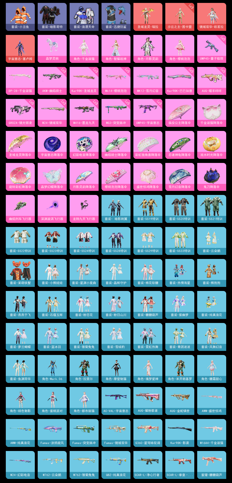 【和平精英】【lyhp17740】4红装4粉装14特效呛1载具 3级图卡盟 1级瑞拉 1级欧若拉 1级塞卢姆 樱桃泡泡 千金淑猫 月影灵韵 狂沙舞者 暗影哥特 小丑鱼 蓝螳螂 3级m4墨龙九天 3级akm幽焰骑士 5级妹控樱桃泡泡 3级ump45宇宙意志 晶梦灵驹 4粉装,14特效呛,1载具,历史最高段位:超级王牌4星 王牌印记3次 热力值:58595,98套装,159呛械,231装备,108战备;套装:沙丘之主-图卡盟,镜域双华-欧若拉,宇宙意志-塞卢姆,圣域龙灵-瑞拉,角色-千金淑猫,角色-樱桃泡泡,角色-月影灵韵,角色-智耀战神,套装-特训学院,套装-黄色运动,套装-蓝色运动,套装-白色伏地魔,套装-黑色伏地魔,套装-竞技名士,套装-猛禽,套装-海岛探路者,套装-浪漫天命,套装-甜蜜告白,套装-魅力单车,套装-耀眼新星,套装-都市漫游者,套装-狂沙舞者,套装-破晓战魂,套装-幻世战舞者,套装-暗影哥特,套装-迅捷狂鲨,套装-呆萌铁蟹,套装-龙魂突击队,套装-小丑鱼,套装-白熊同盟,套装-探宝勇士,套装-战术大师,套装-热情海星,套装-纯真浪花,套装-ss19特训,套装-ss20特训,套装-ss21特训,套装-玉兔迎春,套装-ss22特训,套装-光之冒险,套装-ss23特训,套装-王牌教练,套装-ss24特训,套装-香桃花海,套装-冰河战士,套装-恋语绒绒,套装-ss28特训,套装暗影刺翼,角色-拉斐尔,角色-米开朗基罗,角色-mark.06,套装-街头风暴,套装-海盐绵绵冰,套装-蝶变,套装-粉日山川,套装-小熊娃娃,套装-ss29特训,套装-雏菊兔兔,套装-萝兰蝴蝶,角色-绯色魅影,套装-小熊蜂蜜罐,套装-异域银装,角色-摩登魅猫,角色-蜜桃派对,角色-都市丽猫,套装-星途旅人,角色-糖霜甜心,角色-许七安,角色-怀庆长公主,套装-ss30特训,套装-青团波波,套装-棉花软糖,套装-绒绒粉兔,套装-糖糖葫芦,套装-绒宝小鹅,套装-ss31特训,套装-鱼渊荷华,套装-石蕴玉辉,套装-燕燕于飞,套装-智谋强哥,角色-风玲,角色-瑰梦爱神,套装-紫幽梦,套装-粉恋花,套装-晶辉守护,套装-ss33特训,套装-云朵鹅,套装-巳巳如意,套装-ss32特训,套装-熊抱抱,套装-风舞幻音,套装-蓝冰羽,套装-顶瓜瓜,套装-雪绒豹,套装-大橘大利,套装-星渊小夜曲,套装-霓虹热舞,套装-ss34特训;呛皮:m762-雏菊兔兔,m762-云朵鹅,scar-l-红色方程式,scar-l-玉兔迎春,scar-l-拳皇·狂花道,scar-l-星途旅人,scar-l-青云稚梦,scar-l-海盐豹豹,scar-l-净心行者,5级aug-暖羊咩咩,aug-耀粉歌者,aug-天降萌叽,aug-异域银装,aug-金蛇镇世,3级m416-墨龙九天,m416-糯团青竹,蜜獾-天降萌叽,蜜獾-糖糖葫芦,蜜獾-鸡智如我,蜜獾-乌木金纹,q-纯真浪花,3级akm-幽焰骑士,akm-破晓战魂,5级groza-镜光银凌,groza-海盐豹豹,g36c-星穹咏叹调,m16a4-幻世战舞者,m16a4-冰河战士,m16a4-千金淑猫,famas-突变脉冲,famas-镜域双华,famas-涂鸦旋风,famas-乌木金纹,mk47-乌木金纹,ac-val-宇宙意志,awm-天降萌叽,awm-纯真浪花,awm-盛世惊鸿,3级m24-镜域双华,m24-幻彩电音,m24-乌木金纹,3级kar98k-圣域龙灵,5级kar98k-巳巳如意,kar98k-影袭,win94-晶梦幻蝶,莫辛纳甘-乌木金纹,svd-云朵鹅,m200-宇宙意志,m200-六号稻草人,m200-乌木金纹,slr-彩虹符号,slr-墨龙九天,slr-极冰使者,5级mk14-樱桃泡泡,mk14-乌木金纹,mk14-冰河战士,mk14-绒绒粉兔,mk14-紫幽梦,mk20-h-星途旅人,mk20-h-樱桃泡泡,mk20-h-糖糖葫芦,mk20-h-圣域龙灵,mk20-h-乌木金纹,1级mk12-雪月幻音,mk12-游龙飞鱼,m417-玩趣呆呆,mini14-炫彩节奏,mini14-香桃花海,mini14-雏菊兔兔,sks-迅猛狂鲨,sks-炫彩节奏,sks-圣域龙灵,vss-香桃花海,uzi-天降萌叽,uzi-冰河战士,uzi-盛世惊鸿,uzi-月影灵韵,汤姆逊-纯真浪花,汤姆逊-幽焰骑士,野牛-沙丘之主,野牛-雏菊兔兔,野牛-燕燕于飞,mp5k-乌木金纹,vect-生命誓言,vect-突变脉冲,vect-创世·救赎,vect-燕燕于飞,5级ump45-量子极限,3级ump45-宇宙意志,ump45-海盐豹豹,ump45-糖糖葫芦,aks-74u-粉粉喵呜,p90-玩趣呆呆,p90-巳巳如意,p90-金蛇镇世,js9-蓝晶绮麟,s686-彩虹符号,s686-千金淑猫,s686-雪月幻音,s686-巳巳如意,dbs-彩虹符号,dbs-创世·救赎,dbs-游龙飞鱼,dbs-幻彩电音,dbs-幽焰骑士,dbs-乌木金纹,spas-12-燕燕于飞,spas-12-云朵鹅,spas-12-乌木金纹,aa12-g-纯真浪花,aa12-g-绒兔团圆,s12k-夜灯,s12k-幻世战舞者,s12k-玩趣呆呆,s12k-智耀战神,s1897-紫幽梦,s1897-糯团青竹,m249-糯团青竹,m249-无面战甲,5级mg3-突变脉冲,mg3-幻世战舞者,mg3-乌木金纹,mg3-霓彩脉冲,pkm-啾咪啾咪,pkm-紫幽梦,1级dp-28-千金淑猫,dp-28-彩虹符号,tmp-9-幽焰骑士,tmp-9-雪月幻音,蝎式手呛-金丰海韵,蝎式手呛-千金淑猫,蝎式手呛-燕燕于飞,短管霰弹-宇宙意志,短管霰弹-竹节火铳,短管霰弹-圣域龙灵,r1895-雏菊兔兔,p18c-糖糖葫芦,沙墨之鹦-云朵鹅,p92-紫幽梦,r45-幻彩电音,平底锅-纯真浪花,平底锅-雏菊兔兔,平底锅-糖糖葫芦,平底锅-紫幽梦,平底锅-属我最6,大砍刀-盛世惊鸿,大砍刀-鬼刀,大砍刀-云朵鹅,撬棍-幻世战舞者,撬棍-突变脉冲,撬棍-沙丘之主权杖,十子怒-燕燕于飞,十子怒-异域银装,破片手留单-星途旅人,破片手留单-海盐豹豹,破片手留单-巳巳如意,5级爆炸猎弓-拳皇·狂花道,爆炸猎弓-雪月幻音,燃烧瓶-甜梦桃焰;载具:晶梦灵驹;降落伞:深渊漩涡飞行器,酣梦熊熊飞行器,祥瑞起舞飞行器,沙丘之主天马,龙翔九天飞行器,幽焰列车飞行器,圣域金龙飞行器,公主华盖飞行器,异域银装飞行器,招财竹蜻蜓飞行器,顶峰精英尾迹,破刃行动尾迹; 详情看图