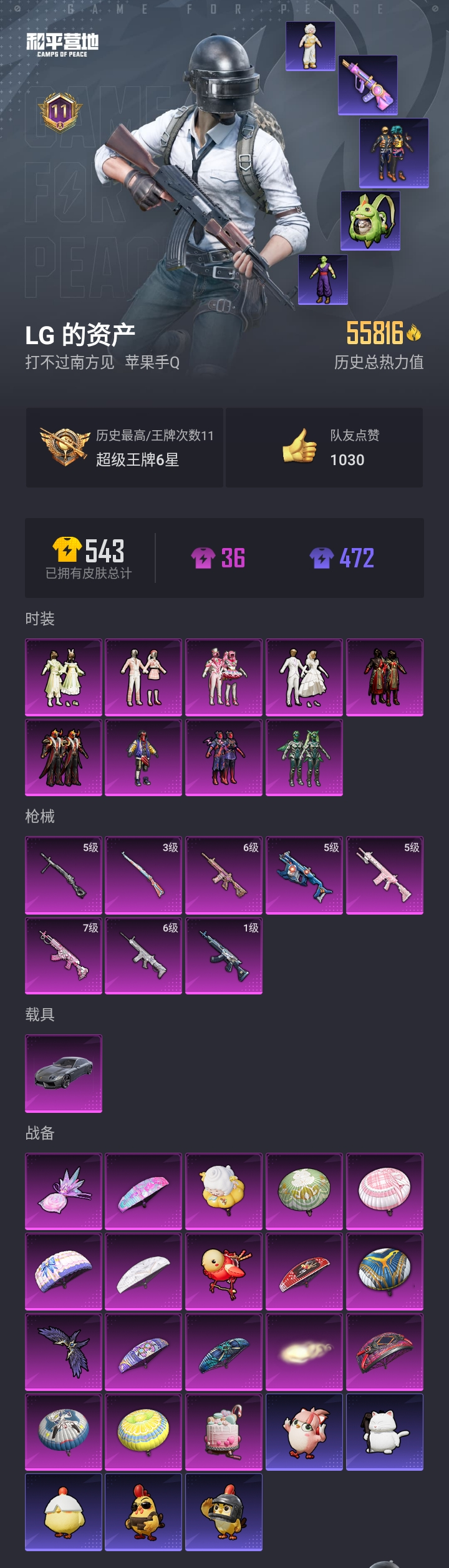 9粉装8特效呛1载具 第五大道 心之彼岸 天禅 小丑鱼 恐龙猫包 6级恋语m4 6级纯梦死噶 满级甜蜜762 兰博基尼