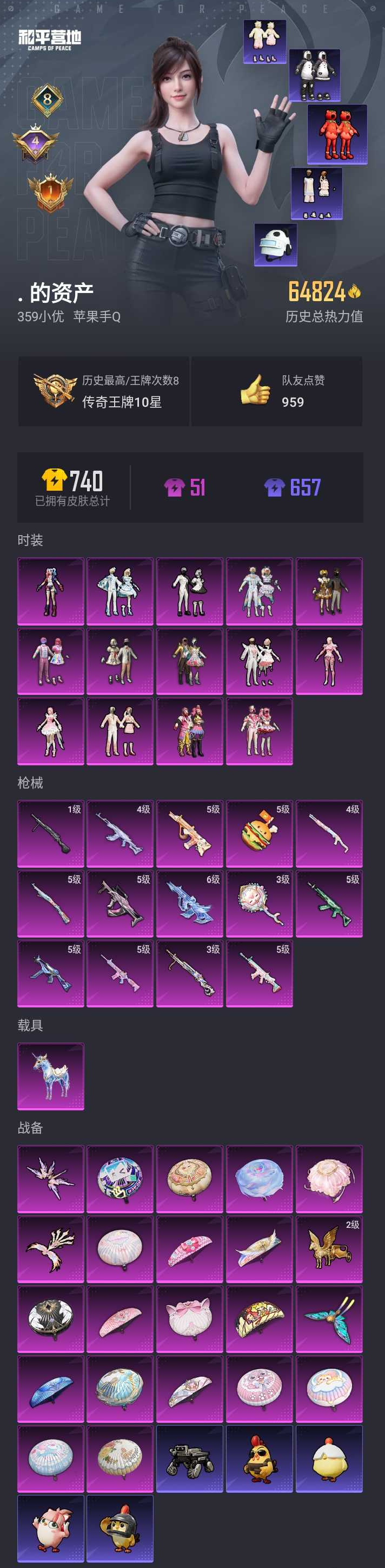 【和平精英】【lyhp17738】14粉装14特效呛1载具【6级星梦aug/红熊茄茄/软软马卡龙/糯粉咩咩/胖达】小丑女哈莉 蝶舞迷情 三巧克力 猪妹 第五大道 5级汉堡手蕾 星空马 国宝头盔 14粉装,14特效呛,1载具,历史最高段位:传奇王牌10星 王牌印记8次 热力值:64824,146套装,183呛械,236装备,152战备;套装:套装-甜心巧克力,套装-宝贝奶油派,套装-天使彩虹糖,套装-蝶舞迷情,套装-缤纷油彩,套装-馨动时刻,套装-彩虹鹿灵,套装-冰川粉黛,套装-冰川幽秘,套装-第五大道,角色-美雪,角色-守护天翼,套装-雪月幻音,角色-狂魅哈莉,套装-特训学院,套装-猎鹰,套装-青年教官,套装-橘黑制服,套装-红色运动,套装-黄色运动,套装-蓝色运动,套装-黄色伏地魔,套装-白色伏地魔,套装-黑色伏地魔,套装-竞技名士,套装-深蓝色名流,套装-酒红色名流,套装-湖蓝色名流,套装-黄色名流,套装-猛禽,套装-长空猛禽,套装-海岛探路者,套装-冷焰舞者,套装-浪漫天命,套装-浪漫假日,套装-春日漫步,套装-燃烧卡路里,套装-鹰眼刺客,套装-苍穹猎鹰,套装-冰冻风暴,套装-完美偶像,套装-人气偶像,套装-幻影武者,套装-蓝彩潮人,套装-魅力单车,套装-绮丽涂鸦,套装-竞技达人朋克,套装-破晓战魂,套装-森林游猎者,套装-都市魅力,套装-酷潮明星,套装-夏日倾情,套装-缤纷果语,套装-龙魂突击队,套装-冰川特警,套装-元素星魂,套装-胖达圆圆,套装-破蛋小黄鸡,套装-淡雅花蕊,套装-玲珑飞花,套装-霓虹街区,套装-潮萌小黄鸭,套装-白熊同盟,套装-战术大师,套装-耀粉歌者,套装-曼妙人鱼,套装-热情海星,套装-纯真浪花,套装-奶芙汪汪,套装-恶魔喵喵,套装-红熊茄茄,套装-俏皮奶喵,套装-光之冒险,套装-糯粉咩咩,套装-软软马卡龙,套装-恋恋初桃,套装-龟仙人,套装-ss25特训,套装-惊鸿侠骨,套装-锦衣飞扬,套装-双彩绵绵,套装-香桃花海,套装-龙的传人,套装-冰河战士,套装-ss26特训,套装-快闪甜心,套装-春光漫游,套装-空岛之星,套装-无暇誓言,套装-萌趣绒叽,套装-贝斯之夜,玩偶服-超人强,套装-焰鹰斗篷,套装-幽夜迷踪,套装-幻羽潜行,套装-ss27特训,套装-恋语绒绒,套装-老实芭蕉,套装-ss28特训,玩偶服-卖崽青蛙,角色-迎夏光舞,套装-奶油梦幻熊,角色-极地流光,角色-粉雾星云,角色-冰公主,角色-mark.06,套装-街头风暴,套装-海盐绵绵冰,套装-蝶变,套装-创世·幻影,套装-雪夜云雾,套装-小熊娃娃,套装-ss29特训,套装-雏菊兔兔,套装-萝兰蝴蝶,套装-晨曦轻云,套装-火种守卫者,套装-异域银装,角色-蜜桃派对,套装-星途旅人,套装-ss30特训,套装-青团波波,套装-棉花软糖,套装-糖糖葫芦,套装-纯白跃动,套装-诡诞巡游,套装-ss31特训,套装-鱼渊荷华,套装-燕燕于飞,套装-智谋强哥,套装-紫幽梦,套装-粉恋花,套装-晶辉守护,套装-ss33特训,角色-猎影月神,套装-云朵鹅,套装-巳巳如意,角色-冷霜之星,套装-ss32特训,套装-蓝冰羽,套装-顶瓜瓜,套装-雪绒豹,套装-大橘大利,角色-时希公主,套装-ss34特训,套装-ss35特训;呛皮:蜜獾-天降萌叽,蜜獾-糖糖葫芦,蜜獾-鸡智如我,蜜獾-乌木金纹,famas-镜域双华,famas-乌木金纹,q-萌萌彩虹球,q-纯真浪花,6级aug-星梦奇缘,5级aug-暖羊咩咩,aug-甜蜜菠萝,aug-闲梦青缨,aug-异域银装,aug-紫晶流影,ac-val-彩虹甜喵,ac-val-快闪甜心,5级m762-青锋波束,m762-甜心宝贝,m762-彩虹符号,m762-彩虹甜喵,m762-萌物绒绒,m762-雏菊兔兔,m762-云朵鹅,5级scar-l-锦绣绵绵,scar-l-夜灯,scar-l-星途旅人,scar-l-海盐豹豹,m16a4-冰河战士,m16a4-千金淑猫,5级groza-镜光银凌,groza-影袭,groza-春暖花开,groza-奶油梦幻熊,groza-海盐豹豹,4级akm-幻海仙踪,akm-春暖花开,akm-霓虹街区,akm-彩虹符号,akm-龙的传人,akm-星月云朵,5级m416-电玩时刻,m416-糯团青竹,mk47-林间仙鹿,mk47-幻海仙踪,g36c-星穹咏叹调,awm-天降萌叽,awm-圣堂之誓,awm-焰鹰斗篷,awm-纯真浪花,awm-盛世惊鸿,5级kar98k-巳巳如意,kar98k-彩虹符号,kar98k-顶峰精英,svd-云朵鹅,莫辛纳甘-蜜语绒猫,m200-惊鸿侠骨,m200-乌木金纹,win94-拳皇·狂花道,amr-鸡智如我,amr-乌木金纹,mk20-h-莲影清波,mk20-h-快闪甜心,mk20-h-星梦奇缘,mk20-h-星途旅人,mk20-h-糖糖葫芦,mk20-h-乌木金纹,mk14-冰河战士,mk14-猪猪侠,mk14-紫幽梦,mini14-春暖花开,mini14-旋转彩虹,mini14-香桃花海,mini14-雏菊兔兔,m417-惊鸿侠骨,m417-玩趣呆呆,m417-猪猪侠,vss-香桃花海,vss-星月云朵,vect-焰鹰斗篷,vect-燕燕于飞,aks-74u-翎光蝶翼,aks-74u-乌木金纹,uzi-影袭,uzi-天降萌叽,uzi-冰河战士,uzi-啾咪啾咪,uzi-盛世惊鸿,5级ump45-量子极限,ump45-夜灯,ump45-春暖花开,ump45-猪猪侠,ump45-海盐豹豹,ump45-糖糖葫芦,汤姆逊-甜梦小狐,汤姆逊-星梦奇缘,汤姆逊-纯真浪花,汤姆逊-雾都回忆,汤姆逊-智耀战神,野牛-雏菊兔兔,野牛-燕燕于飞,mp5k-未来领航者,mp5k-乌木金纹,p90-快闪甜心,p90-玩趣呆呆,p90-精灵之光,p90-巳巳如意,p90-乌木金纹,dbs-彩虹甜喵,dbs-第五大道,dbs-彩虹符号,dbs-圣堂之誓,dbs-焰鹰斗篷,dbs-巴啦啦小魔仙,dbs-乌木金纹,4级spas-12-蜜语绒猫,spas-12-燕燕于飞,spas-12-云朵鹅,spas-12-乌木金纹,s1897-春暖花开,s1897-精灵梦叶罗丽,s1897-紫幽梦,s1897-糯团青竹,s12k-夜灯,s12k-玩趣呆呆,s12k-智耀战神,s686-生命誓言,s686-彩虹符号,s686-巳巳如意,aa12-g-纯真浪花,aa12-g-精灵之光,mg3-甜梦小狐,mg3-惊鸿侠骨,mg3-镜域双华,mg3-霓彩脉冲,m249-彩虹符号,m249-糯团青竹,3级dp-28-圣堂之誓,1级dp-28-豹影疾电,dp-28-甜心宝贝,dp-28-焰鹰斗篷,pkm-啾咪啾咪,pkm-雾都回忆,pkm-紫幽梦,蝎式手呛-奶油梦幻熊,蝎