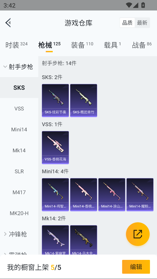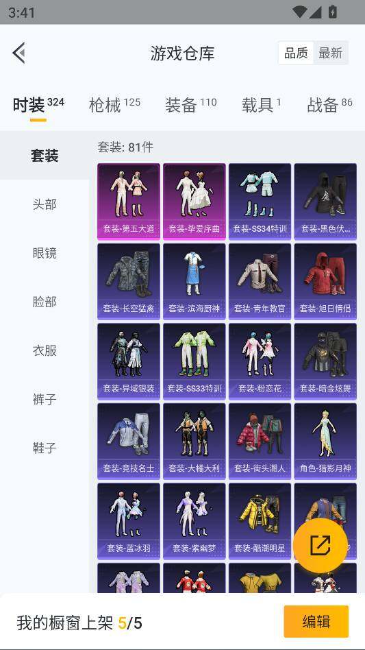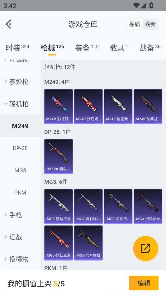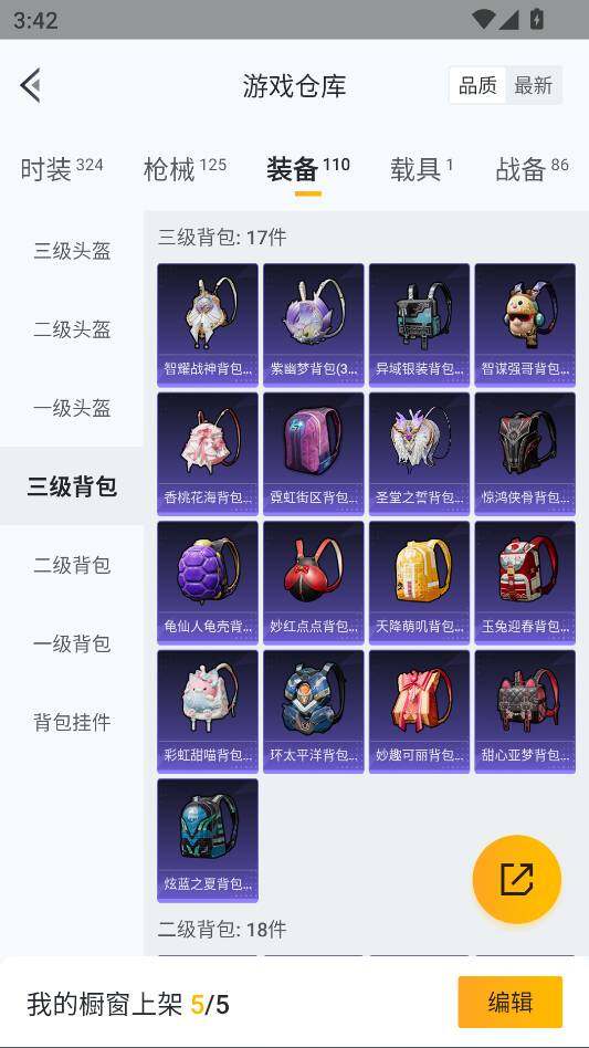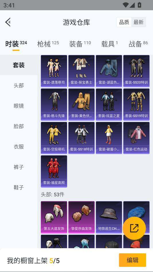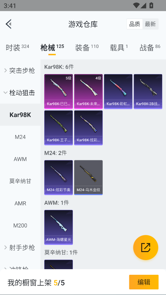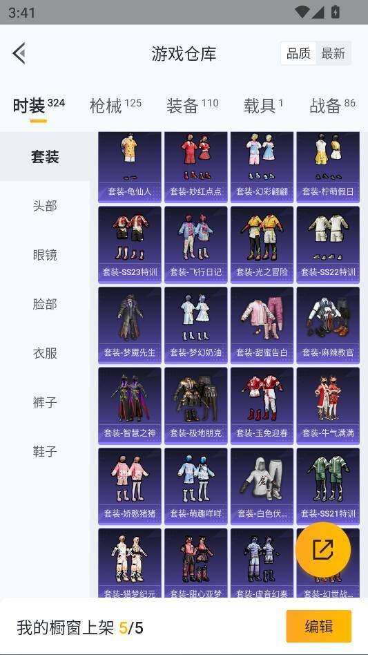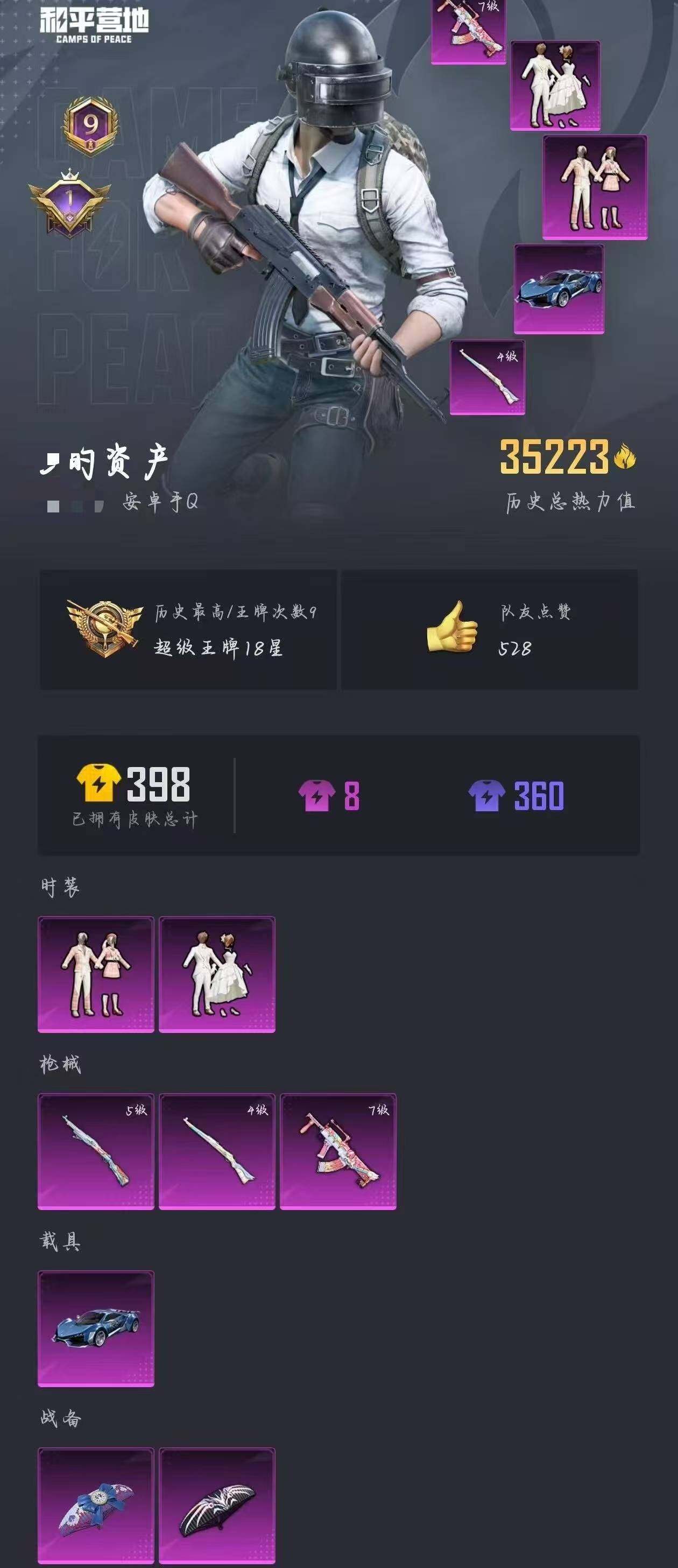 _2258008-时装数:324载具数:1呛械数:125战备数:86热门装扮:梦魇先生挚爱序曲第五大道载具:幻影随行稀有呛皮:七级groza-旋转彩虹,五级kar98k-巳巳如意,四级kar98k-未来歌姬