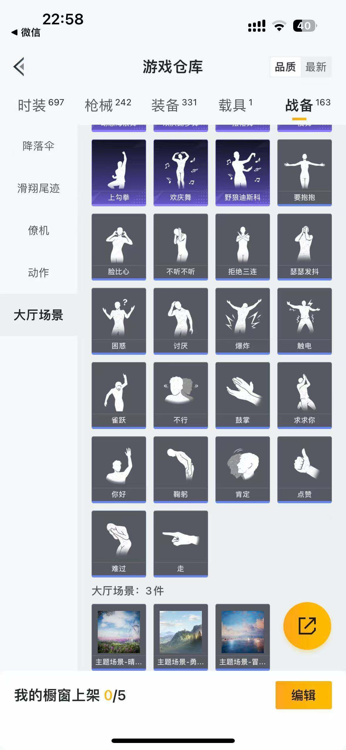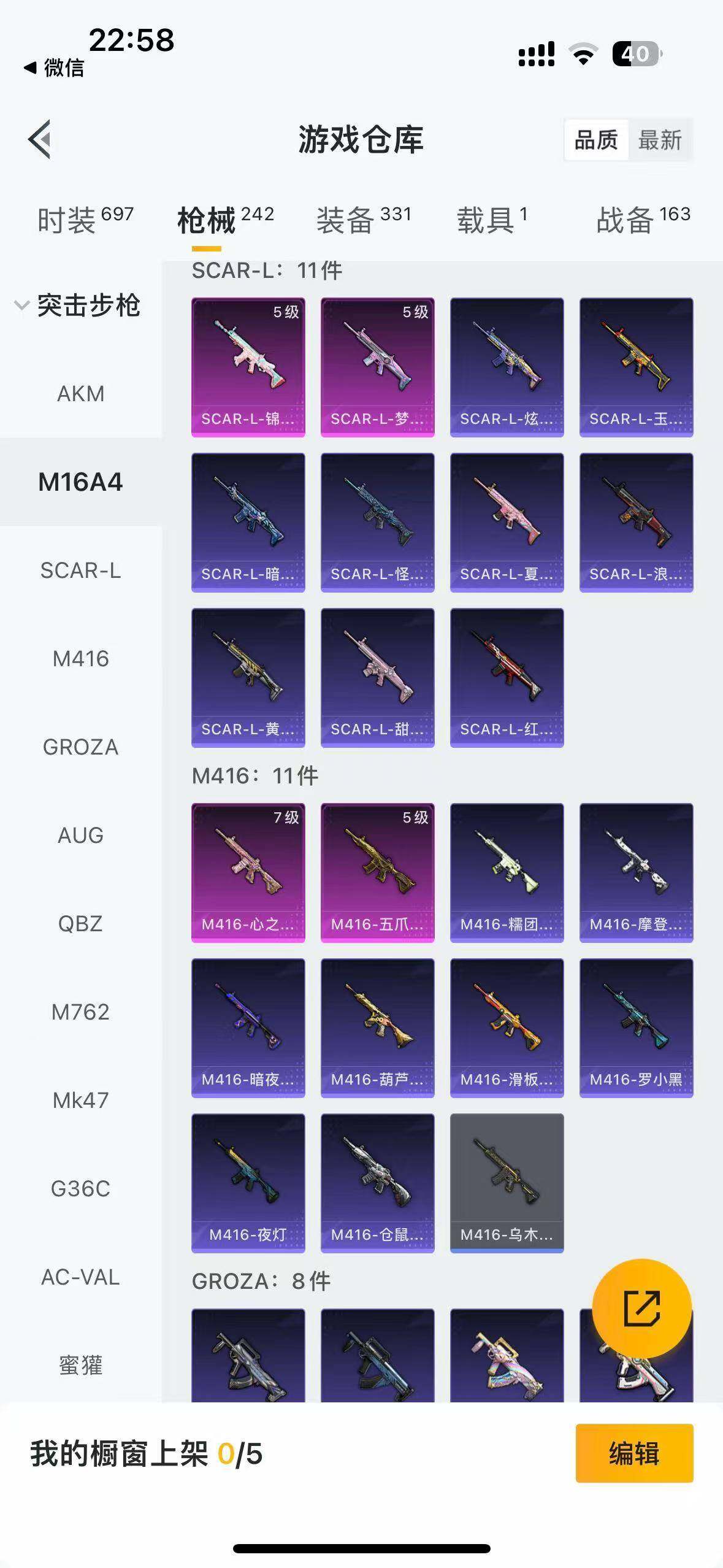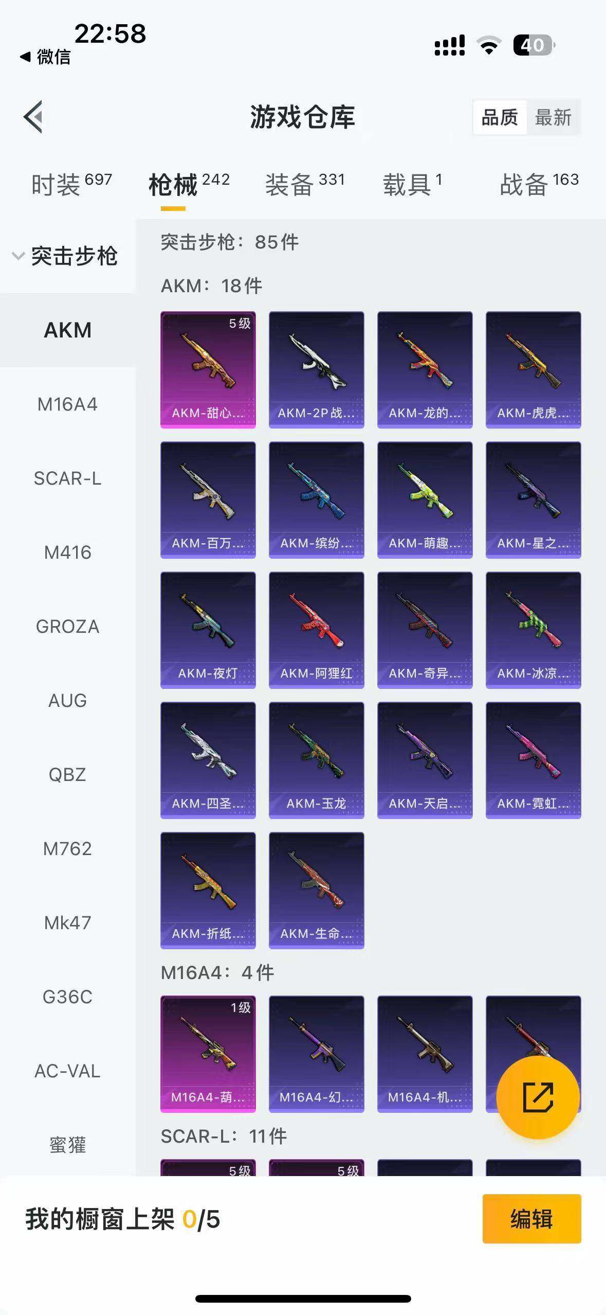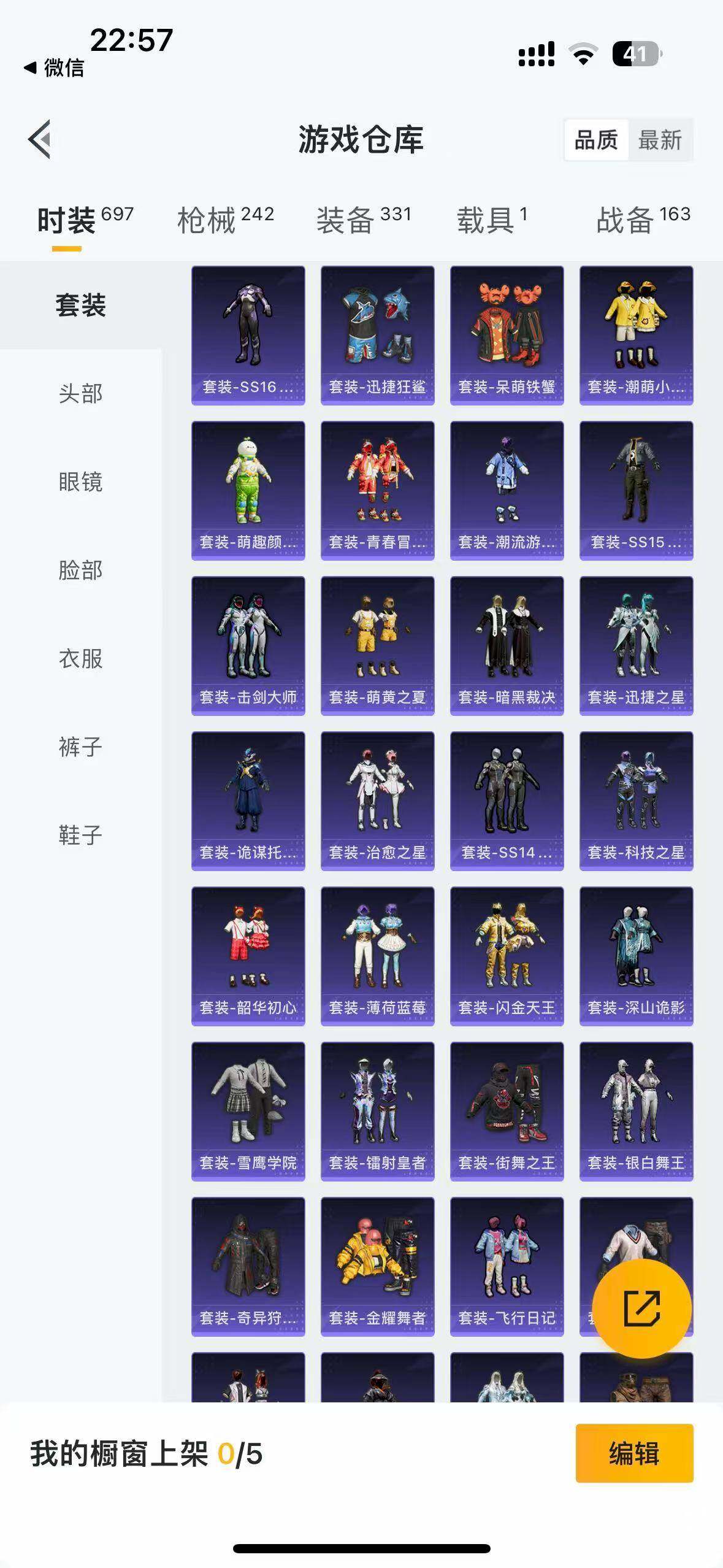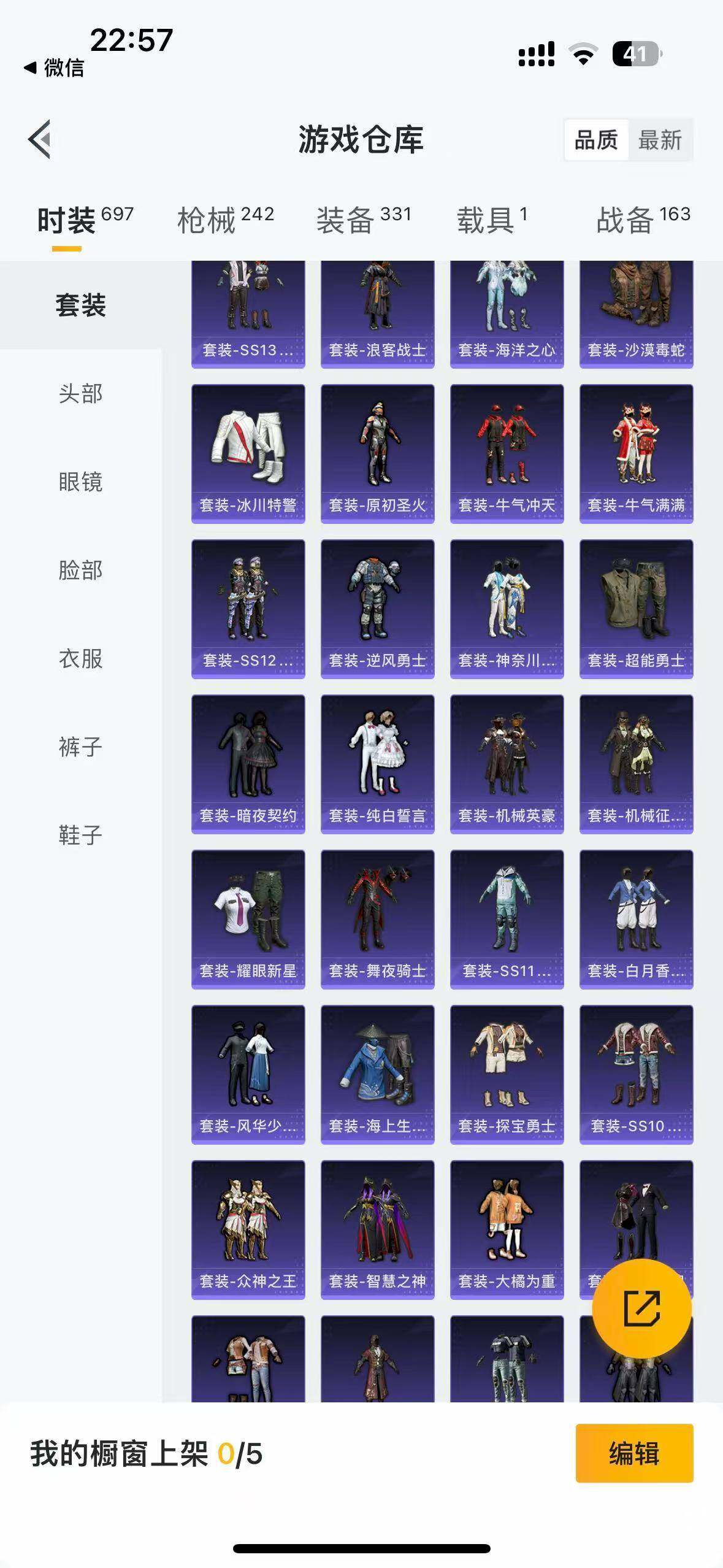 _2257963-时装数:697载具数:1呛械数:242战备数:163热门装扮:奇异狩猎者梦幻火箭新101甜心巧克力呆萌铁蟹数码大师深海小丑鱼天启纪元宝贝奶油派天使彩虹糖梦魇先生迅捷狂鲨好奇恐龙甜蜜誓约绚金战神俏皮狐尾甜梦冰蝶暗夜玫瑰吟月归客s1赛事上衣蜀山剑侠-李潮萌小黄鸭大橘为重浪客战士暗夜魅影猪猪侠载具:玛莎拉蒂ghibli粉稀有呛皮:七级m762-激战未来七级m416-心之恋语五级scar-l-锦绣绵绵五级scar-l-梦幻火箭五级m416-五爪金龙五级akm-甜心宝贝三级mini14-荧光虫舞一级m16a4-葫芦兄弟一级m762-甜蜜誓约一级dp-28-豹影疾电