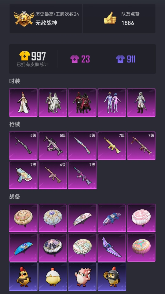 0载具-182套装-275呛皮-可二次【战神框巡查衣都市猎人梦幻火箭 8特效呛5粉装满级m4暖熊萌萌akm炫紫旋律 秒换绑不用等】 苹果q区-85850热力值-24印记-历史最高段位:无敌战神-182套装-275呛皮 【6稀有】 巡查衣 都市猎人 奇异狩猎者 m416-黄金龙骨 awm-黄金龙骨 akm-百万伏特【5粉装】 梦幻火箭 冰霜白皇 炙焰红王 银刃赛罗 角色-萨利娅【8特效呛】 m416-心之恋语