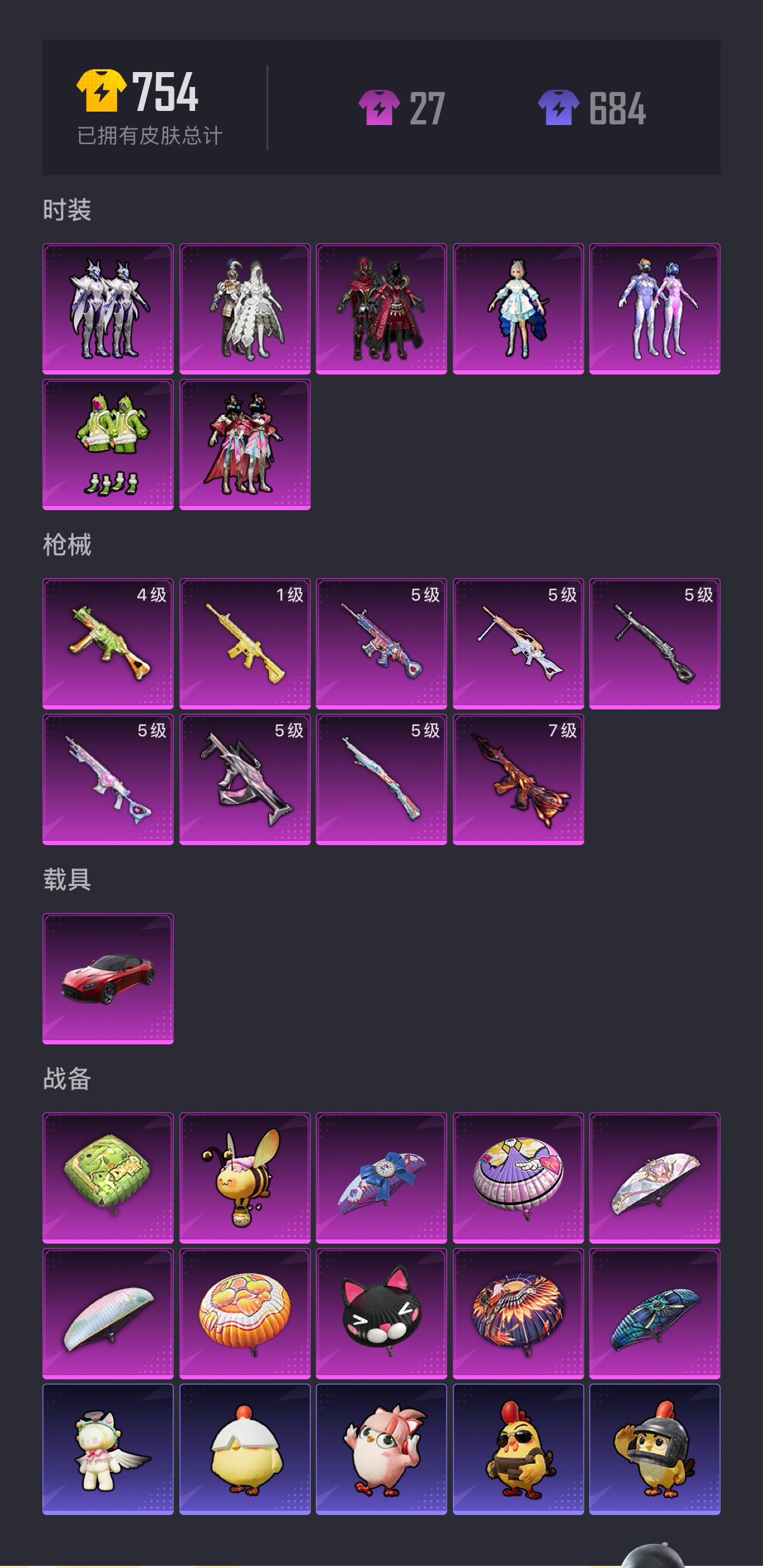 1载具-143套装-218呛皮-【梦幻火箭满级风花雪月9特效呛7粉装1载具 秒换绑不用等】 苹果q区-67543热力值-9印记-143套装-218呛皮 【1载具】 阿斯顿马丁s红色【7粉装】 梦幻火箭 洛天依 冰霜白皇 恐龙拽拽 炙焰红王 紫电风暴 花影阑珊【9特效呛】 m416-暖熊萌萌1级 m416-风花雪月7级 ump45-恐龙拽拽4级 scar-l-童趣迷兔5级 kar98k-巳巳如意