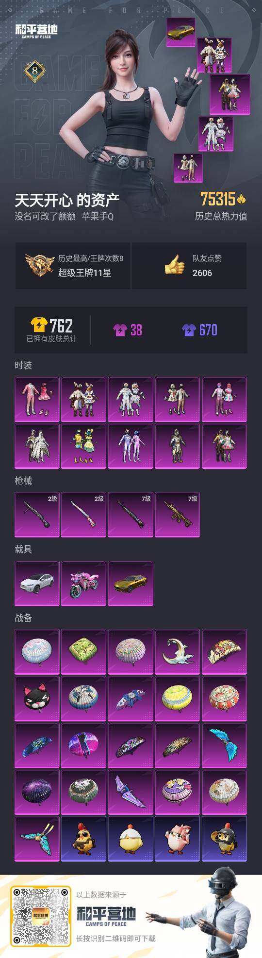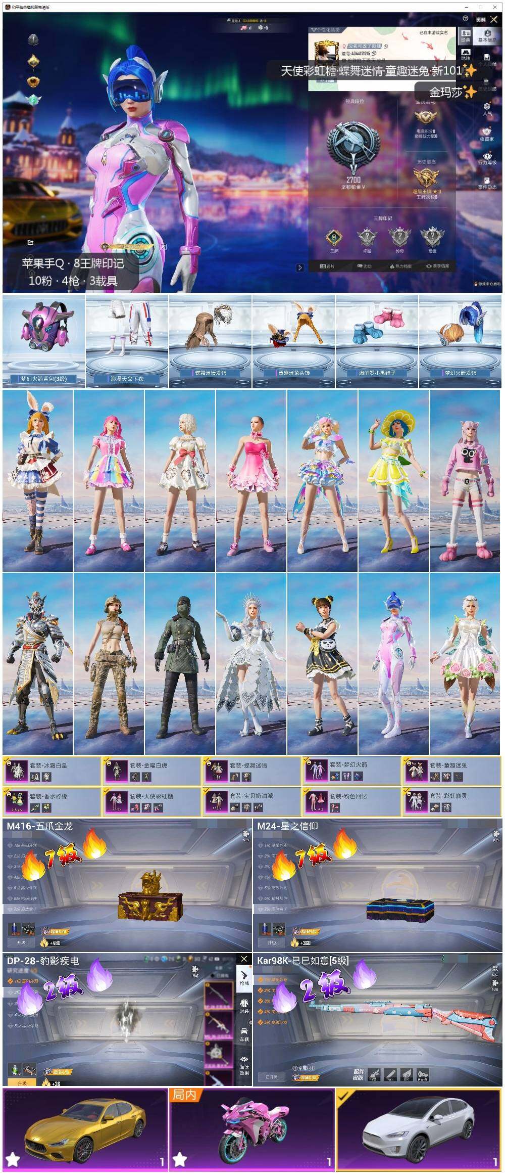 3载具-159套装-193呛皮-可二次【店主推荐捡漏号!可直接换绑】/素材身法号 苹果 手q-10粉装-4特效呛-3载具-4粉色飞行器-7.5w热力值-8王牌印记-159套装-193呛皮【热门品类】:粉装-梦幻火箭,粉装-童趣迷兔,套装-浪漫天命,套装-龟仙人,套装-浪漫波比,套装-粉红小猪【粉色载具】:特斯拉model x(珍珠