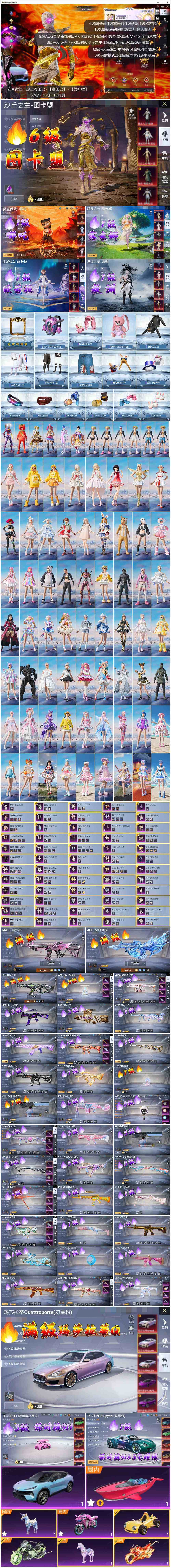 11载具-328套装-420呛皮-素材身法号/玛莎拉蒂quattropte(幻星粉)六级/沙丘之主-图卡盟六级/无敌战神框2/绝世印记5/璀璨碎片586/akm-幽焰骑士九级/m416-超新星九级/aug-星梦奇缘九级 安卓 微信-无敌战神框-5神装-57粉装-35特效呛-11载具-25粉色飞行器-21.2w