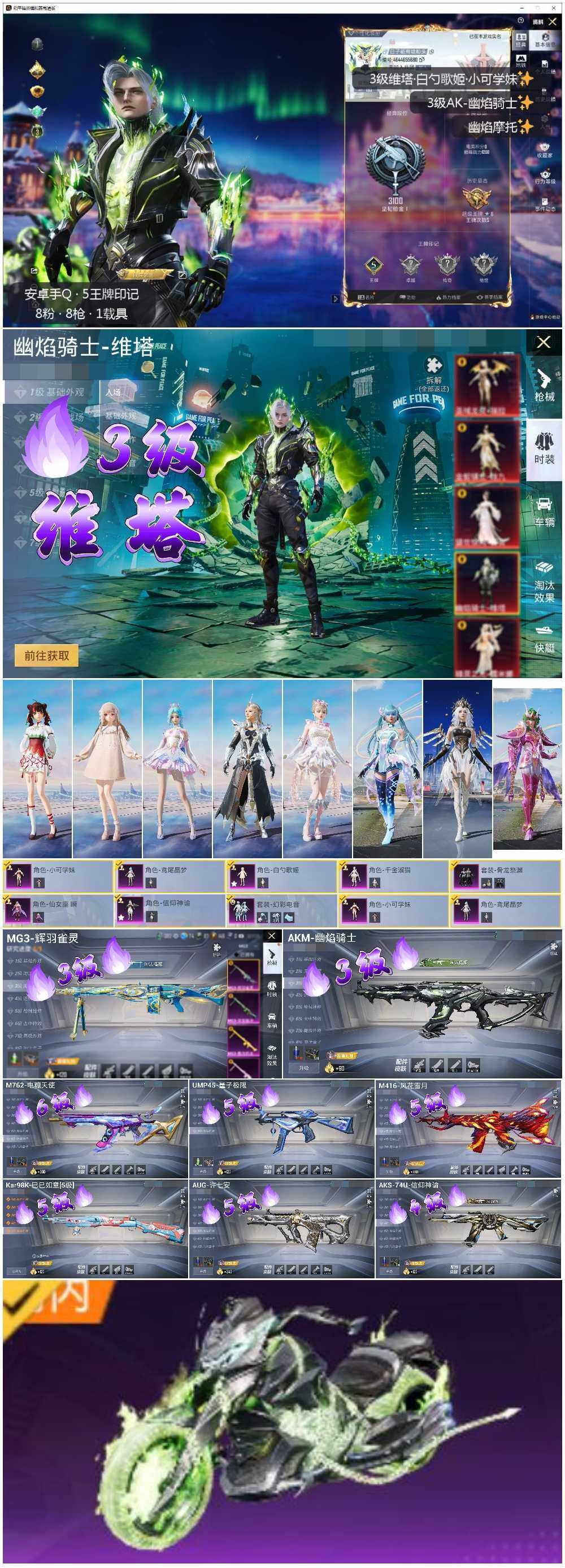 1载具-73套装-117呛皮-【店主推荐捡漏号!可直接换绑】/素材身法号/地铁满天赋 安卓 手q-1神装-8粉装-8特效呛-1载具-5粉色飞行器-4.1w热力值-5王牌印记-73套装-117呛皮【红色神装等级】:幽焰骑士-维塔三级【热门品类】:套装-粉红小猪【粉色载具】:幽焰风驰摩托车【粉色套装】:粉装-骨龙祭渊,角色-白勺