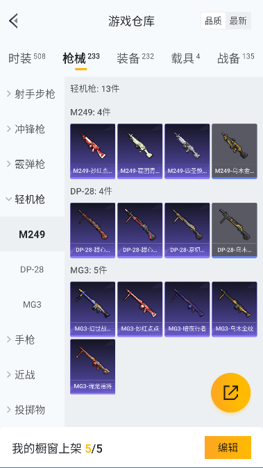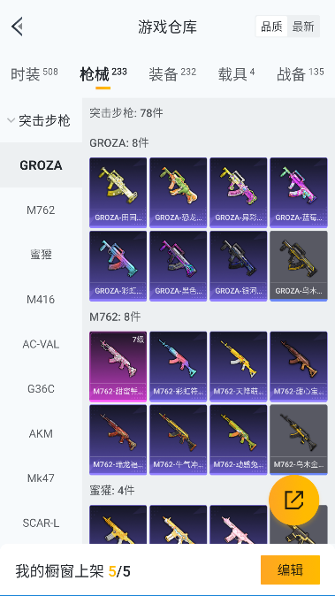 4载具-508套装-233呛皮-实名: 可修改 时装数: 138 载具数: 4 呛械数: 233 战备数: 135 热门装扮: 甜心巧克力宝贝奶油派天使彩虹糖智能音符琉璃脉冲飓风飞鹰葫芦兄弟炙焰牛王 载具: 阿斯顿·马丁dbs绿兰博基尼urus明艳黄极速兔兔车玛莎拉蒂mc20星石白 稀有呛皮: ak