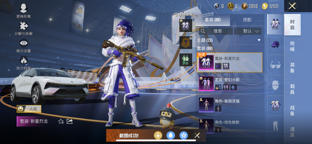 2载具-88套装-105呛皮-【身法号2载具4粉装2特效梦幻火箭 小白龙 浪漫天命 潮萌小黄鸭 激萌罗小黑 金羽特工 暗影哥特 狂沙舞者】苹果q-1稀有2载具4粉装2特效呛12热门88套装105呛皮 36724热力值 5印记 历史传奇王牌13星 【1稀有】 浪漫天命 【2载具】 路特斯el灰色 双人摩托梦幻火箭 【4粉装】 梦幻火箭 异瞳寒姬 闪光银龙 新星烈龙 【2特效呛】 m416-五爪金龙 7级
