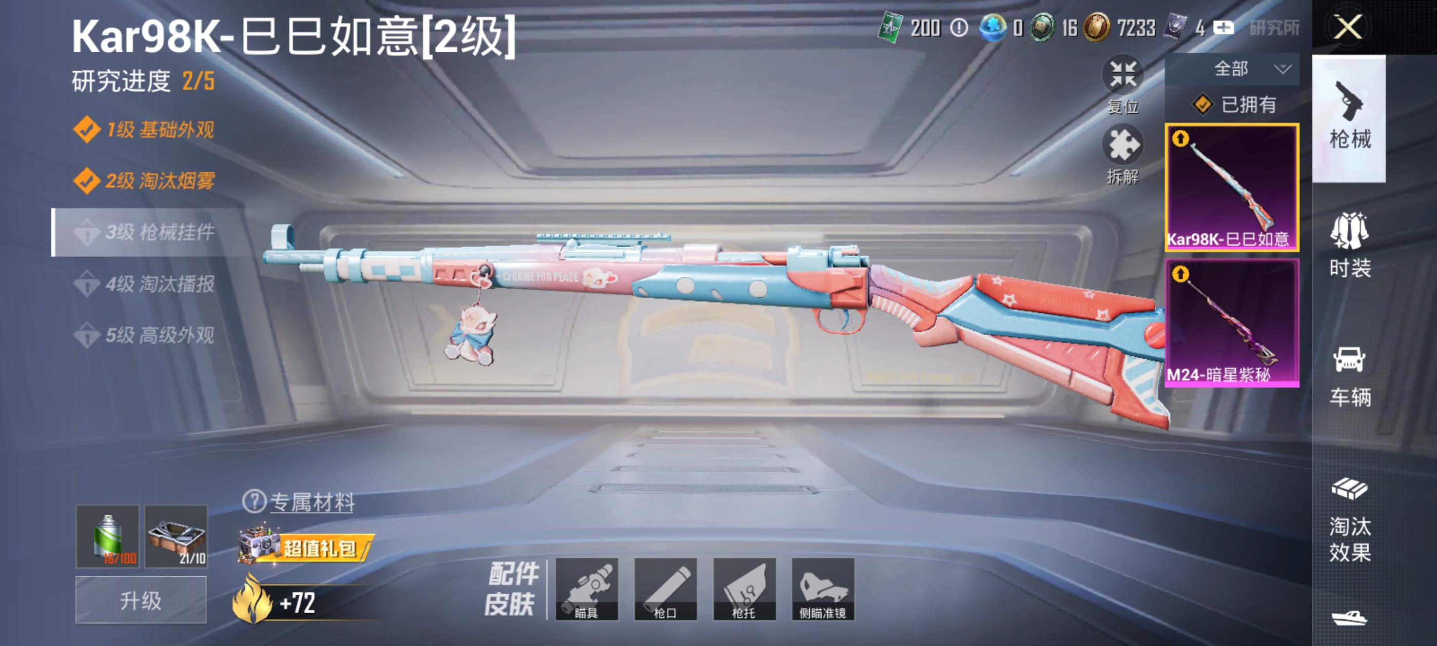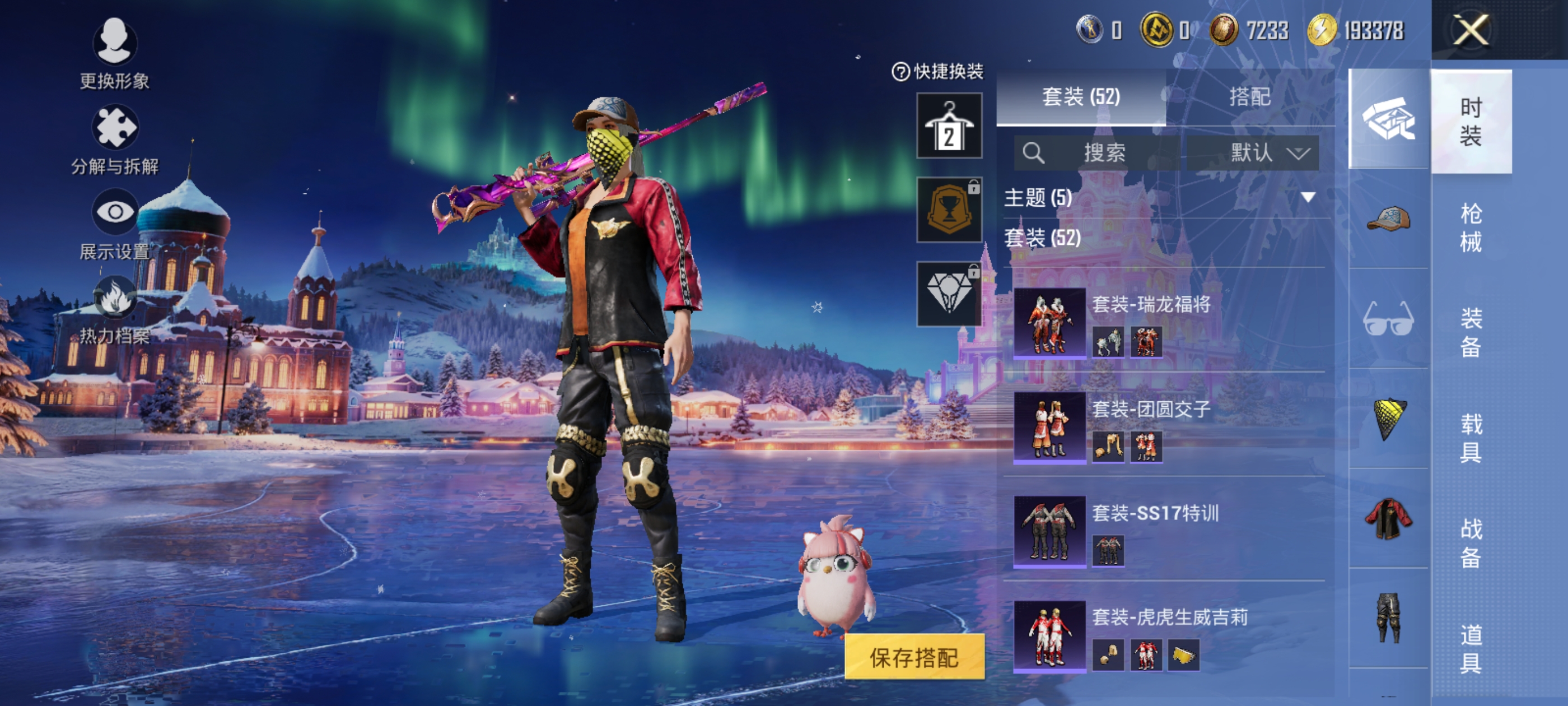 【52套装 72呛皮 2特效 s1赛事上衣 金羽特工素材号】安卓q-1稀有2特效呛6热门52套装72呛皮 20173热力值 6印记 历史超级王牌9星 【1稀有】 s1赛事外套 【2特效呛】 kar98k-巳巳如意 2级 m24-暗星紫秘 4级 【6热门】 鹰眼刺客 金羽特工 团圆交子 瑞龙福将 m762-奇异狩猎者 m762-瑞龙福将 天之羽翼降落伞 kar98k-巳巳如意 m24-暗星紫