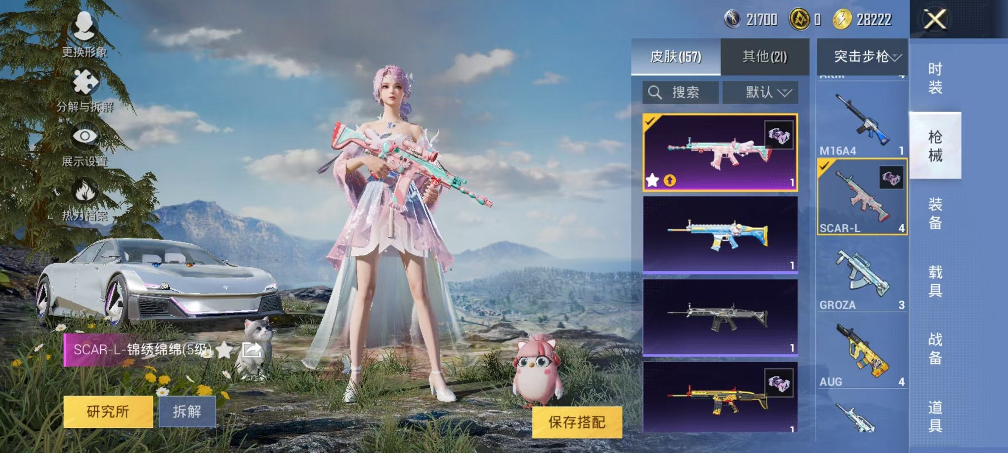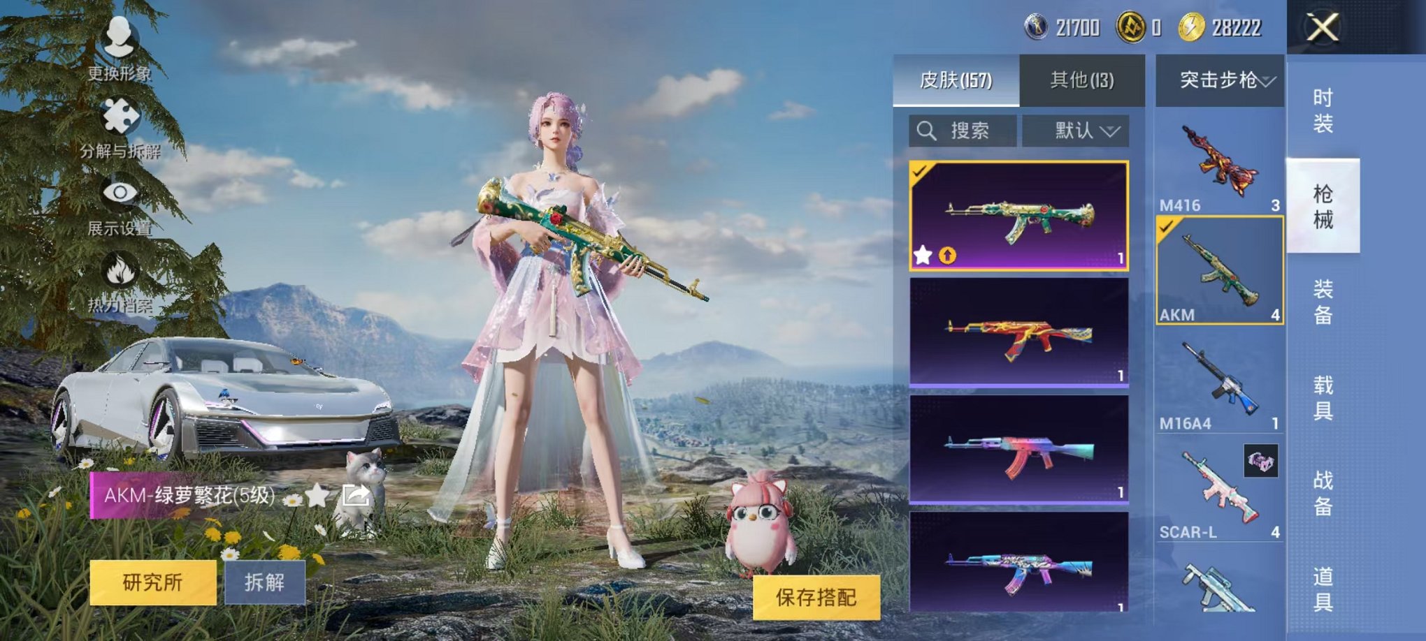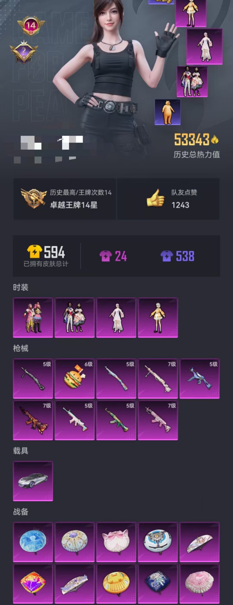 【金靴子3满级特效4粉装9特效呛1载具可秒换绑】 安卓q区-53343热力值-14印记-117套装-157呛皮 【1载具】 星河领航磐石银【1稀有】 派对舞王【4粉装】 缤纷油彩(猪脸妹) 呆萌星弥 角色-烟云彩露 星穹咏叹调【9特效呛】 scar-l-锦绣绵绵5级 m762-甜蜜誓约7级 m416-风花雪月7级 akm-绿萝繁花5级 破片手留单-热量炸弹