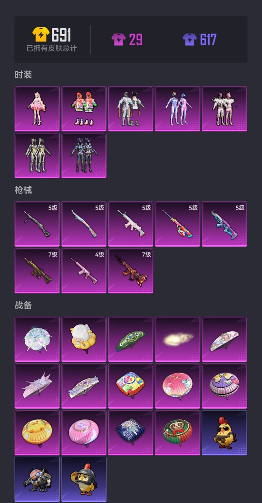 0载具-139套装-199呛皮-【梦幻火箭绚金战神满级五爪金龙风花雪月8特效呛7粉装素材号 秒换绑不用等】 苹果q区-63443热力值-13印记-139套装-199呛皮 【7粉装】 梦幻火箭 绚金战神 炫光之旅 海渊国主 智能音符 苍蓝魅影 角色-樱桃泡泡【8特效呛】 m416-五爪金龙7级 m416-风花雪月7级 akm-梦之光华5级 amr-炫光之旅5级 scar-l-锦绣绵绵5级 s
