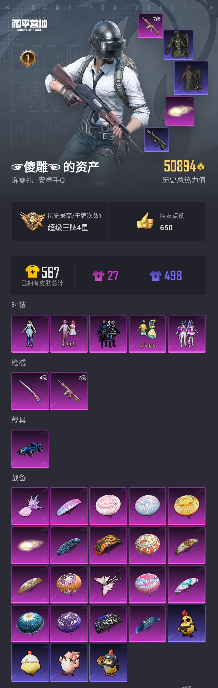 【和平精英】【lyhp17434】5粉装2特效呛1载具 彩虹糖 奇异 满级恋语m4 蓝龙骨 5粉装,2特效呛,1载具,历史最高段位:超级王牌4星 王牌印记1次 热力值:50894,115套装,157呛械,183装备,88战备;套装:套装-天使彩虹糖,套装-极致幻想,套装-香水柠檬,套装-暗夜玫瑰,角色-异瞳寒姬,套装-黄色运动,套装-黄色伏地魔,套装-白色伏地魔,套装-黑色伏地魔,套装-冰川格斗者,套装-竞技名士,套装-湖蓝色名流,套装-猛禽,套装-长空猛禽,套装-竞技勇士朋克,套装-蓝色守护者,套装-旭日情侣,套装-六六大吉,套装-冷焰舞者,套装-灼焰舞者,套装-特战装甲,套装-战地督导,套装-灰色格斗者,套装-滨海假日,套装-冰冻风暴,套装-蓝彩潮人,套装-魅力单车,套装-绮丽涂鸦,套装-野性战心,套装-风行保卫者,套装-雪山精英,套装-幻世战舞者,套装-奇异狩猎者,套装-甜蜜熊情侣,套装-缤纷果语,套装-龙魂突击队,套装-冰川特警,套装-海上生明月,套装-麻辣教官,套装-破蛋小黄鸡,套装-疯狂小兔子,套装-舞夜骑士,套装-机械征服者,套装-裁决冥王,套装-北国孤狼,套装-ss6特训,套装-ss7特训,套装-精神漫游,套装-暗夜契约,套装-智慧之神,套装-软萌银虎,套装-萌黄之夏,套装-海洋之心,套装-风华少年志,套装-神秘舞者,套装-薄荷蓝莓,套装-探宝勇士,套装-牛气满满,套装-原初圣火,套装-逆风勇士,套装-萌趣颜团子,套装-特种颜团子,套装-战术大师,套装-ss12特训,套装-牛气冲天,套装-镭射皇者,套装-银白舞王,套装-耀粉歌者,套装-迅捷之星,套装-治愈之星,套装-科技之星,套装-飞行日记,套装-ss13特训,套装-双棍侠客,套装-ss14特训,套装-电音精灵,套装-ss15特训,套装-ss16特训,套装-暴风机械师,套装-时空追击者,套装-ss17特训,套装-醒狮腾龙,套装-瑞龙福将,套装-团圆交子,套装-福星高照,套装-遗落祭司,套装-虎虎生威吉莉,套装-音速流光,套装-ss20特训,套装-猎梦纪元,套装-甜心亚梦,套装-虚音幻奏,套装-ss21特训,套装-萌趣咩咩,套装-娇憨猪猪,套装-荷畔雨呱,套装-玉兔迎春,套装-ss22特训,套装-田园牧歌,套装-轻风白浪,套装-光之冒险,套装-绯格组合,套装-ss23特训,套装-柠萌假日,套装-ss24特训,套装-龟仙人,套装-ss25特训,套装-龙的传人,套装-ss27特训,角色-怀庆长公主,套装-ss31特训,套装-智谋强哥,套装-巳巳如意,套装-ss35特训,套装-ss36特训;呛皮:蜜獾-娇憨猪猪,蜜獾-垂柳戏鸭,蜜獾-天降萌叽,蜜獾-精灵梦叶罗丽,g36c-不夜海上花,g36c-时空追击者,g36c-乌木金纹,akm-灼热熔岩,akm-玉龙,akm-破晓战魂,akm-夜灯,akm-彩虹符号,akm-虎虎生威,akm-龙的传人,m762-奇异狩猎者,m762-牛气冲天,m762-镭射皇者,m762-烈焰拳霸,m762-瑞龙福将,m762-天降萌叽,m762-乌木金纹,7级m416-心之恋语,m416-绯红前夜,m416-糯团青竹,m416-乌木金纹,groza-生命誓言,groza-治愈之星,groza-彩虹符号,groza-田园牧歌,groza-乌木金纹,ac-val-甜心亚梦,ac-val-乌木金纹,ac-val-天降萌叽,scar-l-炫彩节奏,scar-l-青丘仙客,scar-l-玉兔迎春,scar-l-乌木金纹,q-神秘黑猫,q-潮汐统领,q-原初圣火,q-彩虹符号,m16a4-夜灯,m16a4-甜心亚梦,m16a4-幻世战舞者,aug-pec最牛战神,aug-天降萌叽,aug-乌木金纹,mk47-乌木金纹,m24-影袭,m24-奇异狩猎者,m24-冰封烈焰,m24-治愈之星,m24-乌木金纹,awm-不夜海上花,awm-垂柳戏鸭,awm-音爆索尼克,awm-飒粉甜心,awm-乌木金纹,4级kar98k-巳巳如意,kar98k-影袭,kar98k-古堡领主,kar98k-梦幻火箭,kar98k-彩虹符号,kar98k-电玩视界,kar98k-飞驰魅影,kar98k-乌木金纹,莫辛纳甘-乌木金纹,win94-机械英豪,win94-瑞龙福将,m200-乌木金纹,vss-镭射皇者,vss-碧影闪光,vss-田园牧歌,vss-乌木金纹,mk14-童趣迷兔,mk14-治愈之星,mk14-乌木金纹,sks-心之恋语,sks-时空追击者,mini14-穿刺龙虾,mini14-金鼠迎春,mini14-原初圣火,mini14-龙宫之主,slr-pec最牛战神,slr-四圣焕新,slr-娇憨猪猪,qbu-不夜海上花,uzi-红色方程式,uzi-古堡领主,uzi-众神之王,uzi-炫彩节奏,uzi-娇憨猪猪,ump45-生命誓言,ump45-时空追击者,vect-生命誓言,vect-彩虹符号,vect-治愈之星,vect-田园牧歌,vect-乌木金纹,汤姆逊-天降萌叽,汤姆逊-乌木金纹,mp5k-甜蜜誓约,mp5k-众神之王,p90-飞驰魅影,p90-玩趣呆呆,p90-巳巳如意,p90-乌木金纹,野牛-机械英豪,s686-不夜海上花,s686-葫芦兄弟,s686-巳巳如意,dbs-时空追击者,dbs-甜心亚梦,dbs-彩虹符号,dbs-乌木金纹,s1897-神秘黑猫,s1897-镭射皇者,s1897-炫彩节奏,s1897-乌木金纹,s12k-夜灯,s12k-机械英豪,s12k-瑞龙福将,s12k-娇憨猪猪,s12k-幻世战舞者,s12k-极意拳锋,s12k-乌木金纹,spas-12-田园牧歌,m249-破晓战魂,m249-镭射皇者,m249-乌木金纹,mg3-瑞龙福将,mg3-幻世战舞者,mg3-乌木金纹,dp-28-原初圣火,dp-28-甜心亚梦,dp-28-乌木金纹,短管霰弹-竹节火铳,p18c-原初圣火,平底锅-众神之王,平底锅-不夜海上花,平底锅-机械英豪,平底锅-原初圣火,平底锅-镭射皇者,平底锅-飞行日记,平底锅-治愈之星,平底锅-时空追击者,平底锅-瑞龙福将,平底锅-飞驰魅影,平底锅-甜心亚梦,平底锅-娇憨猪猪,平底锅-田园牧歌,平底锅-光之冒险,撬棍-幻世战舞者,战术弩-江南烟雨,破片手留单-萌趣颜团子,破片手留单-巳巳如意,破片手留单-爆破雪人;载具:合金龙骨(蓝);降落伞:心之恋语飞行翼,齐天大圣飞行器,炫彩糖果飞行器; 详情看图