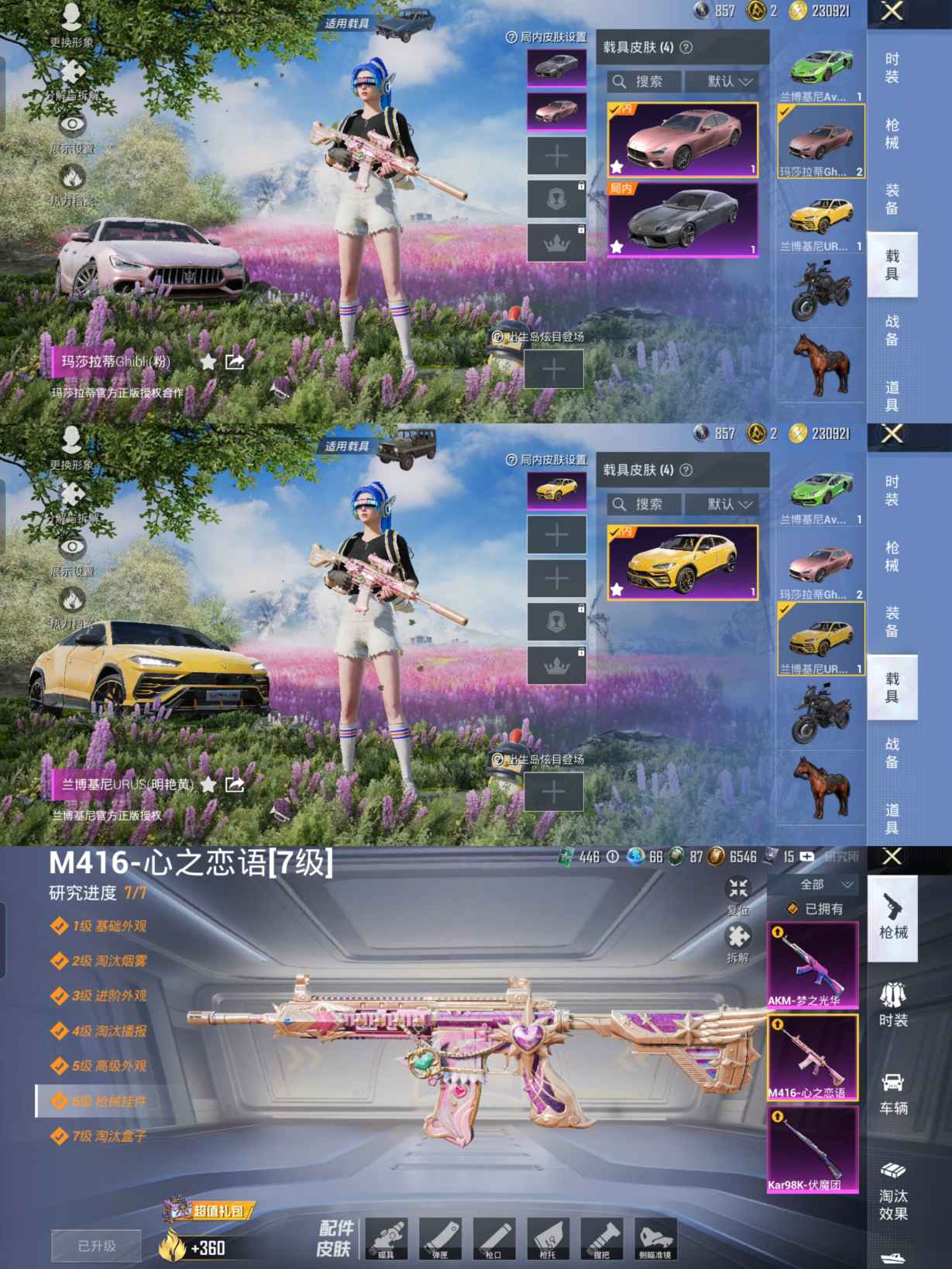 4载具-160套装-199呛皮-【身法号4载具8粉装3特效 梦幻火箭 放客神游 浪漫天命 小白龙 蓝螳螂 小黄鸭 罗小黑 蝶舞迷情】安卓q-2稀有4载具8粉装3特效呛21热门160套装199呛皮 68277热力值 6印记 历史超级王牌9星 【2稀有】 akm-百万伏特 浪漫天命 【4载具】 玛莎拉蒂粉色 兰博轿车灰色 兰博suv黄色 兰博svj绿色 【8粉装】 梦幻火箭 蝶舞迷情 幻彩电音 放客神游 新星烈龙