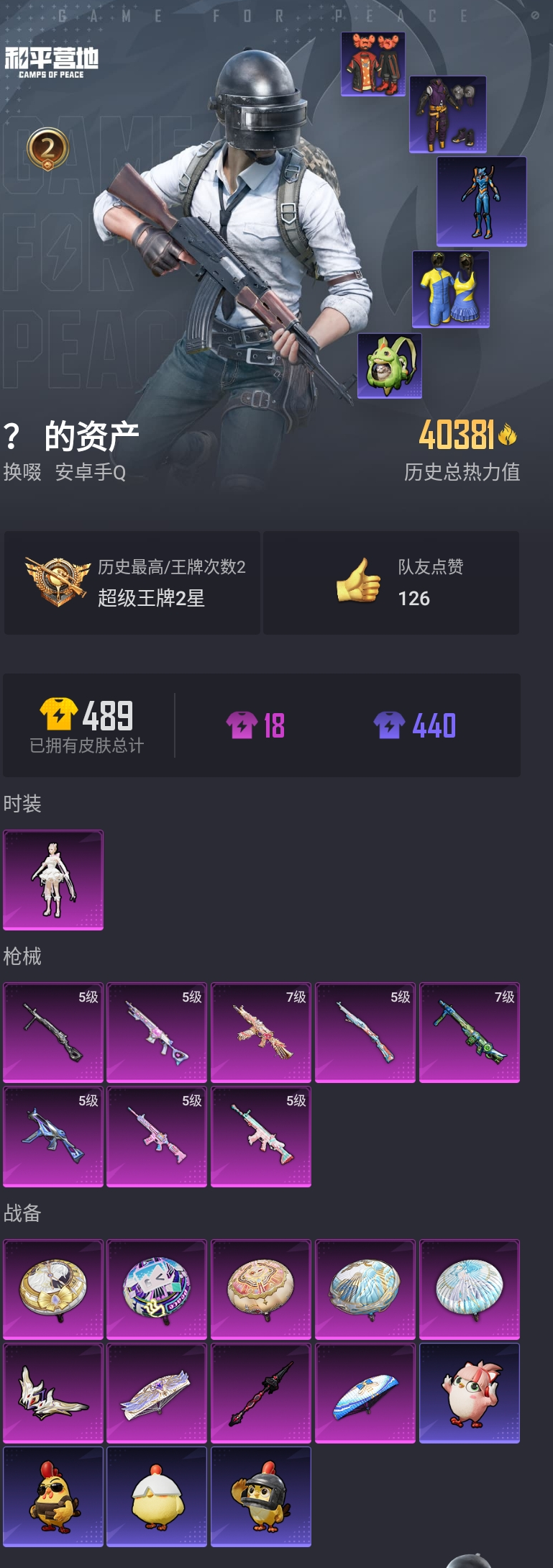 【和平精英】【lyhp17786】1粉装8特效呛 千金淑猫 满级aks-74星穹咏叹调 满级mg3突变脉冲 1粉装,8特效呛,0载具,历史最高段位:超级王牌2星 王牌印记2次 热力值:40381,89套装,142呛械,155装备,84战备;套装:角色-千金淑猫,套装-猎鹰,套装-青年教官,套装-蓝色运动,套装-白色伏地魔,套装-黑色伏地魔,套装-竞技名士,套装-湖蓝色名流,套装-长空猛禽,套装-旭日情侣,套装-灼焰舞者,套装-特战装甲,套装-战地督导,套装-活力之心,套装-燃烧卡路里,套装-鹰眼刺客,套装-冰冻风暴,套装-魅力单车,套装-绮丽涂鸦,套装-超能勇士,套装-荣耀,套装-呆萌铁蟹,套装-夏日倾情,套装-青涩时光,套装-缤纷果语,套装-滨海厨神,套装-龙魂突击队,套装-元素星魂,套装-忍者信条,套装-霓虹街区,套装-战术大师,套装-飞行日记,套装-热情海星,套装-纯真浪花,套装-ss22特训,套装-绯格组合,套装-ss23特训,套装-神气柴柴,套装-懵萌河马,套装-王牌教练,套装-ss24特训,套装-龟仙人,套装-ss25特训,套装-惊鸿侠骨,套装-锦衣飞扬,套装-香桃花海,套装-果汁能量,套装-龙的传人,套装-ss26特训,套装-快闪甜心,套装-春光漫游,套装-空岛之星,套装-童真绒兔,套装-焰鹰斗篷,套装-幽夜迷踪,套装-幻羽潜行,套装-ss27特训,套装-恋语绒绒,套装-老实芭蕉,套装-ss28特训,角色-mark.06,套装-街头风暴,套装-海盐绵绵冰,套装-蝶变,套装-ss29特训,套装-雏菊兔兔,套装-萝兰蝴蝶,角色-紫俏灵猫,套装-异域银装,套装-星途旅人,套装-ss30特训,角色-夜瞳黯灵,套装-ss31特训,套装-智谋强哥,套装-ss33特训,套装-云朵鹅,套装-巳巳如意,套装-ss32特训,套装-顶瓜瓜,套装-雪绒豹,套装-大橘大利,套装-霓虹热舞,套装-元气之梦,套装-ss34特训,套装-朱霞炽焰,套装-凌霄紫焰,套装-ss35特训,套装-ss36特训,套装-萌鸡速递;呛皮:g36c-懵萌河马,aug-天降萌叽,aug-闲梦青缨,aug-异域银装,aug-紫晶流影,m762-绯红前夜,m762-雏菊兔兔,m762-云朵鹅,akm-霓虹街区,akm-涂鸦街区,akm-彩虹符号,akm-龙的传人,akm-霓彩脉冲,5级scar-l-锦绣绵绵,scar-l-红色方程式,scar-l-星途旅人,scar-l-海盐豹豹,scar-l-冷漠罗丽,ac-val-乌木金纹,ac-val-快闪甜心,famas-霓彩脉冲,famas-乌木金纹,groza-懵萌河马,m16a4-冰河战士,蜜獾-天降萌叽,蜜獾-精灵梦叶罗丽,蜜獾-绯穹魔姬,蜜獾-鸡智如我,蜜獾-乌木金纹,5级m416-电玩时刻,m416-蓝色火焰,m416-绯红前夜,m416-糯团青竹,q-未来歌姬,q-纯真浪花,arx-凌霄紫焰,win94-乌木金纹,莫辛纳甘-乌木金纹,莫辛纳甘-懵萌河马,awm-天降萌叽,awm-圣堂之誓,awm-焰鹰斗篷,awm-纯真浪花,svd-云朵鹅,amr-鸡智如我,amr-乌木金纹,5级kar98k-巳巳如意,kar98k-红色方程式,kar98k-顶峰精英,m200-惊鸿侠骨,m200-乌木金纹,slr-彩虹符号,slr-金丰海韵,slr-霓彩脉冲,m417-惊鸿侠骨,m417-玩趣呆呆,mini14-香桃花海,mini14-雏菊兔兔,5级mk14-甜梦熊击,mk14-冰河战士,mk14-薄荷星砂,mk20-h-快闪甜心,mk20-h-星途旅人,mk20-h-狂鲨锋刃,mk20-h-乌木金纹,vss-彩虹符号,vss-香桃花海,sks-炫彩节奏,mk12-乌木金纹,5级ump45-量子极限,ump45-蓝色火焰,ump45-炫光之旅,ump45-海盐豹豹,p90-快闪甜心,p90-玩趣呆呆,p90-巳巳如意,p90-乌木金纹,uzi-影袭,uzi-天降萌叽,uzi-冰河战士,uzi-啾咪啾咪,uzi-炫彩糖果,野牛-雏菊兔兔,mp5k-乌木金纹,js9-凌霄紫焰,vect-彩虹符号,vect-焰鹰斗篷,7级aks-74u-星穹咏叹调,aks-74u-乌木金纹,汤姆逊-天降萌叽,汤姆逊-纯真浪花,dbs-彩虹符号,dbs-焰鹰斗篷,dbs-幻彩电音,dbs-月影灵韵,dbs-乌木金纹,s686-生命誓言,s686-巳巳如意,aa12-g-纯真浪花,s1897-炫彩节奏,s1897-糯团青竹,spas-12-狂鲨锋刃,spas-12-云朵鹅,spas-12-乌木金纹,s12k-玩趣呆呆,mg-36-凌霄紫焰,pkm-懵萌河马,pkm-啾咪啾咪,m249-彩虹符号,m249-绯穹魔姬,7级mg3-突变脉冲,mg3-乌木金纹,mg3-惊鸿侠骨,5级dp-28-豹影疾电,dp-28-焰鹰斗篷,tmp-9-未来歌姬,tmp-9-江南烟雨,r1895-雏菊兔兔,沙墨之鹦-快闪甜心,沙墨之鹦-云朵鹅,p92-凌霄紫焰,平底锅-懵萌河马,平底锅-惊鸿侠骨,平底锅-快闪甜心,平底锅-空岛之星,平底锅-花傲天,平底锅-焰鹰斗篷,平底锅-纯真浪花,平底锅-雏菊兔兔,平底锅-凌霄紫焰,撬棍-朗基努斯之呛,大砍刀-云朵鹅,破片手留单-呆爆全场,破片手留单-星途旅人,破片手留单-海盐豹豹,破片手留单-拽到爆炸,破片手留单-巳巳如意,爆炸猎弓-惊鸿侠骨,盐雾蛋-咒蚀之裁,盐雾蛋-冰氧夏日,战术弩-江南烟雨,十子怒-异域银装;降落伞:夜幕颂歌飞行器,星空武士飞行器,空岛之星尾迹,异域银装飞行器,顶峰精英尾迹,狂鲨锋刃飞行器,破刃行动尾迹; 详情看图