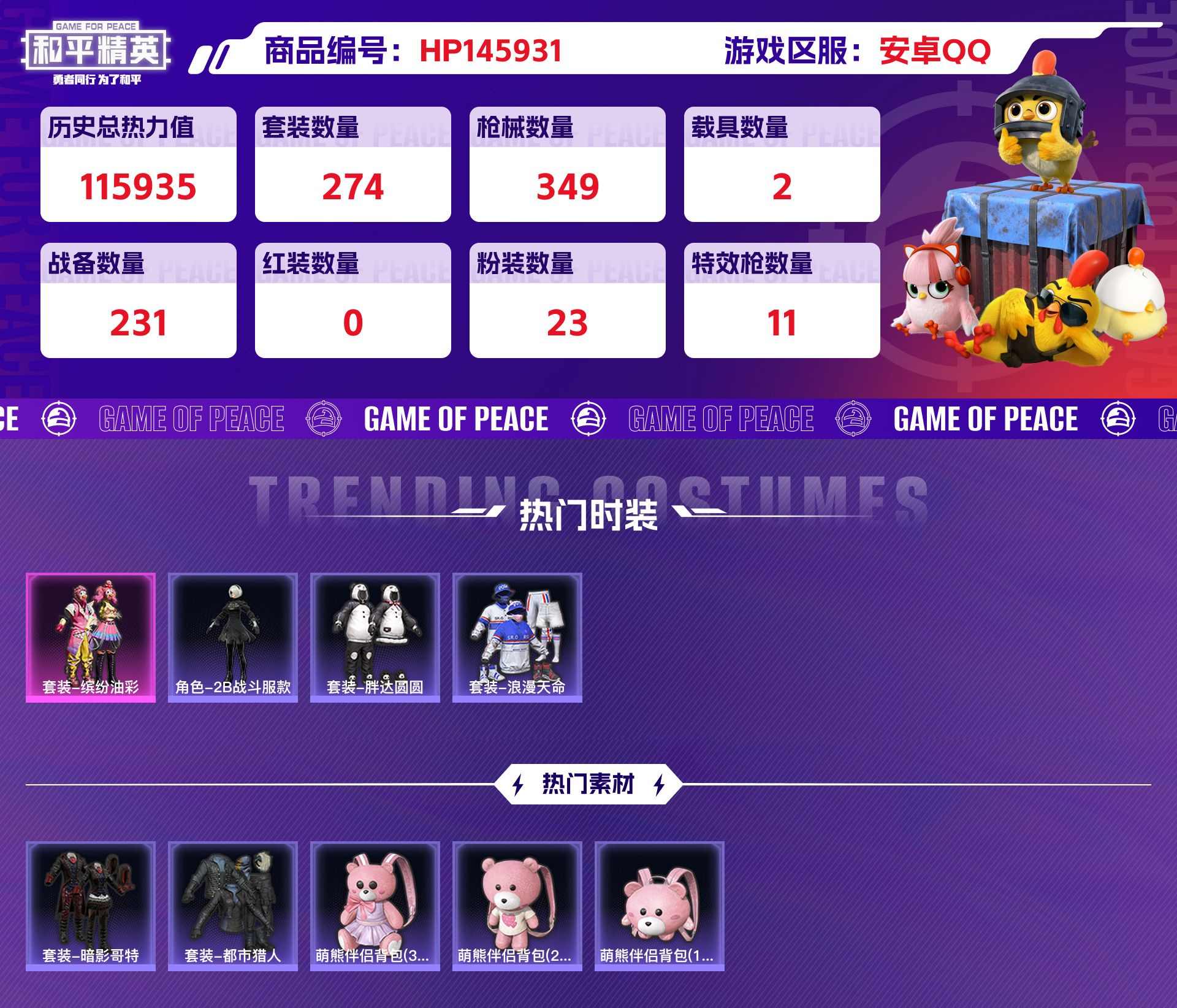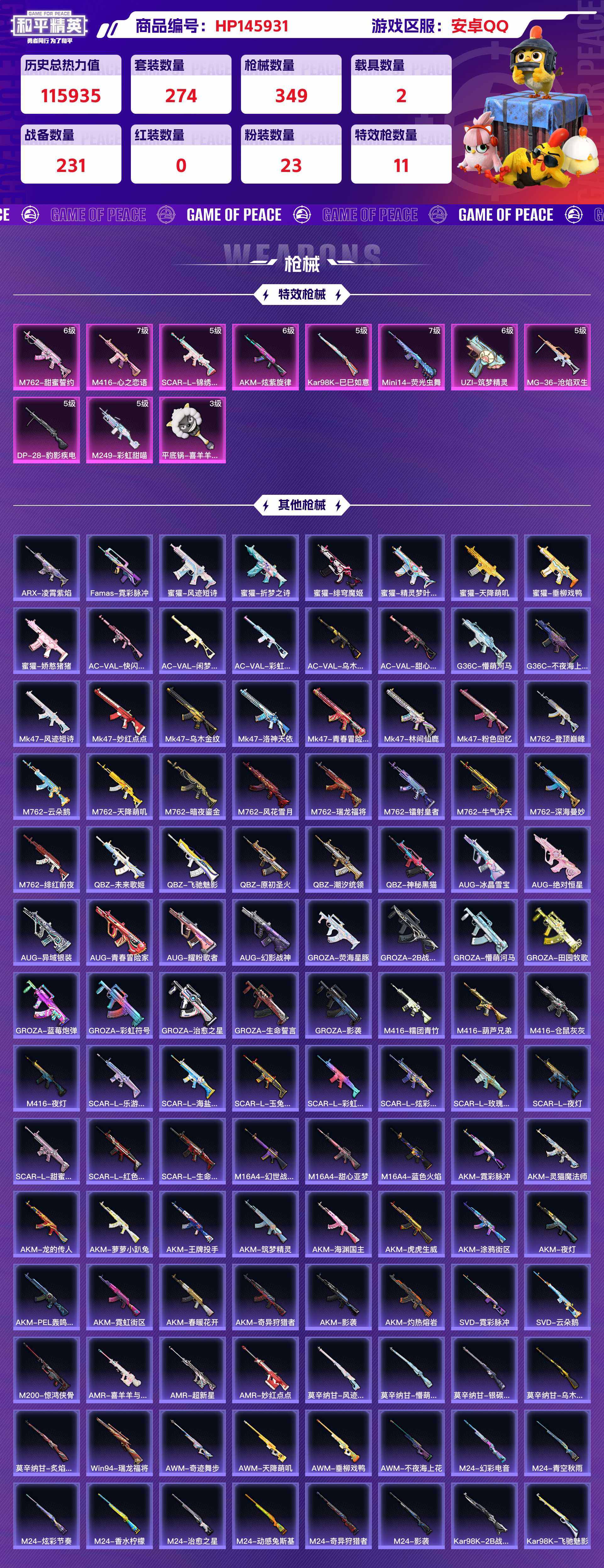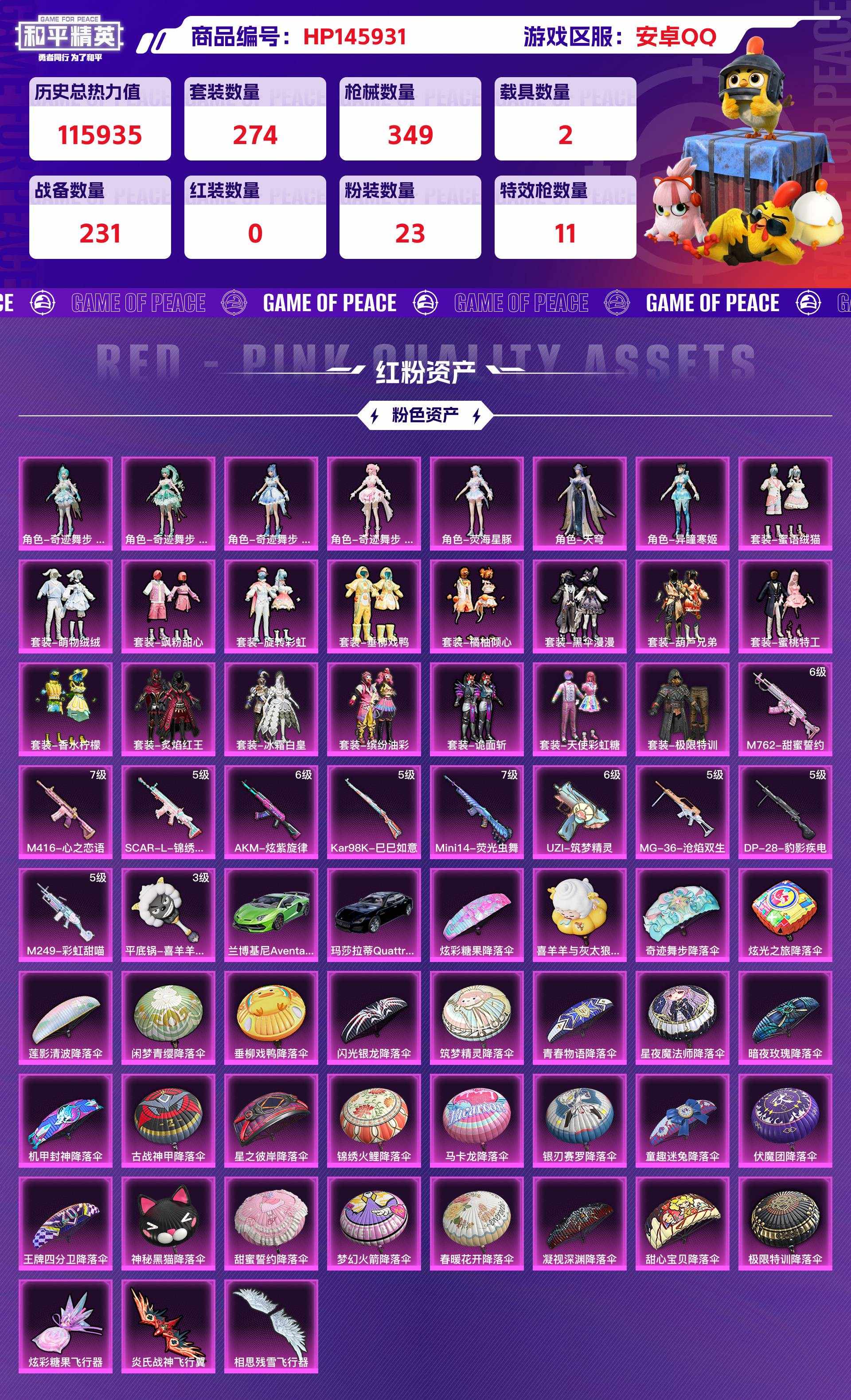 hp145931|精品脱坑号安卓qq 猪妹浪漫天命暗影哥特都市猎人萌熊伴侣3件套23粉装 11粉呛 2载具 2七级(m416-心之恋语mini14-荧光虫舞)