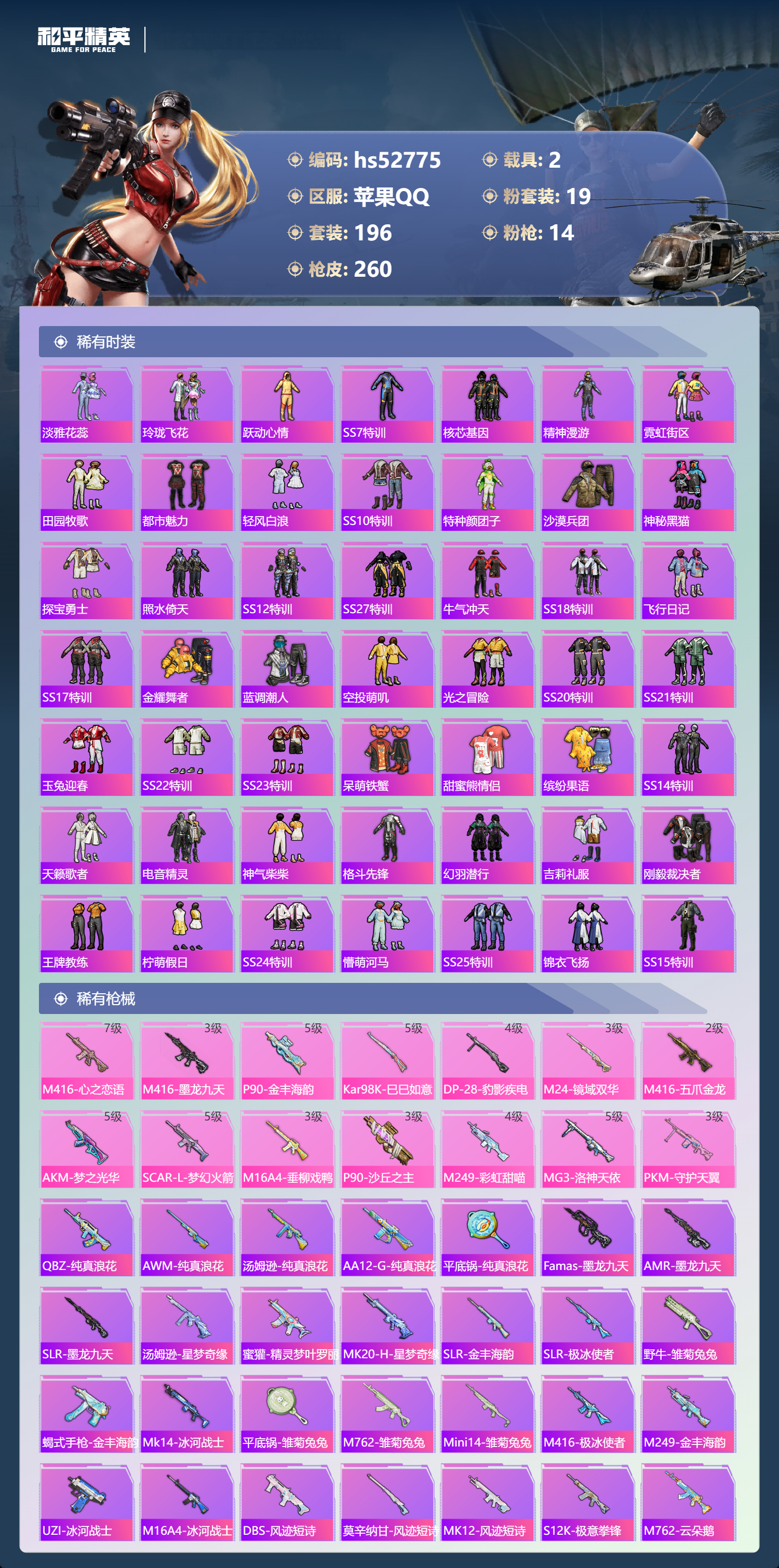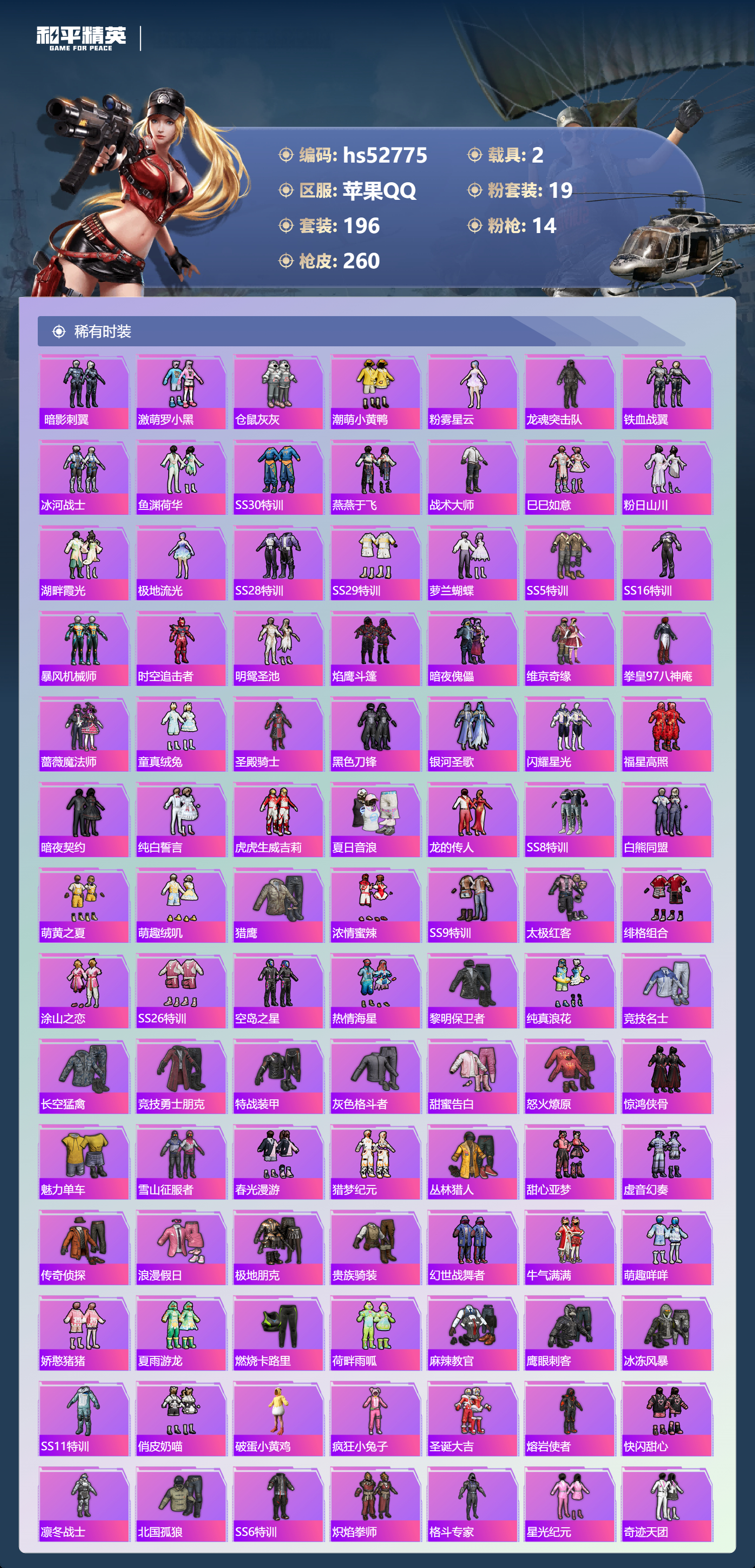 hs52775 苹果手q-12王牌印记-1红装-19粉装-14特效呛-2载具-95008热力值-196套装-260呛皮-2卓越印记【1红装】沙丘之主-图卡盟/3级【19粉装】套装-星夜魔法师角色-2号机款机体服角色-星梦奇缘套装-pel轰鸣竞梦者套装-冰霜白皇套装-暗夜鎏金套装-第五大道套装-暗夜玫瑰套装-蝶舞迷情角色-洛天依套装-霞光圣骑套装-宝贝奶油派套装-彩虹甜喵