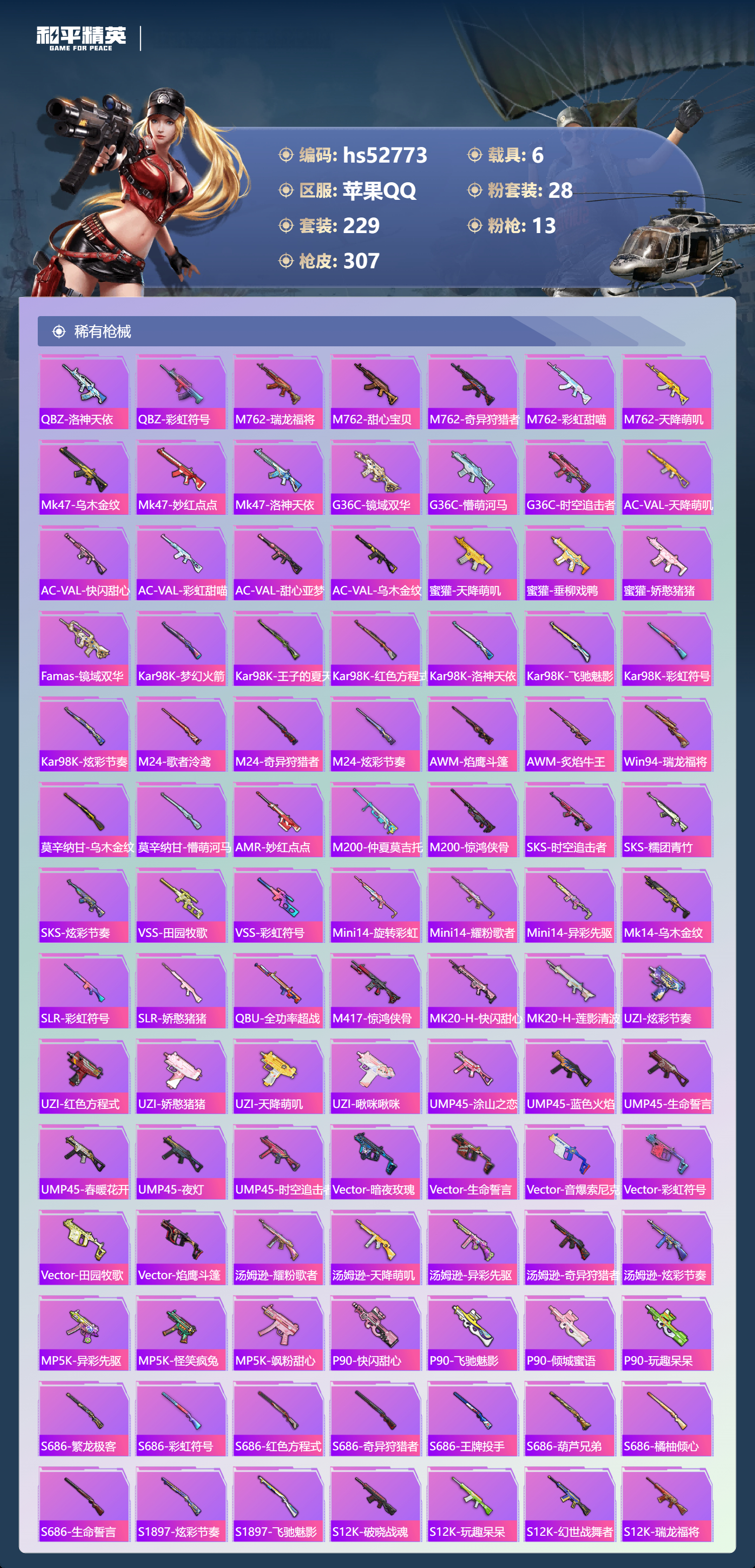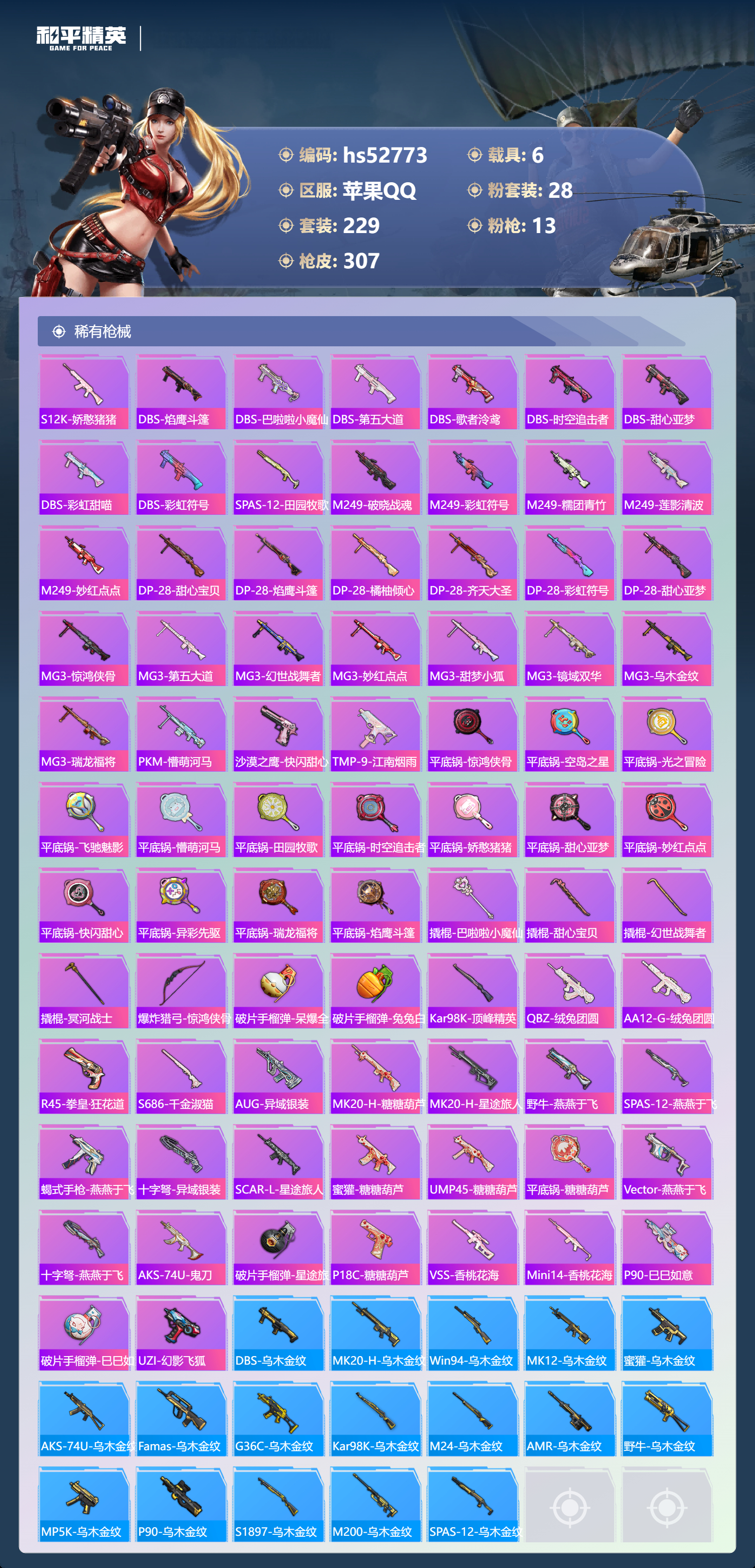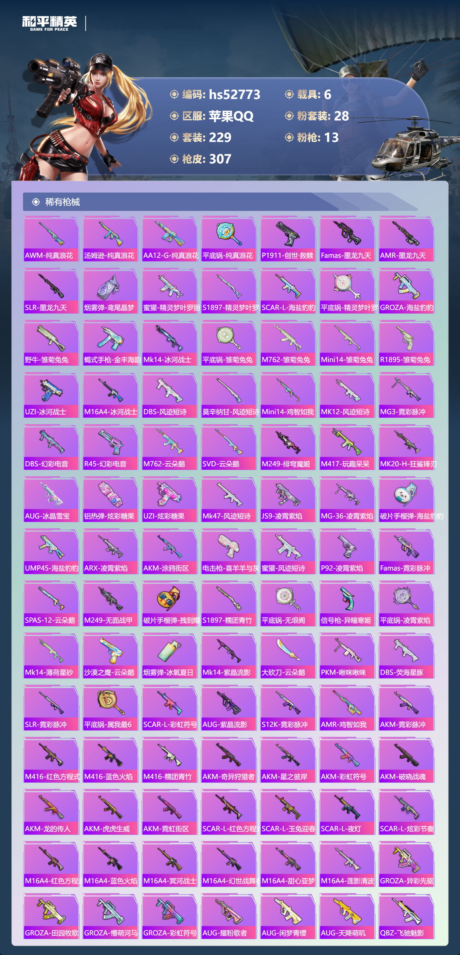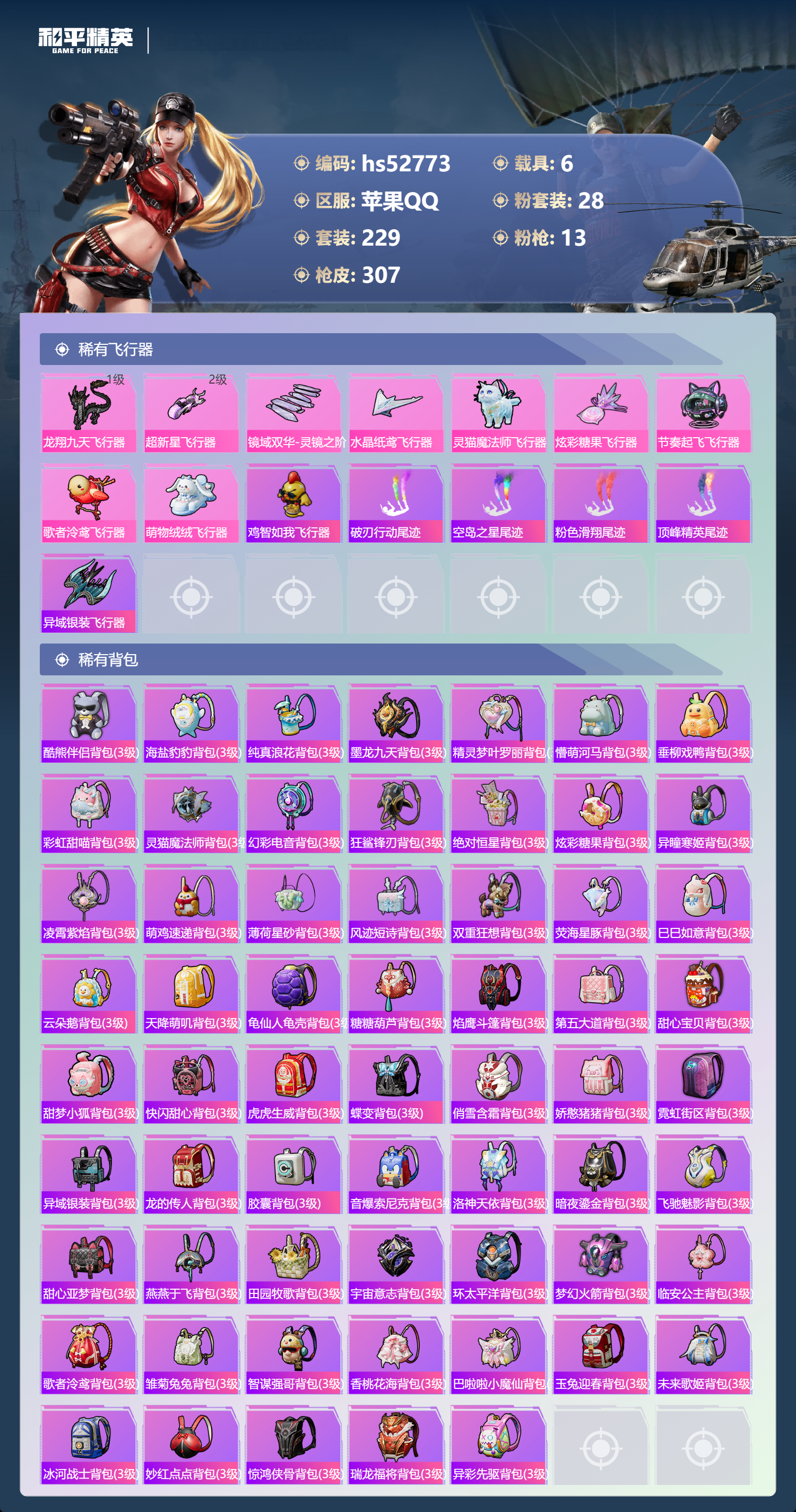 hs52773 苹果手q-19王牌印记-有战神框-1红装-28粉装-13特效呛-6载具-热力值-229套装-307呛皮-11卓越印记-11传奇印记【1红装】墨龙九天-敖渊/3级【28粉装】套装-天使彩虹糖套装-宝贝奶油派角色-美琪角色-白兰星套装-金风银杏套装-海螺星光角色-烟云彩露角色-零号机款机体服角色-美雪角色-蔷薇星套装-心之回忆套装-缤纷油彩角色-