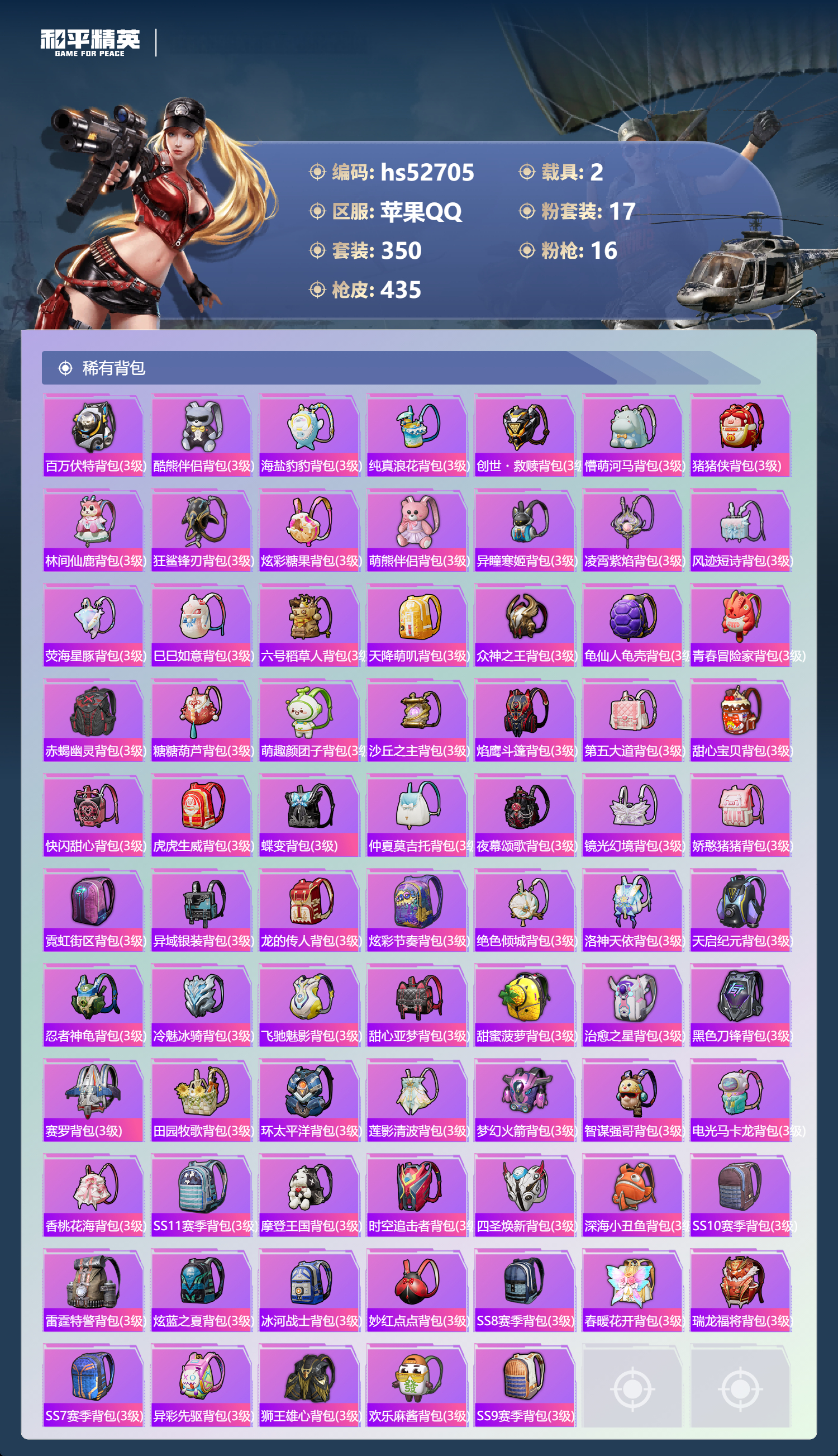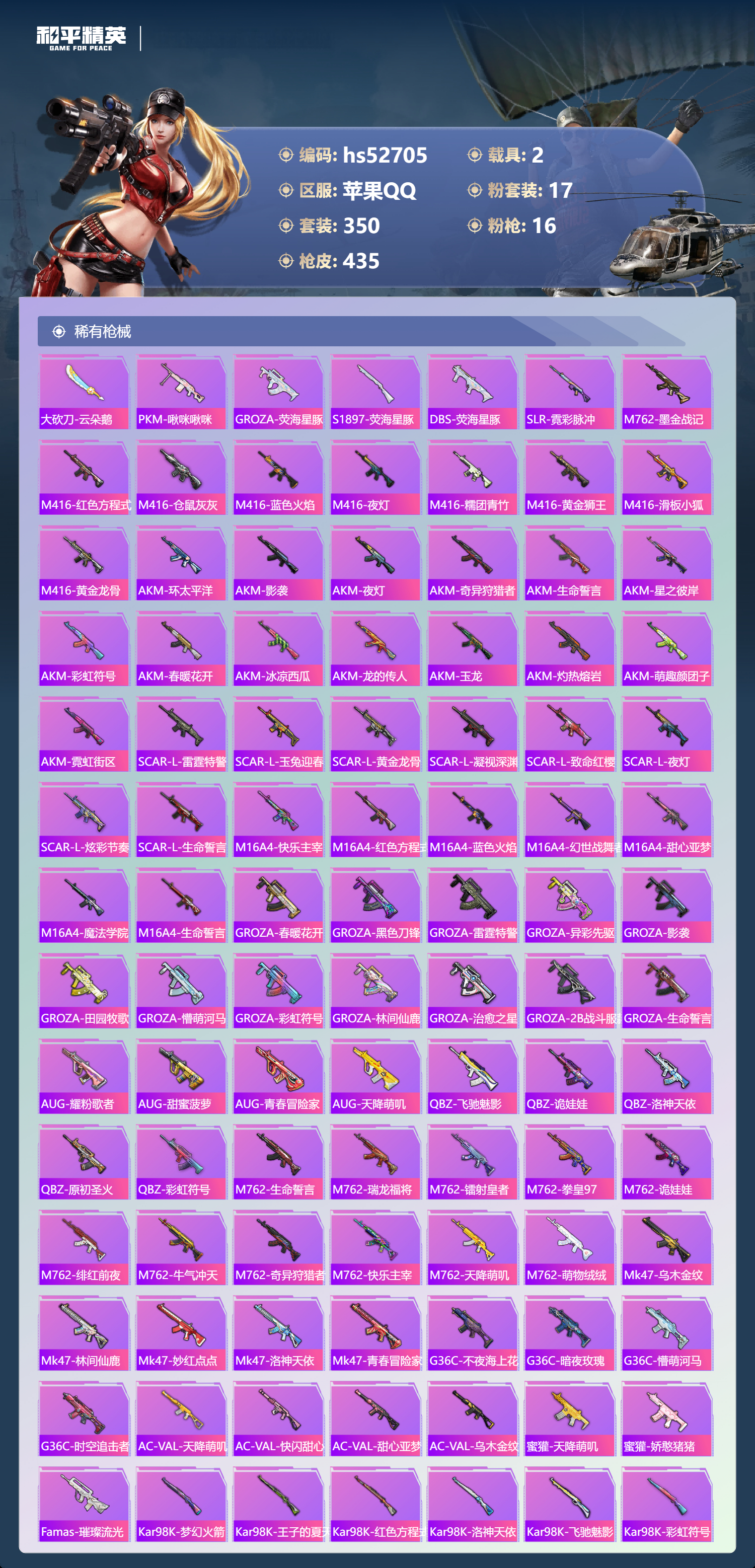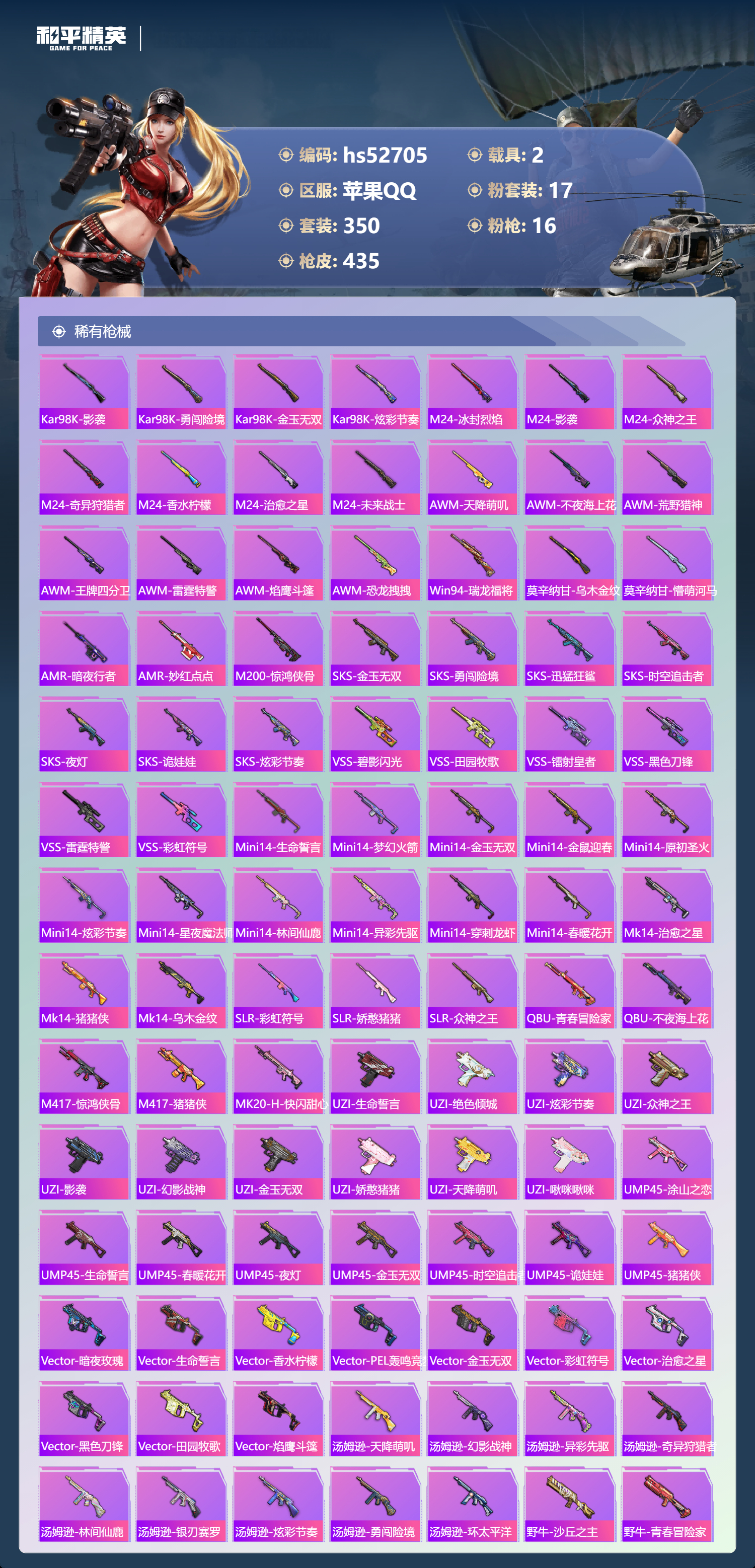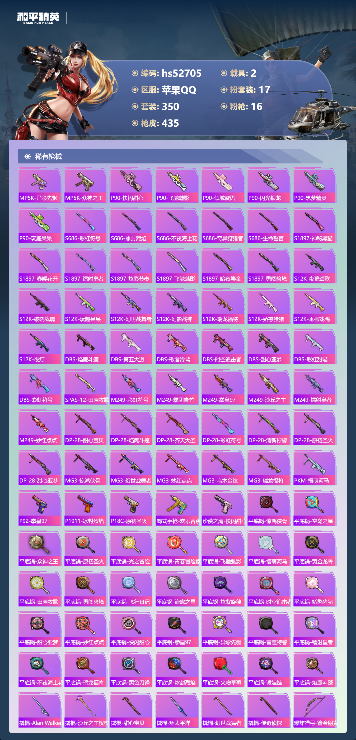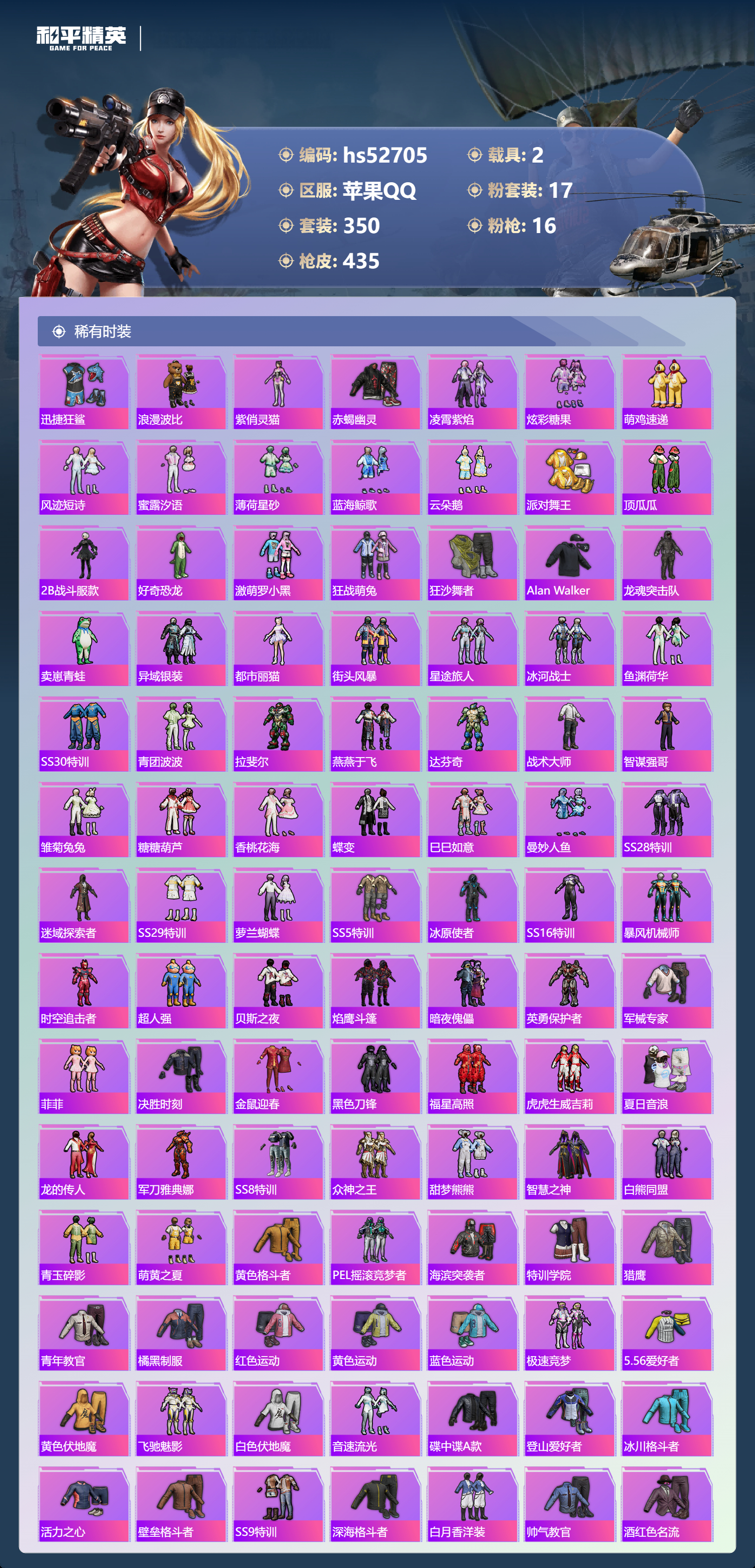 hs52705 苹果手q-21王牌印记-有战神框-1红装-17粉装-16特效呛-2载具-热力值-350套装-435呛皮-5卓越印记-2传奇印记【1红装】沙丘之主-图卡盟/2级【17粉装】套装-缤纷油彩套装-蝶舞迷情套装-彩虹鹿灵套装-智能音符角色-复仇流浪者套装-葫芦兄弟套装-音爆索尼克套装-极限特训角色-洛天依套装-天使彩虹糖套装-山涧鹿灵套装-花间之火角