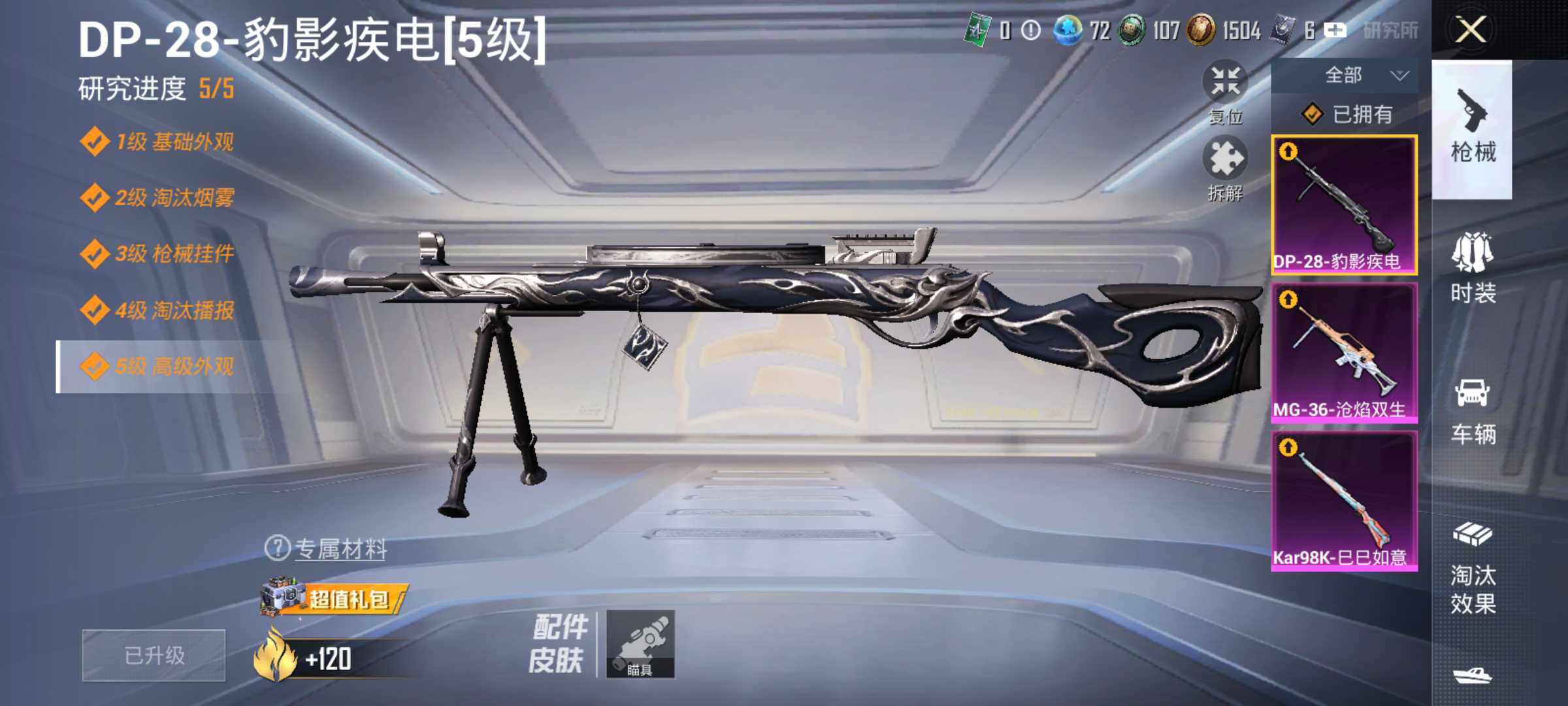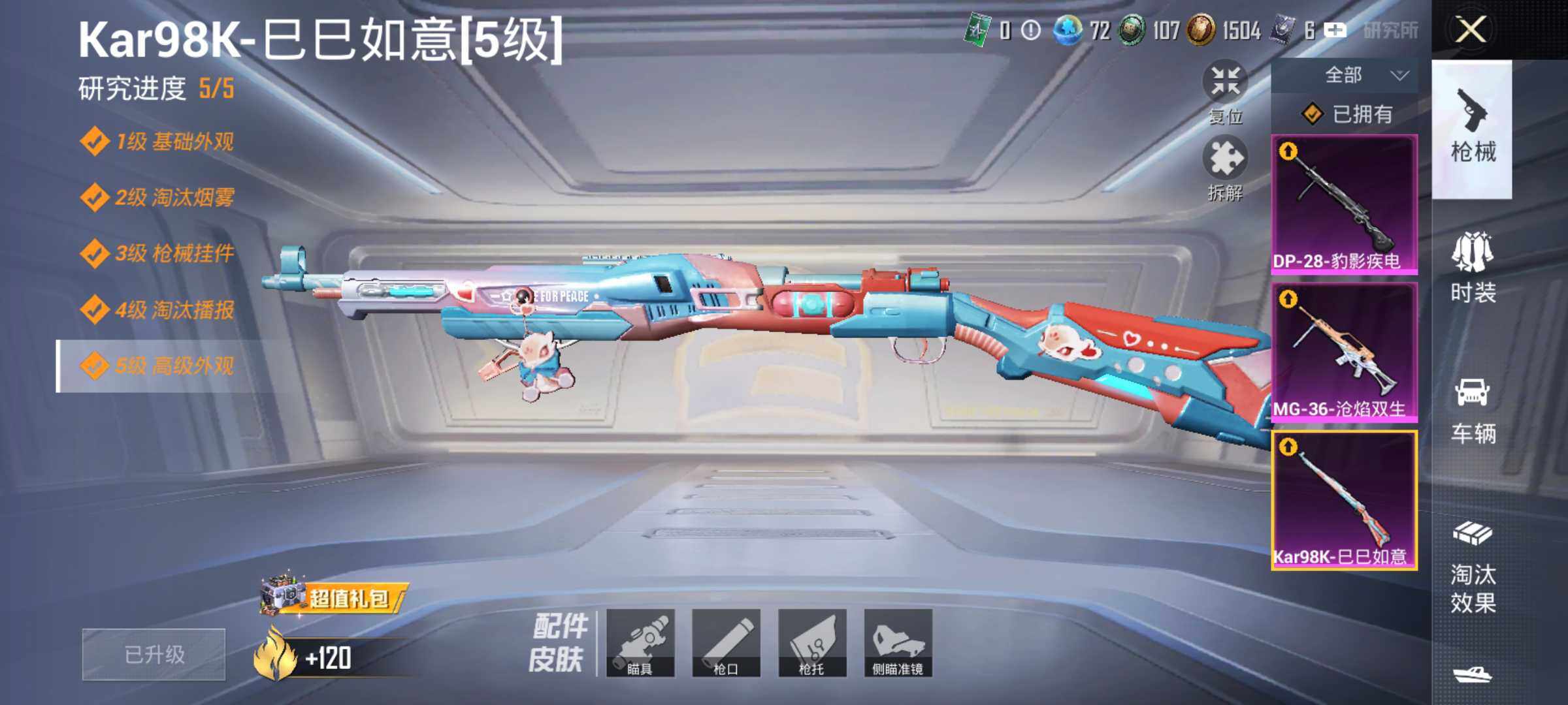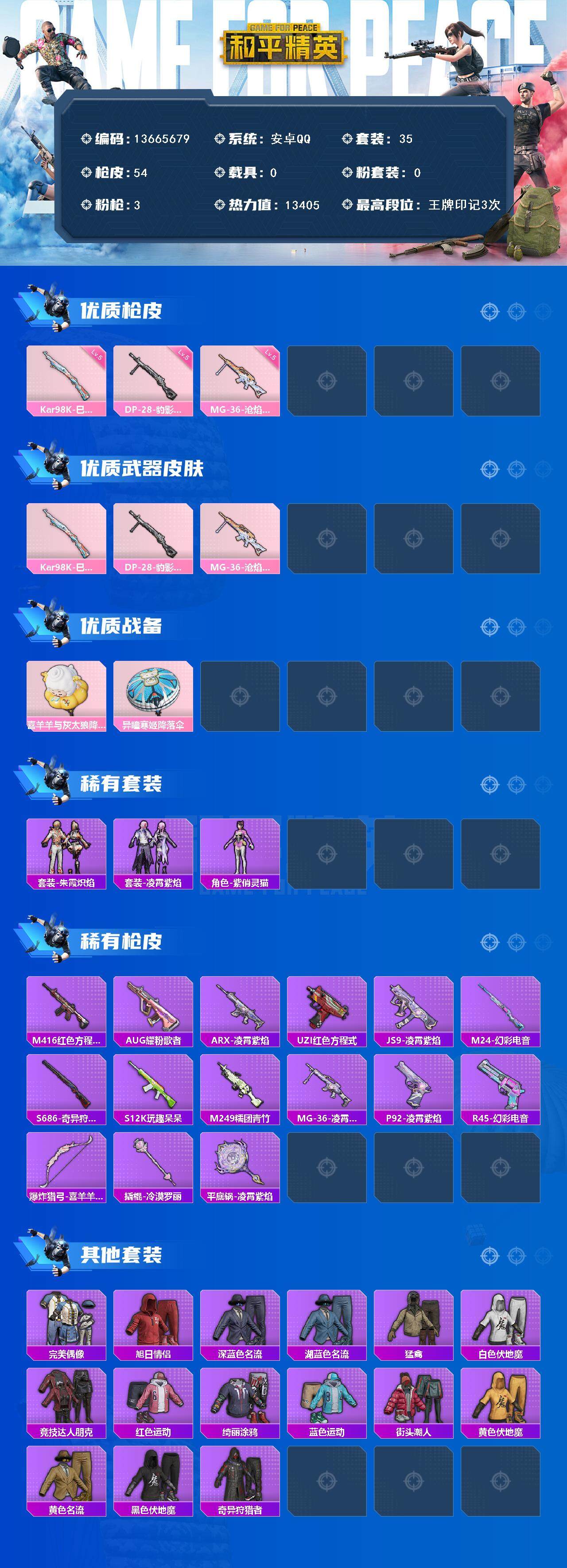 6102-3特效呛-0载具-1粉色飞行器-13405热力值-3王牌印记-35套装-54呛皮 【热门品类】:套装-奇异狩猎者 【粉色呛皮等级】:kar98k-巳巳如意五级,dp-28-豹影疾电五级,mg-36-沧焰双生五级 【粉色呛皮】:kar98k-巳巳如意,dp-28-豹影疾电,mg-36-沧焰双生 【粉色降落伞】:喜羊羊与灰太狼降落伞,异瞳寒姬降落伞 【稀有套装】:套装-朱