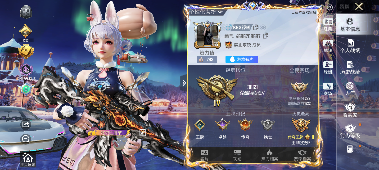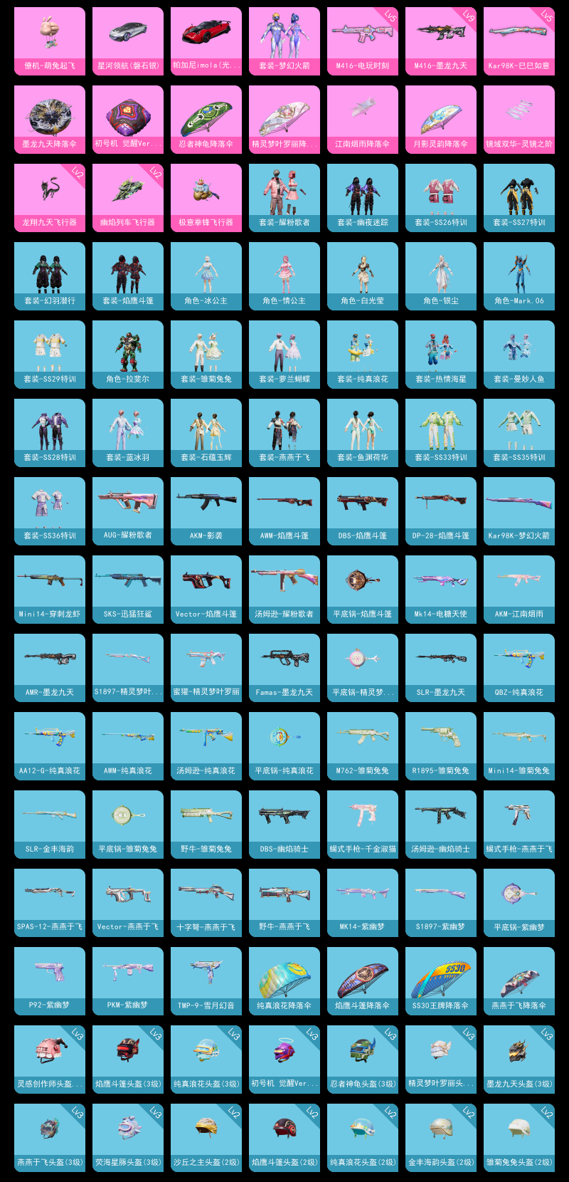 【和平精英】【txhp4764】1粉装,4特效呛,2载具,历史最高段位:传奇王牌11星 王牌印记6次 热力值:36005,54套装,100呛械,123装备,61战备;套装:套装-梦幻火箭,套装-竞技名士,套装-猛禽,套装-长空猛禽,套装-旭日情侣,套装-冷焰舞者,套装-魅力单车,套装-幻世战舞者,套装-缤纷果语,套装-龙魂突击队,套装-冰川特警,套装-霓虹街区,套装-战术大师,套装-耀粉歌者,套装-曼妙人鱼,套装-热情海星,套装-纯真浪花,套装-绯格组合,套装-王牌教练,套装-龟仙人,套装-冰河战士,套装-ss26特训,套装-空岛之星,套装-焰鹰斗篷,套装-幽夜迷踪,套装-幻羽潜行,套装-ss27特训,套装-老实芭蕉,套装-ss28特训,角色-拉斐尔,角色-白光莹,角色-情公主,角色-冰公主,角色-银尘,角色-mark.06,套装-街头风暴,套装-海盐绵绵冰,套装-蝶变,套装-ss29特训,套装-雏菊兔兔,套装-萝兰蝴蝶,套装-星途旅人,角色-俏兔智灵,套装-ss30特训,套装-ss31特训,套装-鱼渊荷华,套装-石蕴玉辉,套装-燕燕于飞,套装-ss33特训,套装-ss32特训,套装-蓝冰羽,套装-ss34特训,套装-ss35特训,套装-ss36特训;呛皮:9级m416-墨龙九天,5级m416-电玩时刻,m416-糯团青竹,aug-耀粉歌者,m762-彩虹符号,m762-雏菊兔兔,scar-l-红色方程式,scar-l-炫彩节奏,scar-l-星途旅人,scar-l-海盐豹豹,蜜獾-天降萌叽,蜜獾-精灵梦叶罗丽,蜜獾-乌木金纹,akm-影袭,akm-彩虹符号,akm-江南烟雨,akm-霓彩脉冲,groza-海盐豹豹,famas-墨龙九天,famas-霓彩脉冲,m16a4-冰河战士,q-纯真浪花,5级kar98k-巳巳如意,kar98k-梦幻火箭,kar98k-彩虹符号,kar98k-顶峰精英,amr-墨龙九天,amr-鸡智如我,amr-乌木金纹,awm-焰鹰斗篷,awm-纯真浪花,m200-乌木金纹,win94-乌木金纹,sks-迅猛狂鲨,sks-炫彩节奏,mk20-h-星途旅人,mk20-h-乌木金纹,mini14-穿刺龙虾,mini14-香桃花海,mini14-雏菊兔兔,slr-墨龙九天,slr-金丰海韵,mk14-冰河战士,mk14-电糖天使,mk14-紫幽梦,vss-香桃花海,mk12-乌木金纹,uzi-红色方程式,uzi-冰河战士,uzi-啾咪啾咪,uzi-月影灵韵,uzi-炫彩糖果,汤姆逊-耀粉歌者,汤姆逊-天降萌叽,汤姆逊-纯真浪花,汤姆逊-幽焰骑士,野牛-雏菊兔兔,野牛-燕燕于飞,vect-生命誓言,vect-焰鹰斗篷,vect-燕燕于飞,aks-74u-乌木金纹,p90-玩趣呆呆,p90-乌木金纹,mp5k-乌木金纹,ump45-生命誓言,s12k-破晓战魂,s12k-霓彩脉冲,dbs-焰鹰斗篷,dbs-幽焰骑士,dbs-乌木金纹,s1897-精灵梦叶罗丽,s1897-紫幽梦,s686-生命誓言,aa12-g-纯真浪花,spas-12-燕燕于飞,spas-12-狂鲨锋刃,spas-12-乌木金纹,5级dp-28-豹影疾电,dp-28-彩虹符号,dp-28-焰鹰斗篷,m249-破晓战魂,m249-彩虹符号,mg3-幻世战舞者,pkm-紫幽梦,蝎式手呛-千金淑猫,蝎式手呛-燕燕于飞,r1895-雏菊兔兔,p92-紫幽梦,tmp-9-雪月幻音,平底锅-空岛之星,平底锅-焰鹰斗篷,平底锅-精灵梦叶罗丽,平底锅-纯真浪花,平底锅-雏菊兔兔,平底锅-紫幽梦,十子怒-燕燕于飞,破片手留单-呆爆全场,破片手留单-星途旅人,破片手留单-爆破雪人;载具:帕加尼imola光影红,星河领航磐石银;降落伞:镜域双华-灵镜之阶,极意拳锋飞行器,龙翔九天飞行器,幽焰列车飞行器,空岛之星尾迹,顶峰精英尾迹,鸡智如我飞行器,登顶巅峰飞行器;滑翔尾迹:僚机-萌兔起飞; 详情看图6王牌印记 3.6w热力值 1粉 4特 2载具 1僚机 火箭 蓝螳螂 满级墨龙m4 帕加尼
