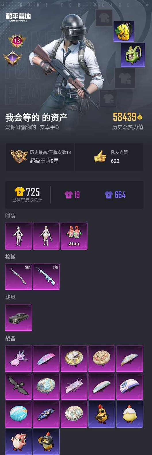 【和平精英】【lyhp17825】地铁满天赋 3粉2特效呛1载 女娲灵识 千金淑猫 炫光之旅 满级mk12冷月 宾利飞驰 猫包 3粉装,2特效呛,1载具,历史最高段位:超级王牌9星 王牌印记13次 热力值:58439,136套装,194呛械,249装备,115战备;套装:套装-炫光之旅,角色-千金淑猫,角色-女娲灵识,套装-黄色运动,套装-蓝色运动,套装-白色伏地魔,套装-黑色伏地魔,套装-冰川格斗者,套装-竞技名士,套装-湖蓝色名流,套装-黄色名流,套装-猛禽,套装-长空猛禽,套装-海岛探路者,套装-灼焰舞者,套装-青春校园,套装-甜蜜告白,套装-龙腾端午,套装-街头潮人,套装-魅力单车,套装-耀眼新星,套装-破晓战魂,套装-荣耀,套装-热血青春,套装-沙漠兵团,套装-极地朋克,套装-幻世战舞者,套装-青涩时光,套装-缤纷果语,套装-龙魂突击队,套装-风暴特警,套装-冰川特警,套装-元素星魂,套装-麻辣教官,套装-疯狂小兔子,套装-鹤鸣,套装-霓虹街区,套装-萌黄之夏,套装-探宝勇士,套装-牛气满满,套装-白糯汤圆,套装-战术大师,套装-牛气冲天,套装-耀粉歌者,套装-飞行日记,套装-竞技角斗士,套装-曼妙人鱼,套装-热情海星,套装-纯真浪花,角色-英勇保护者,套装-雪兔飞飞,套装-ss19特训,套装-飞驰魅影,套装-音速流光,套装-炫蓝之夏,套装-ss20特训,套装-猎梦纪元,套装-甜心亚梦,套装-虚音幻奏,套装-ss21特训,套装-萌趣咩咩,套装-娇憨猪猪,套装-玉兔迎春,套装-ss22特训,套装-和煦暖阳,套装-田园牧歌,套装-轻风白浪,套装-光之冒险,套装-绯格组合,套装-ss23特训,套装-香榭午后,套装-神气柴柴,套装-懵萌河马,套装-灵蜜圈圈,套装-妙红点点,套装-幻彩翩翩,套装-王牌教练,套装-柠萌假日,套装-青玉碎影,套装-ss24特训,套装-龟仙人,套装-涂山之恋,套装-ss25特训,套装-金戈铁马,套装-惊鸿侠骨,套装-锦衣飞扬,套装-云霞荷露,套装-绝对偶像,套装-香桃花海,套装-龙的传人,套装-冰河战士,套装-ss26特训,套装-快闪甜心,套装-春光漫游,套装-空岛之星,套装-云魄琉璃,套装-贝斯之夜,套装-焰鹰斗篷,套装-幻羽潜行,套装-月华战甲,套装-ss27特训,套装-恋语绒绒,套装-老实芭蕉,套装-ss28特训,角色-银尘,套装-街头风暴,套装-海盐绵绵冰,套装-航行童话,套装-蝶变,套装-ss29特训,套装-雏菊兔兔,套装-萝兰蝴蝶,角色-都市丽猫,套装-星途旅人,套装-ss30特训,套装-青团波波,套装-糖糖葫芦,套装-ss31特训,套装-鱼渊荷华,套装-燕燕于飞,套装-智谋强哥,角色-风玲,套装-ss33特训,套装-云朵鹅,套装-巳巳如意,套装-ss32特训,套装-彩虹兔,套装-雪绒豹,套装-大橘大利,套装-霓虹热舞,角色-玫纹锢梦,套装-ss34特训,套装-ss35特训,套装-午间小调,套装-风迹短诗,套装-ss36特训;呛皮:蜜獾-娇憨猪猪,蜜獾-天降萌叽,蜜獾-糖糖葫芦,蜜獾-风迹短诗,蜜獾-乌木金纹,scar-l-黄金龙骨,scar-l-夜灯,scar-l-银碳小老虎,scar-l-玉兔迎春,scar-l-幽秘魅影,scar-l-星途旅人,scar-l-海盐豹豹,m16a4-红色方程式,m16a4-甜心亚梦,m16a4-幻世战舞者,m16a4-冰河战士,mk47-百万伏特,mk47-乌木金纹,mk47-妙红点点,mk47-风迹短诗,aug-甜蜜菠萝,aug-耀粉歌者,aug-灵符少年,aug-天降萌叽,aug-闲梦青缨,aug-异域银装,groza-异彩先驱,groza-田园牧歌,groza-懵萌河马,groza-海盐豹豹,akm-破晓战魂,akm-彩虹符号,akm-2p战斗服款,akm-龙的传人,ac-val-甜心亚梦,ac-val-乌木金纹,ac-val-天降萌叽,ac-val-闲梦青缨,ac-val-快闪甜心,g36c-懵萌河马,g36c-星穹咏叹调,q-飞驰魅影,q-纯真浪花,m416-糯团青竹,m416-绿野极光,m762-天降萌叽,m762-雏菊兔兔,m762-云朵鹅,famas-乌木金纹,m200-惊鸿侠骨,m200-乌木金纹,awm-庄周梦蝶,awm-鎏金朋克,awm-天降萌叽,awm-焰鹰斗篷,awm-纯真浪花,amr-妙红点点,amr-乌木金纹,莫辛纳甘-乌木金纹,莫辛纳甘-懵萌河马,莫辛纳甘-风迹短诗,5级kar98k-巳巳如意,kar98k-飞驰魅影,kar98k-顶峰精英,m24-炫彩节奏,m24-乌木金纹,svd-云朵鹅,win94-乌木金纹,mk14-乌木金纹,mk14-冰河战士,m417-惊鸿侠骨,m417-玩趣呆呆,vss-碧影闪光,vss-田园牧歌,vss-彩虹符号,vss-香桃花海,7级mk20-h-海螺星光,mk20-h-快闪甜心,mk20-h-星途旅人,mk20-h-糖糖葫芦,mk20-h-乌木金纹,slr-月影鸳鸯,slr-娇憨猪猪,slr-彩虹符号,slr-金丰海韵,mk12-风迹短诗,mini14-梦幻火箭,mini14-耀粉歌者,mini14-涂山之恋,mini14-香桃花海,mini14-雏菊兔兔,mini14-绯穹魔姬,sks-糯团青竹,汤姆逊-耀粉歌者,汤姆逊-炫彩节奏,汤姆逊-天降萌叽,汤姆逊-纯真浪花,p90-飞驰魅影,p90-快闪甜心,p90-玩趣呆呆,p90-巳巳如意,p90-乌木金纹,mp5k-乌木金纹,vect-田园牧歌,vect-焰鹰斗篷,vect-燕燕于飞,uzi-娇憨猪猪,uzi-天降萌叽,uzi-冰河战士,uzi-啾咪啾咪,uzi-魔药课室,uzi-炫彩糖果,ump45-蓝色火焰,ump45-生命誓言,ump45-糖糖葫芦,野牛-青蛇行歌,野牛-雏菊兔兔,野牛-燕燕于飞,野牛-乌木金纹,dbs-暗星紫秘,dbs-甜心亚梦,dbs-彩虹甜喵,dbs-彩虹符号,dbs-圣堂之誓,dbs-焰鹰斗篷,dbs-幻彩电音,dbs-幽焰骑士,dbs-风迹短诗,dbs-乌木金纹,s686-彩虹符号,s686-巳巳如意,s12k-娇憨猪猪,s12k-垂柳戏鸭,s12k-幻世战舞者,s12k-玩趣呆呆,aa12-g-纯真浪花,s1897-百万伏特,s1897-炫彩节奏,s1897-飞驰魅影,s1897-精灵梦叶罗丽,spas-12-田园牧歌,spas-12-燕燕于飞,spas-12-云朵鹅,spas-12-乌木金纹,mg3-瑞龙福将,mg3-幻世战舞者,mg3-乌木金纹,mg3-妙红点点,mg3-第五大道,mg3-惊鸿侠骨,m249-百万伏特,m249-破晓战魂,m249-月影鸳鸯,m249-彩虹符号,m249-糯团青竹,m249-妙红点点,m249-金丰海韵,dp-28-彩虹符号,dp-28-甜心亚梦,dp-28-焰鹰斗篷,pkm-懵萌河马,pkm-啾咪啾咪,蝎式手呛-金