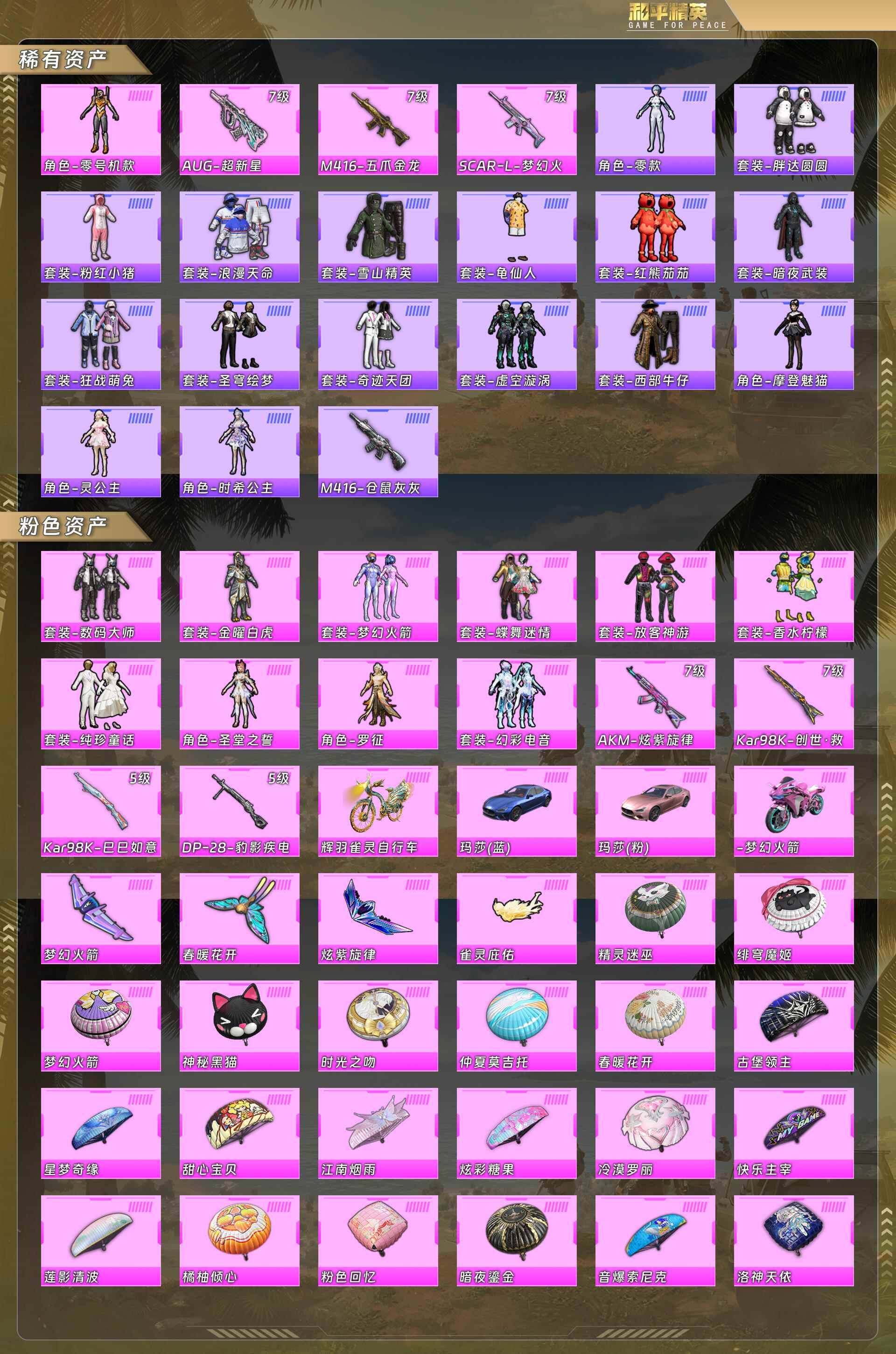 身法号-地铁满天赋-主页面板超酷-黄螳螂/火箭少女/浪漫天命/小番茄/狂战萌兔/数码大师/金曜白虎/蝶舞迷情/放客神游/香水柠檬/纯珍童话/圣堂之誓/罗征/幻彩电音/圣穹绘梦/零款战斗服/胖达圆圆/粉红小猪/aug超新星7级/m4五爪金龙7级/scar梦幻火箭7级【载具】/玛莎蓝/玛莎粉/双人摩托梦幻火箭 没战神框(11粉套7粉呛4载具)hp3920-4粉色飞行器-106202热力值-23王牌印记-224套装-306呛皮 【热门品类】:粉装-梦幻火箭,套装-浪漫天命,套装-小丑鱼,角色-军刀雅典娜,套装-胖达圆圆,旭日初心兜帽大衣,套装-龟仙人,套装-粉红小猪,套装-红熊茄茄 【粉色载具】:玛莎拉蒂ghibli(粉),玛莎拉蒂ghibli(蓝),双人摩托-梦幻火箭,辉羽雀灵自行车 【粉色套装】:粉装-数码大师,粉装-金曜白虎,粉装-蝶舞迷情,粉装-梦幻火箭,粉装-放客神游,粉装-香水柠檬,角色-零号机款机体服,粉装-纯珍童话,角色-圣堂之誓,粉装-幻彩电音,角色-罗征 【粉色呛皮等级】:akm-炫紫旋律七级,scar-l-梦幻火箭七级,m416-五爪金龙七级,aug-超新星七级,kar98k-创世·救赎七级,kar98k-巳巳如意五级,dp-28-豹影疾电五级 【粉色呛皮】:akm-炫紫旋律,scar-l-梦幻火箭,m416-五爪金龙,aug-超新星,kar98k-创世·救赎,kar98k-巳巳如意,dp-28-豹影疾电 【粉色飞行器】:春暖花开飞行器,梦幻火箭飞行器,炫紫旋律飞行器,雀灵庇佑飞行器 【粉色降落伞】:快乐主宰降落伞,粉色回忆降落伞,甜心宝贝降落伞,春暖花开降落伞,精灵迷巫降落伞,梦幻火箭降落伞,神秘黑猫降落伞,古堡领主降落伞,洛神天依降落伞,橘柚倾心降落伞,暗夜鎏金降落伞,音爆索尼克降落伞,仲夏莫吉托降落伞,莲影清波降落伞,江南烟雨降落伞,星梦奇缘降落伞,时光之吻降落伞,冷漠罗丽降落伞,绯穹魔姬降落伞 【稀有套装】:套装-龟仙人,套装-巳巳如意,套装-圣穹绘梦,套装-小鸟芋圆,套装-雏菊兔兔,套装-萝兰蝴蝶,套装-小熊娃娃,角色-多纳泰罗,套装-糖糖葫芦,套装-青团波波,套装-棉花软糖,角色-摩登魅猫,套装-紫幽梦,套装-蓝冰羽,套装-星渊小夜曲,套装-虚空漩涡,套装-彩虹兔,套装-云朵鹅,套装-雪绒豹,角色-时希公主,角色-灵公主,角色-绯色魅影 【稀有呛皮】:akm-2p战斗服款,akm-夜灯,akm-彩虹符号,akm-恐龙拽拽,akm-星兔领航员,akm-春暖花开,akm-灼热熔岩,akm-生命誓言,akm-百万伏特,akm-破晓战魂,akm-萌趣颜团子,akm-虎虎生威,akm-霓虹街区,akm-龙的传人,m16a4-幻世战舞者,m16a4-甜心亚梦,m16a4-红色方程式,m16a4-蓝色火焰,m16a4-千金淑猫,scar-l-炫彩节奏,scar-l-玉兔迎春,scar-l-黄金龙骨,scar-l-冷漠罗丽,m416-仓鼠灰灰,m416-夜灯,m416-糯团青竹,m416-蓝色火焰,groza-异彩先驱,groza-彩虹符号,groza-恐龙拽拽,groza-懵萌河马,groza-春暖花开,groza-暗夜武装,groza-治愈之星,groza-田园牧歌,groza-黑色刀锋,aug-天降萌叽,aug-拳皇97,aug-闲梦青缨,aug-青春冒险家,q-原初圣火,q-彩虹符号,q-神秘黑猫,q-飞驰魅影,m762-天星战神,m762-天降萌叽,m762-奇异狩猎者,m762-彩虹符号,m762-拳皇97,m762-牛气冲天,m762-瑞龙福将,m762-云朵鹅,mk47-天之羽翼,mk47-妙红点点,mk47-百万伏特,mk47-青春冒险家,g36c-懵萌河马,ac-val-天降萌叽,ac-val-快闪甜心,ac-val-甜心亚梦,ac-val-闲梦青缨,蜜獾-天降萌叽,蜜獾-娇憨猪猪,uzi-啾咪啾咪,uzi-天降萌叽,uzi-娇憨猪猪,uzi-影袭,uzi-红色方程式,ump45-春暖花开,ump45-涂山之恋,ump45-生命誓言,ump45-圣穹绘梦,vect-焰鹰斗篷,vect-夜灯,vect-彩虹符号,vect-治愈之星,vect-生命誓言,vect-田园牧歌,vect-黑色刀锋,汤姆逊-勇闯险境,汤姆逊-天降萌叽,汤姆逊-奇异狩猎者,汤姆逊-异彩先驱,汤姆逊-暗夜鎏金,汤姆逊-炫彩节奏,汤姆逊-耀粉歌者,野牛-青春冒险家,mp5k-异彩先驱,p90-快闪甜心,p90-飞驰魅影,p90-巳巳如意,kar98k-勇闯险境,kar98k-彩虹符号,kar98k-影袭,kar98k-梦幻火箭,kar98k-炫彩节奏,kar98k-王子的夏天,kar98k-红色方程式,kar98k-飞驰魅影,m24-影袭,m24-治愈之星,m24-炫彩节奏,m24-幻彩电音,awm-焰鹰斗篷,awm-垂柳戏鸭,awm-庄周梦蝶,awm-恐龙拽拽,sks-勇闯险境,sks-夜灯,sks-糯团青竹,vss-彩虹符号,vss-田园牧歌,vss-粉色回忆,vss-黑色刀锋,mini14-原初圣火,mini14-异彩先驱,mini14-春暖花开,mini14-梦幻火箭,mini14-涂山之恋,mini14-辉羽雀灵,mk14-治愈之星,win94-星兔领航员,win94-瑞龙福将,slr-娇憨猪猪,slr-彩虹符号,slr-圣穹绘梦,qbu-青春冒险家,莫辛纳甘-懵萌河马,amr-妙红点点,amr-镜光幻境,amr-喜羊羊与灰太狼,m417-惊鸿侠骨,m417-星兔领航员,mk20-h-快闪甜心,m200-惊鸿侠骨,svd-云朵鹅,svd-冷漠罗丽,s686-深海曼妙,s686-生命誓言,s686-红色方程式,s686-魔法学院,s686-巳巳如意,s686-千金淑猫,s1897-勇闯险境,s1897-春暖花开,s1897-炫彩节奏,s1897-百万伏特,s1897-神秘黑猫,s1897-飞驰魅影,s12k-玩趣呆呆,s12k-瑞龙福将,s12k-pel轰鸣竞梦者,s12k-娇憨猪猪,s12k-幻世战舞者,dbs-焰鹰斗篷,dbs-圣堂之誓,dbs-彩虹符号,dbs-暗星紫秘,dbs-甜心亚梦,dbs-第五大道,dbs-幻彩电音,spas-12-田园牧歌,spas-12-云朵鹅,m249-古堡领主,m249-妙红点点,m249-彩虹符号,m249-拳皇97,m249-星之彼岸,dp-28-焰鹰斗篷,dp-28-原初圣火,dp-28-甜心亚梦,mg3-妙红点点,mg3-幻世战舞者,mg3-惊鸿侠骨,mg3-瑞龙福将,pkm-懵萌河马,p92-拳皇97,p18c-原初圣火,p18c-百万伏特,短管霰弹-星穹咏叹调,蝎式手呛-闲梦青缨,蝎式手呛-千金淑猫,沙墨之鹦-快闪甜心,沙墨之鹦-云朵鹅,沙墨之鹦-圣穹绘梦,爆炸猎弓-惊鸿侠骨,大砍刀-2p战斗服款,大砍刀-云朵鹅,撬棍-冷漠罗丽,撬棍-双重狂想,平底锅-辉羽雀灵,破片手留