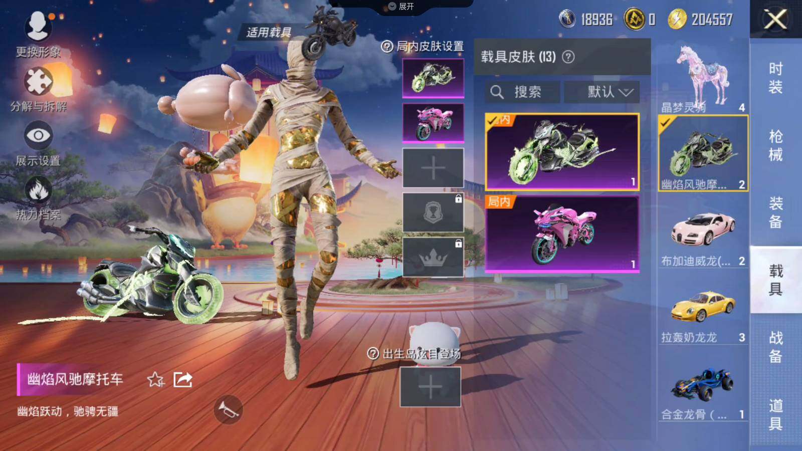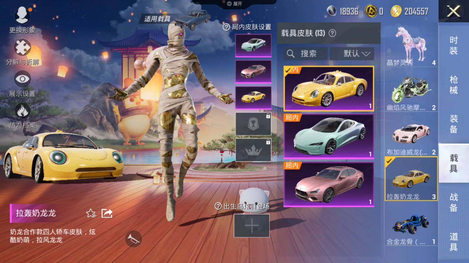 13载具-432套装-468呛皮-素材号-赤蝎金鞋都市男神套-5神装-59粉装-26特效呛-13载具-19粉色飞行器-热力值-20王牌印记-432套装-468呛皮 【红色载具】:布加迪威龙(星云粉)三级 【红色神装等级】:盛世惊鸿-云鸾二级,梦海之灵-妮芮妲一级,镜域双华-欧若拉一级,沙丘之主-图卡盟一