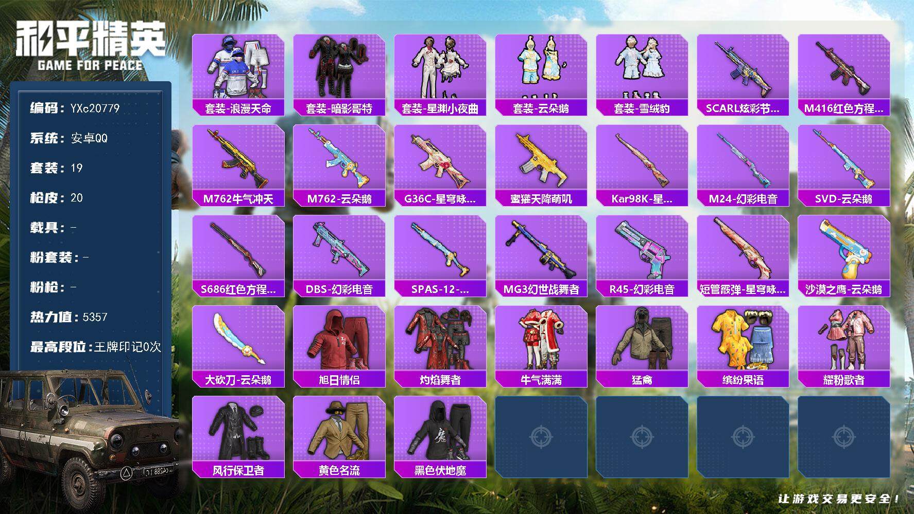 c20779-【可二次】【因赛季更新游戏段付以上号为准!】 安卓q-1稀有1热门19套装20呛皮 历史坚韧铂金ⅲ 【1稀有】 浪漫天命 【1热门】 暗影哥特