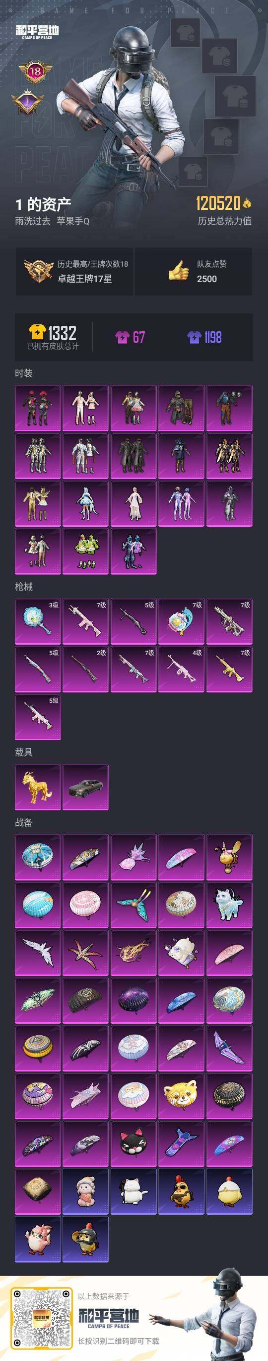 [14549662]苹果【素材号/怪诞乔克/梦幻火箭/放客神游/都市猎人/派对舞王/小丑鱼/天网终结者/暗影哥特/蓝螳螂/百万伏特背包/萌熊伴侣背包/18粉装-11特效呛-2载具-10粉色飞行器】 手q120520热力值-18王牌印记-281套装-353呛皮 【热门品类】:粉装-怪诞乔克,粉装-梦幻火箭,套装-浪漫天命,套装-都市猎人,套装-派对舞王,套装-深海小丑鱼,套装-小丑鱼,套装-奇异狩猎者,套装-天网终结者,套装-忍者信条,套装-动感兔斯基人偶服,套装-龟仙人,套装-潮萌小黄鸭,套装-暗影哥特,角色-mark.06,熔岩游骑兵连帽夹克,套装-红熊茄茄 【粉色载具】:宾利飞驰(布罗德盖棕双色),护世瑞兽 【粉色套装】:粉装-深海曼妙,粉装-极限特训,粉装-幻影战神,粉装-未来战士,粉装-怪诞乔克,粉装-宝贝奶油派,粉装-蝶舞迷情,粉装-梦幻火箭,粉装-星之信仰,粉装-金属狂野,粉装-智能音符,粉装-放客神游,粉装-绚金战神,粉装-恐龙拽拽,粉装-第五大道,角色-烟云彩露,角色-美琪,套装-创世·救赎 【粉色呛皮等级】:scar-l-锦绣绵绵五级,m416-暖熊萌萌七级,aug-许七安七级,kar98k-创世·救赎二级,kar98k-巳巳如意五级,mk14-精灵梦叶罗丽七级,m417-第五大道七级,dp-28-豹影疾电五级,pkm-江南烟雨四级,平底锅-仲夏莫吉托三级,破片手留单-美味星星糖七级 【粉色呛皮】:scar-l-锦绣绵绵,m416-暖熊萌萌,aug-许七安,kar98k-创世·救赎,kar98k-巳巳如意,mk14-精灵梦叶罗丽,m417-第五大道,dp-28-豹影疾电,pkm-江南烟雨,平底锅-仲夏莫吉托,破片手留单-美味星星糖 【粉色飞行器】:深海曼妙飞行器,酣梦熊熊飞行器,春暖花开飞行器,梦幻火箭飞行器,镜光幻境飞行翼,万象金身飞行器,灵猫魔法师飞行器 【粉色降落伞】:深海曼妙降落伞,极限特训降落伞,快乐主宰降落伞,幻影战神降落伞,未来战士降落伞,春暖花开降落伞,梦幻火箭降落伞,星之信仰降落伞,金风玉露降落伞,神秘黑猫降落伞,闪光银龙降落伞,暖熊萌萌降落伞,第五大道降落伞,仲夏莫吉托降落伞,萌物绒绒降落伞,蜜语绒猫降落伞,江南烟雨降落伞,精灵梦叶罗丽降落伞,创世·救赎降落伞,星梦奇缘降落伞,金丰海韵降落伞,幽焰骑