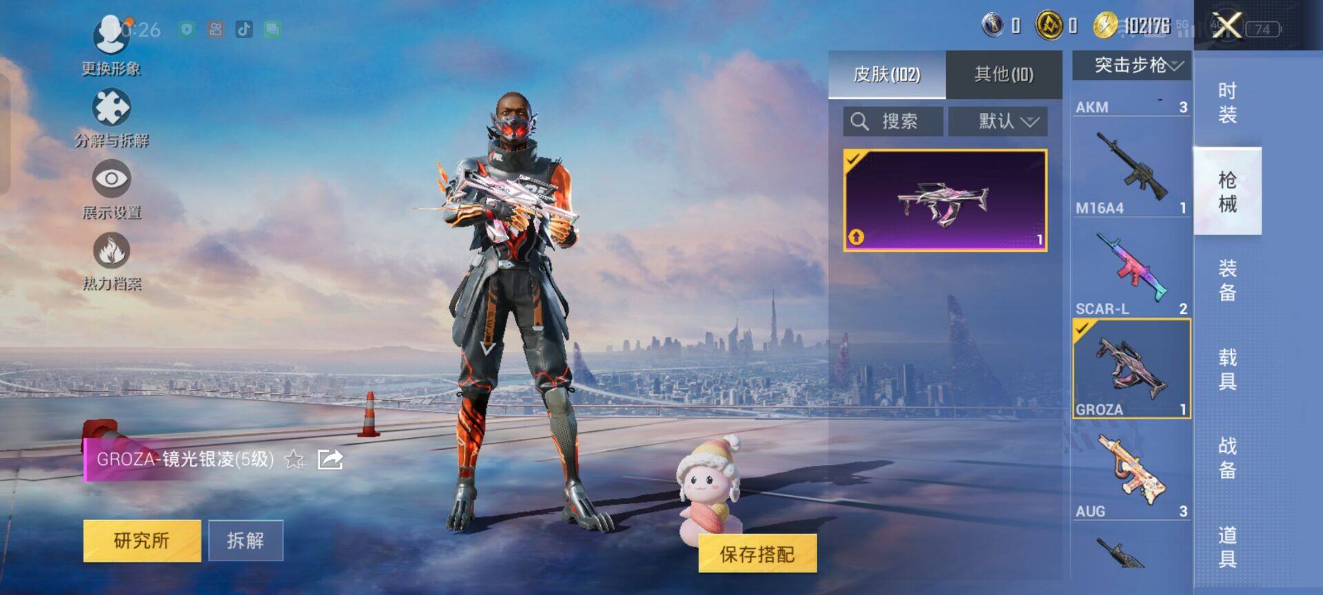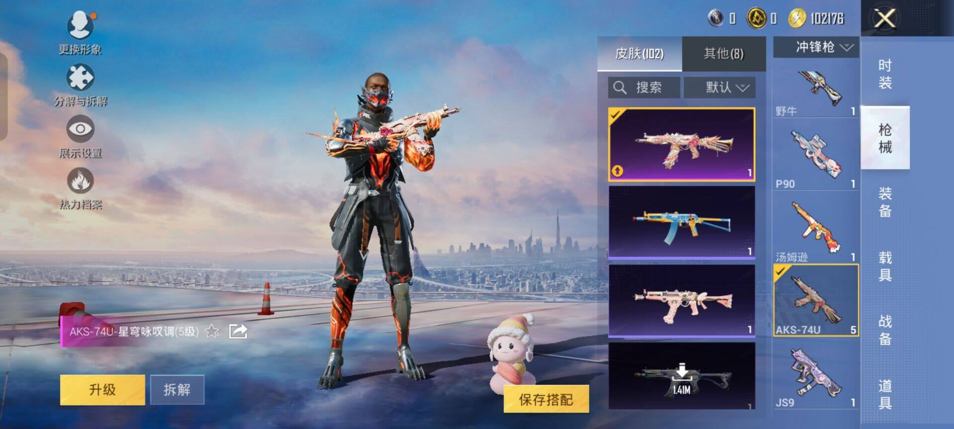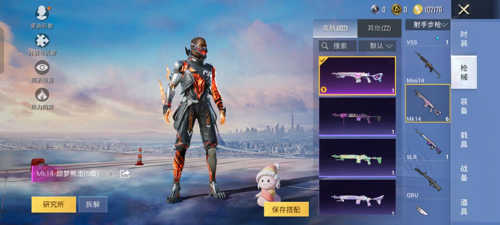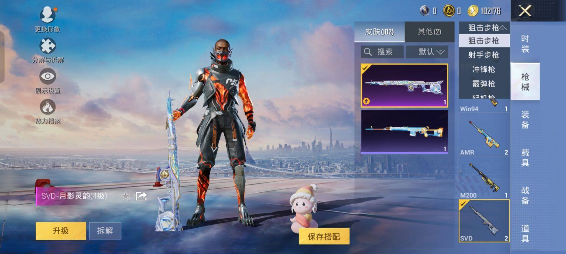 2294984手q-3粉装-9特效呛-0载具-1粉色飞行器-29163热力值-1王牌印记-56套装-101呛皮 【粉色套装】:粉装-星穹咏叹调,角色-异瞳寒姬 【粉色呛皮等级】:groza-镜光银凌五级,aug-暖羊咩咩五级,汤姆逊-热量炸弹五级,aks-74u-星穹咏叹调五级,kar98k-巳巳如意五级,mk14-甜梦熊击五级,svd-月影灵韵四级,dp-2
