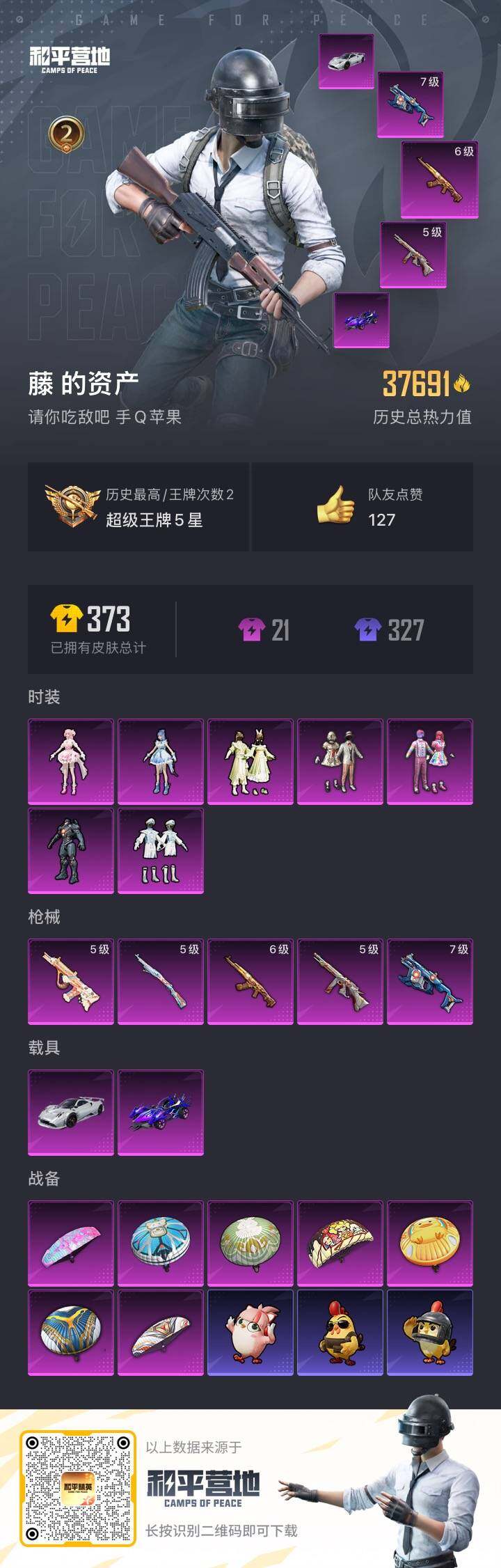 _2295227-手q-7粉装-5特效呛-2载具-37691热力值-2王牌印记-67套装-109呛皮 【热门品类】:角色-军刀雅典娜,套装-金羽特工,套装-龟仙人 【粉色载具】:帕加尼imola(艺术银),海龙奔腾 【粉色套装】:粉装-宝贝奶油派,粉装-天使彩虹糖,粉装-海盐物语,角色-复仇流浪者,粉装-闲梦青缨,角色-奇迹舞步美琪,角色-奇迹舞步美雪 【粉色呛皮等级】:akm-甜心宝贝六级,aug-暖羊咩咩五级,vect-环太平洋七级,汤姆逊-荒漠赏金五级,kar98k-巳巳如意五级 【粉色呛皮】:akm-甜心宝贝,aug-暖羊咩咩,vect-环太平洋,汤姆逊-荒漠赏金,kar98k-巳巳如意 【粉色降落伞】:甜心宝贝降落伞,荒漠赏金降落伞,环太平洋降落伞,垂柳戏鸭降落伞,闲梦青缨降落伞,异瞳寒姬降落伞 【稀有套装】:套装-龟仙人,套装-巳巳如意,套装-燕燕于飞,套装-鱼渊荷华,角色-蜜桃派对,玩偶服-喜羊羊,角色-绯色魅影 【稀有呛皮】:akm-冰凉西瓜,akm-环太平洋,m16a4-幻世战舞者,scar-l-炫彩节奏,scar-l-玉兔迎春,scar-l-黄金龙骨,m416-月影鸳鸯,m416-糯团青竹,m416-黄金龙骨,groza-彩虹符号,aug-耀粉歌者,m762-彩虹甜喵,m762-甜心宝贝,mk47-荒漠赏金,ac-val-甜心亚梦,ac-val-闲梦青缨,蜜獾-垂柳戏鸭,蜜獾-娇憨猪猪,uzi-天降萌叽,uzi-娇憨猪猪,vect-创世·救赎,汤姆逊-天降萌叽,汤姆逊-环太平洋,p90-巳巳如意,awm-垂柳戏鸭,awm-黄金龙骨,mini14-黄金龙骨,slr-娇憨猪猪,slr-月影鸳鸯,svd-冷漠罗丽,s686-巳巳如意,s1897-炫彩节奏,s12k-垂柳戏鸭,s12k-娇憨猪猪,dbs-甜心亚梦,m249-彩虹符号,m249-月影鸳鸯,m249-糯团青竹,dp-28-甜心亚梦,dp-28-甜心宝贝,dp-28-荒漠赏金,mg3-幻世战舞者,p18c-黄金龙骨,爆炸猎弓-喜羊羊与灰太狼,破片手留单-巳巳如意 【其他套装】:套装-ss21特训,套装-ss26特训,套装-ss27特训,套装-ss28特训,套装-ss29特训,套装-海岛探路者,套装-牛气冲天,套装-牛气满满,套装-玉兔迎春,套装-甜蜜告白,套装-疯狂小