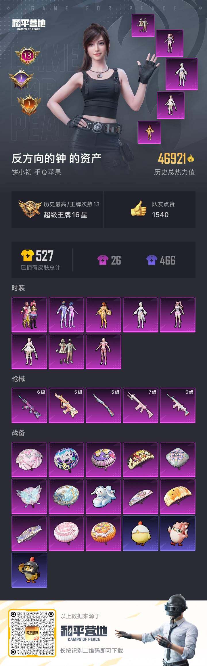 _2294883-手q-8粉装-5特效呛-0载具-1粉色飞行器-46921热力值-13王牌印记-88套装-133呛皮 【热门品类】:粉装-梦幻火箭,粉装-缤纷油彩,套装-深海小丑鱼,套装-小丑鱼,套装-龟仙人 【粉色套装】:粉装-宝贝奶油派,粉装-梦幻火箭,粉装-缤纷油彩,角色-守护天翼,角色-千金淑猫,角色-女娲灵识,角色-羲和光序 【粉色呛皮等级】:akm-炫紫旋律六级,scar-l-锦绣绵绵五级,aug-暖羊咩咩五级,kar98k-巳巳如意五级,m417-第五大道七级 【粉色呛皮】:akm-炫紫旋律,scar-l-锦绣绵绵,aug-暖羊咩咩,kar98k-巳巳如意,m417-第五大道 【粉色飞行器】:萌物绒绒飞行器 【粉色降落伞】:甜心宝贝降落伞,梦幻火箭降落伞,橘柚倾心降落伞,第五大道降落伞,萌酷奶龙降落伞,圣堂之誓降落伞,精灵梦叶罗丽降落伞,金丰海韵降落伞,晶梦幻蝶降落伞,月下星之子降落伞,幻彩电音降落伞,冷漠罗丽降落伞 【稀有套装】:套装-龟仙人,套装-巳巳如意,套装-雏菊兔兔,套装-萝兰蝴蝶,套装-小熊娃娃,套装-糖糖葫芦,套装-青团波波,角色-都市丽猫,套装-燕燕于飞,套装-鱼渊荷华,套装-晶灵使者,套装-晶辉守护,角色-糖霜甜心,角色-琉璃花蕾,套装-粉恋花,套装-紫幽梦,套装-蓝冰羽,角色-鲛海歌灵,套装-云朵鹅,套装-雪绒豹,角色-时希公主 【稀有呛皮】:akm-彩虹符号,akm-江南烟雨,akm-缤纷海域,m16a4-甜心亚梦,m16a4-千金淑猫,scar-l-玉兔迎春,groza-春暖花开,aug-天降萌叽,q-飞驰魅影,m762-天降萌叽,m762-第五大道,m762-云朵鹅,mk47-妙红点点,ac-val-快闪甜心,ac-val-甜心亚梦,蜜獾-天降萌叽,uzi-啾咪啾咪,ump45-电音之王,vect-焰鹰斗篷,vect-生命誓言,汤姆逊-樱桃泡泡,aks-74u-翎光蝶翼,p90-快闪甜心,p90-飞驰魅影,kar98k-飞驰魅影,awm-焰鹰斗篷,sks-迅猛狂鲨,vss-碧影闪光,mini14-春暖花开,mini14-梦幻火箭,mini14-穿刺龙虾,amr-妙红点点,mk20-h-快闪甜心,svd-云朵鹅,svd-冷漠罗丽,s686-生命誓言,s686-千金淑猫,s1897-碧影闪光,s1897-飞驰