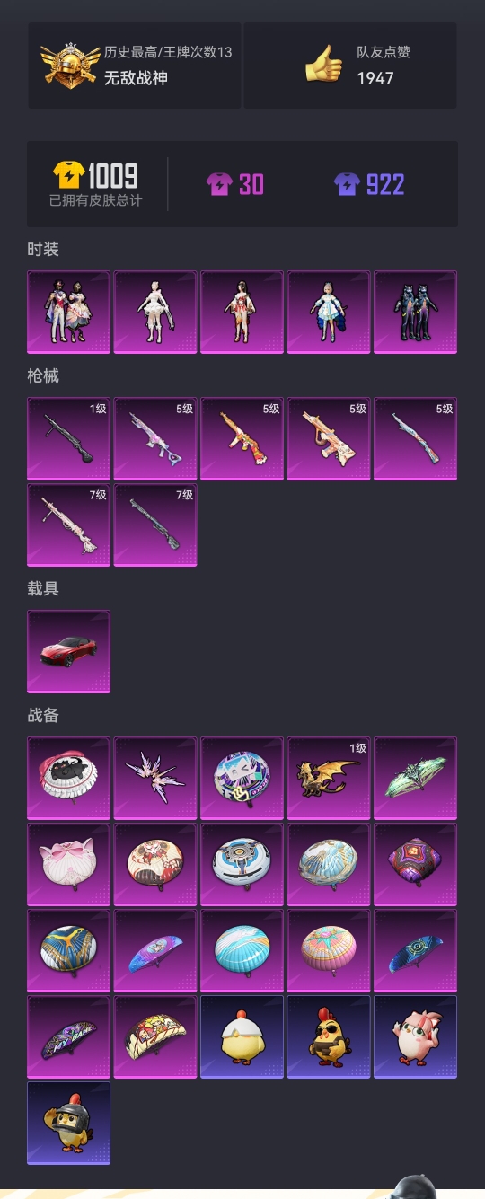 1载具-224套装-274呛皮-【战神框洛天依7特效呛5粉装1载具 秒换绑不用等】 安卓q区-82880热力值-13印记-历史最高段位:无敌战神-224套装-274呛皮 【1载具】 阿斯顿马丁s红色【1稀有】 mark.06蓝螳螂【5粉装】 洛天依 pel轰鸣竞梦者 角色-狂花道·不知火舞 星穹咏叹调 角色-千金淑猫【7特效呛】 汤姆逊-热量炸弹5级 dp-28-千金淑猫7级 kar98k-巳巳如意