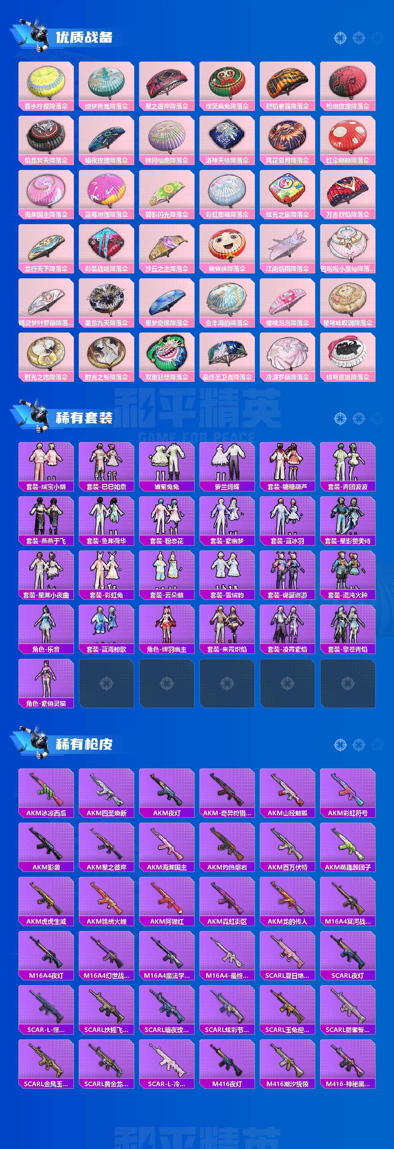 9载具-310套装-412呛皮-310套装/呛械35/装备652/载具9/战备287/王牌印记19/热力值/五级akm-甜心宝贝/四级m16a4-葫芦兄弟/scar-l-梦幻火箭/五级scar-l-童趣迷兔/m416-五爪金龙/m416-心之恋语/七级m416-至情至圣/五级m416-电玩时刻/三级m416-墨龙九天/五级groza-香水柠檬/五级aug-超新星/四级m762-甜蜜誓约/m762-激战未来/五级f