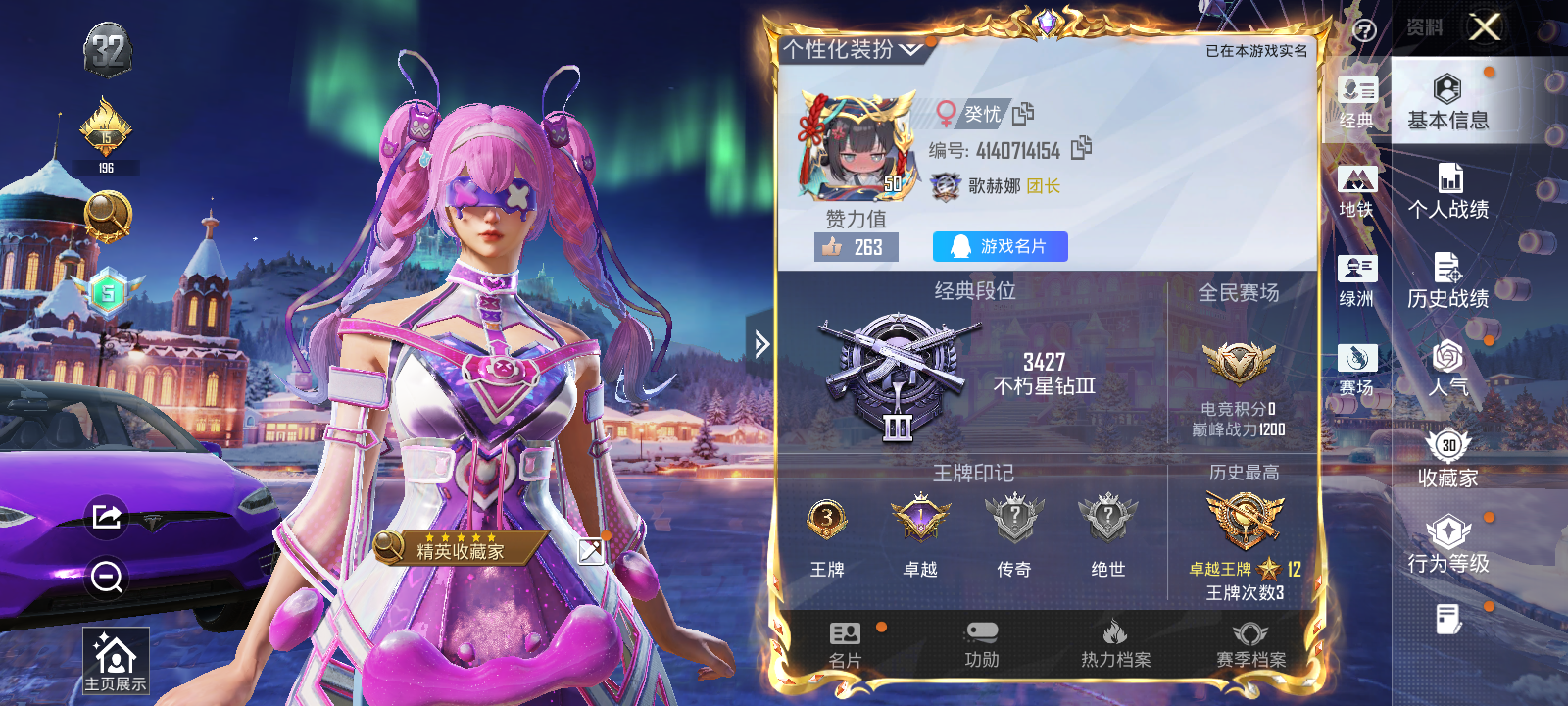 【和平精英】【txhp4832】0粉装,1特效呛,1载具,历史最高段位:卓越王牌12星 王牌印记3次 热力值:22140,57套装,70呛械,61装备,39战备;套装:套装-特训学院,套装-猎鹰,套装-青年教官,套装-橘黑制服,套装-红色运动,套装-黄色运动,套装-蓝色运动,套装-黄色伏地魔,套装-白色伏地魔,套装-黑色伏地魔,套装-骑行爱好者,套装-竞技名士,套装-深蓝色名流,套装-酒红色名流,套装-长空猛禽,套装-冷焰舞者,套装-灼焰舞者,套装-特战装甲,套装-甜蜜告白,套装-幻影武者,套装-魅力单车,套装-竞技达人朋克,套装-破晓战魂,套装-都市魅力,套装-潮流炫酷,套装-幻世战舞者,套装-暗影哥特,套装-缤纷果语,套装-破蛋小黄鸡,套装-疯狂小兔子,套装-霓虹街区,套装-众神之王,套装-爱神,套装-智慧之神,套装-风华少年志,套装-顽皮玉兔,套装-牛气满满,套装-战术大师,套装-ss18特训,套装-空投萌叽,套装-ss20特训,套装-ss26特训,套装-空岛之星,套装-ss27特训,套装-异域银装,套装-ss31特训,套装-鱼渊荷华,套装-燕燕于飞,套装-ss33特训,套装-ss32特训,套装-大橘大利,套装-极速光影,套装-炫彩糖果,套装-ss34特训,套装-ss35特训,套装-ss36特训,套装-萌鸡速递;呛皮:scar-l-红色方程式,scar-l-海盐豹豹,akm-破晓战魂,akm-彩虹符号,famas-霓彩脉冲,famas-乌木金纹,g36c-乌木金纹,q-神秘黑猫,q-彩虹符号,q-乌木金纹,aug-耀粉歌者,aug-天降萌叽,aug-冰晶雪宝,m16a4-蓝色火焰,m16a4-红色方程式,蜜獾-天降萌叽,蜜獾-乌木金纹,m416-夜灯,m416-蓝色火焰,m416-红色方程式,m200-乌木金纹,win94-乌木金纹,m24-众神之王,5级kar98k-巳巳如意,svd-霓彩脉冲,amr-乌木金纹,mk20-h-乌木金纹,sks-心之恋语,sks-炫彩节奏,mini14-耀粉歌者,mk14-乌木金纹,mk14-冰河战士,mk14-紫晶流影,slr-众神之王,slr-霓彩脉冲,qbu-不夜海上花,vect-彩虹符号,vect-燕燕于飞,uzi-众神之王,uzi-炫彩糖果,汤姆逊-耀粉歌者,汤姆逊-炫彩节奏,汤姆逊-天降萌叽,野牛-燕燕于飞,野牛-乌木金纹,p90-玩趣呆呆,mp5k-众神之王,mp5k-蓝莓炮弹,mp5k-乌木金纹,ump45-蓝色火焰,s686-红色方程式,s1897-神秘黑猫,s1897-炫彩节奏,s12k-乌木金纹,spas-12-燕燕于飞,dbs-乌木金纹,mg3-幻世战舞者,mg3-乌木金纹,dp-28-彩虹符号,pkm-啾咪啾咪,m249-破晓战魂,m249-乌木金纹,蝎式手呛-燕燕于飞,平底锅-众神之王,平底锅-空岛之星,破片手留单-呆爆全场,破片手留单-拽到爆炸,铝热弹-炫彩糖果,十子怒-燕燕于飞,十子怒-异域银装;载具:特斯拉model x奇幻紫;降落伞:炫彩糖果飞行器; 详情看图3王牌印记-2.2w热力值-1特-1车/特斯拉/红眼罩/炫彩糖果