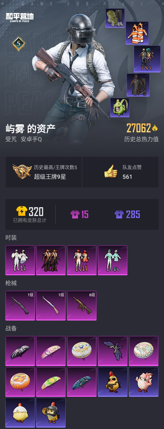 【和平精英】【lyhp17896】4粉装3特效呛 奇异狩猎者 小丑鱼 狂沙舞者 恐龙猫包 6级金龙m4 4粉装,3特效呛,0载具,历史最高段位:超级王牌9星 王牌印记5次 热力值:27062,72套装,82呛械,101装备,51战备;套装:套装-薄荷物语,套装-炙焰牛王,套装-霞光圣骑,套装-寒光使者,套装-白色伏地魔,套装-骑行爱好者,套装-竞技名士,套装-猛禽,套装-长空猛禽,套装-贵族骑装,套装-灰色格斗者,套装-燃烧卡路里,套装-暗黑骑手,套装-蓝彩潮人,套装-千禧之恋,套装-神秘领域,套装-魅力单车,套装-耀眼新星,套装-狂战萌兔,套装-狂沙舞者,套装-幻世战舞者,套装-奇异狩猎者,套装-金耀舞者,套装-蓝调潮人,套装-呆萌铁蟹,套装-深海小丑鱼,套装-甜蜜熊情侣,套装-格斗先锋,套装-小丑鱼,套装-粉红小猪,套装-破蛋小黄鸡,套装-鹤鸣,套装-霓虹街区,套装-白熊同盟,套装-夏日音浪,套装-探宝勇士,套装-萌趣颜团子,套装-ss18特训,套装-星河入梦,套装-暖风夏荷,套装-快乐星愿,套装-ss15特训,套装-ss16特训,套装-暗夜傀儡,套装-ss17特训,套装-智慧隐士,套装-青丘仙客,套装-福星高照,套装-雪兔飞飞,套装-虎虎生威吉莉,套装-ss19特训,套装-极速竞梦,套装-飞驰魅影,套装-音速流光,套装-炫蓝之夏,套装-ss20特训,套装-浑天鲲鹏,套装-粉团憨憨,套装-猎梦纪元,套装-甜心亚梦,套装-虚音幻奏,套装-ss21特训,套装-ss22特训,套装-绯格组合,套装-ss23特训,套装-ss24特训,套装-ss25特训,套装-龙的传人,套装-海盐绵绵冰,套装-巳巳如意,套装-大橘大利,套装-星影赞美诗;呛皮:m16a4-蓝色火焰,m16a4-红色方程式,m16a4-甜心亚梦,m16a4-幻世战舞者,m16a4-千金淑猫,aug-耀粉歌者,aug-圣光天使,groza-彩虹符号,scar-l-红色方程式,scar-l-青丘仙客,akm-灼热熔岩,akm-奇异狩猎者,akm-破晓战魂,akm-霓虹街区,akm-星之彼岸,akm-彩虹符号,akm-萌趣颜团子,akm-虎虎生威,6级m416-五爪金龙,m416-夜灯,m416-蓝色火焰,m416-红色方程式,m416-紫翼圣骑,g36c-暗夜玫瑰,g36c-青丘仙客,g36c-炙焰牛王,g36c-乌木金纹,蜜獾-精灵梦叶罗丽,q-飞驰魅影,ac-val-甜心亚梦,ac-val-乌木金纹,m762-奇异狩猎者,m24-奇异狩猎者,m24-炫彩节奏,m24-乌木金纹,1级kar98k-巳巳如意,kar98k-炫彩节奏,kar98k-飞驰魅影,kar98k-乌木金纹,莫辛纳甘-乌木金纹,sks-迅猛狂鲨,sks-炫彩节奏,sks-青丘仙客,mini14-穿刺龙虾,mini14-炫彩节奏,mini14-耀粉歌者,mini14-星夜魔法师,mk14-童趣迷兔,mk14-乌木金纹,汤姆逊-奇异狩猎者,汤姆逊-耀粉歌者,汤姆逊-甜梦小狐,mp5k-怪笑疯兔,野牛-夜灯,野牛-乌木金纹,vect-夜灯,ump45-粉色回忆,uzi-炫彩节奏,uzi-烈焰拳霸,uzi-天降萌叽,p90-飞驰魅影,p90-乌木金纹,s12k-香水柠檬,s12k-幻世战舞者,s12k-玩趣呆呆,s1897-飞驰魅影,s1897-乌木金纹,s686-奇异狩猎者,s686-未来战士,s686-王牌投手,dbs-甜心亚梦,dbs-圣光天使,m249-百万伏特,m249-破晓战魂,1级dp-28-豹影疾电,dp-28-甜心亚梦,mg3-幻世战舞者,mg3-乌木金纹,平底锅-空投萌叽,平底锅-飞驰魅影,平底锅-甜心亚梦,破片手留单-萌趣颜团子;降落伞:星夜魔法师飞行翼,红色滑翔尾迹; 详情看图